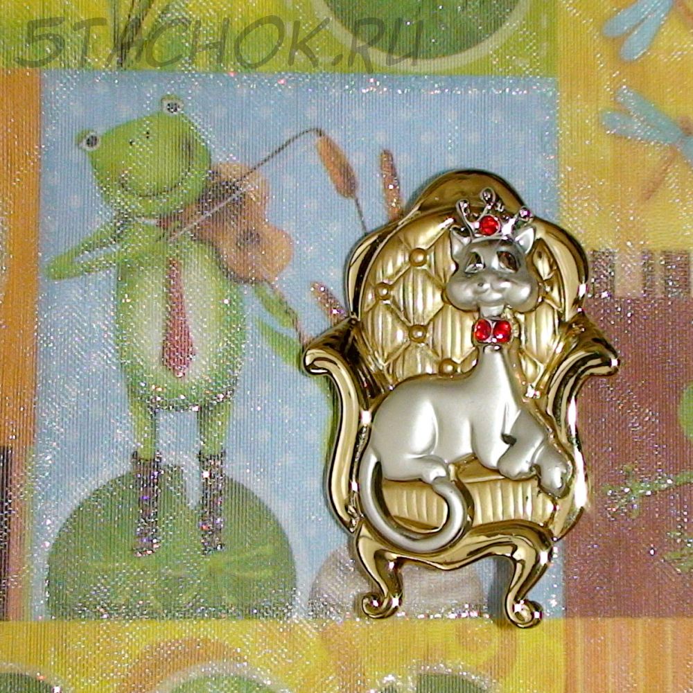 Брошь "Королева-кошка" под золото/серебро/стразы