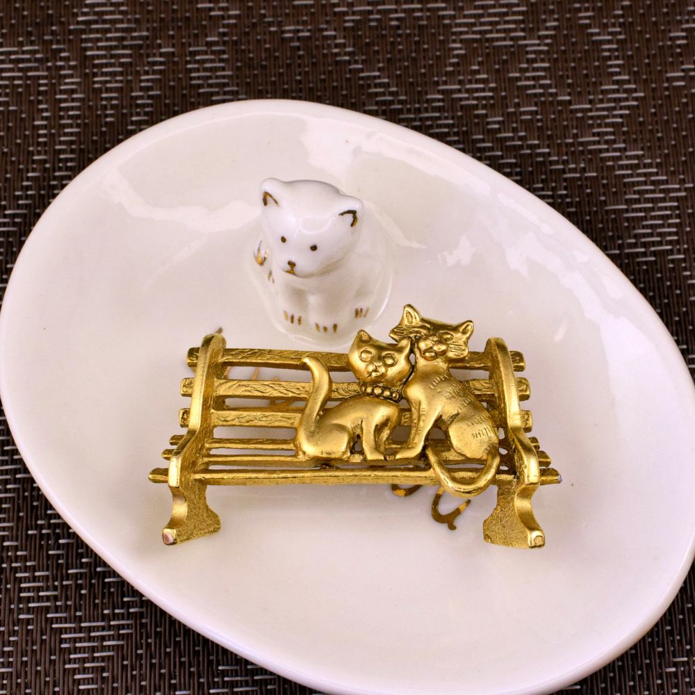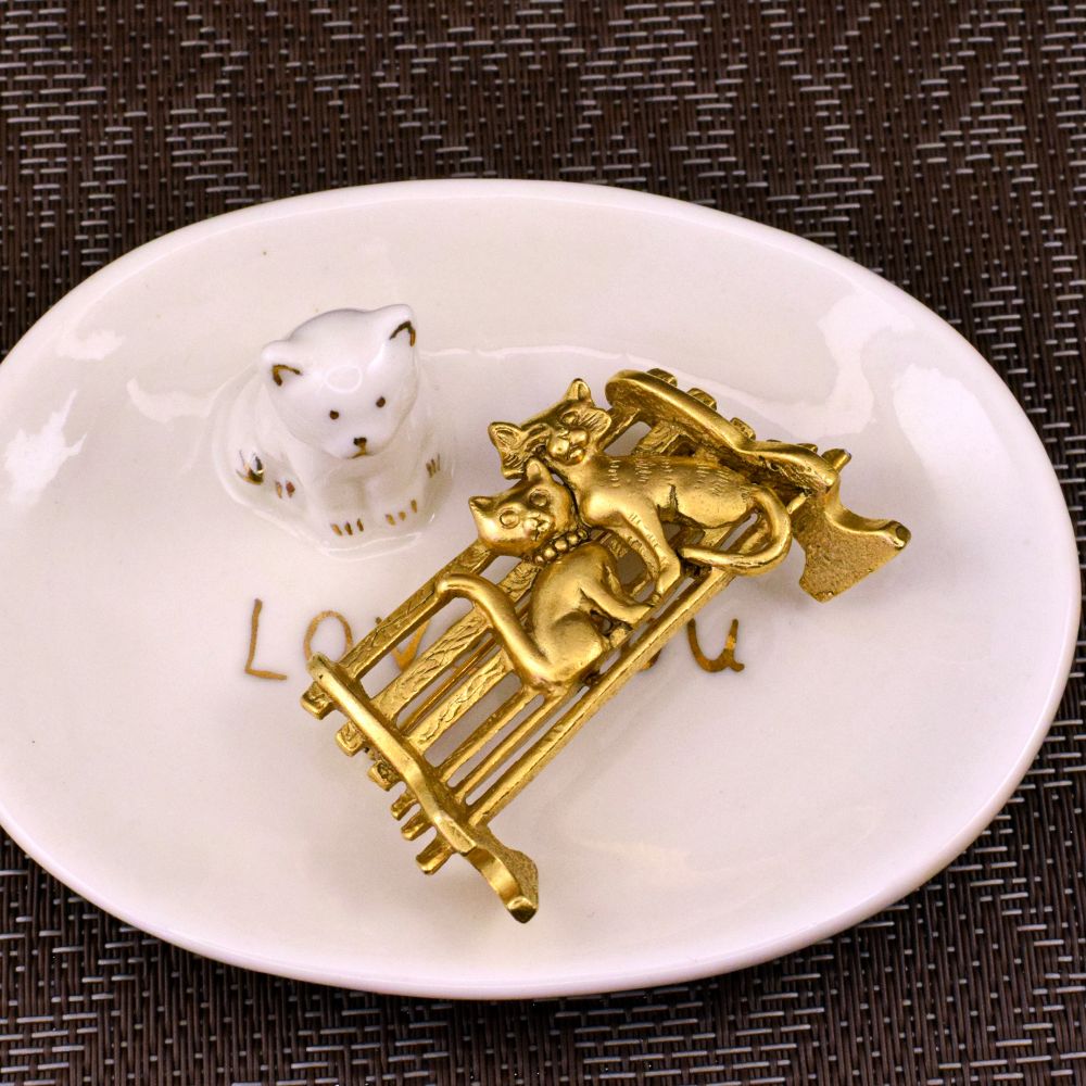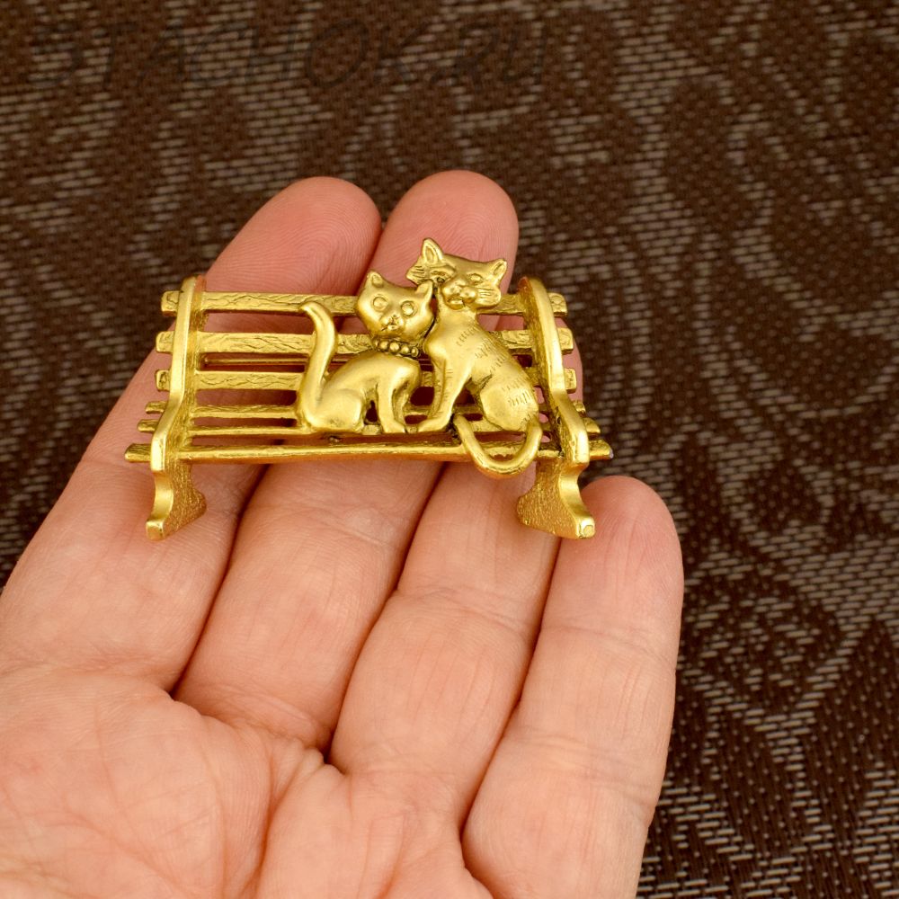 Брошь "Кошечка и котенок на скамейке" цвет золота (AJC США)