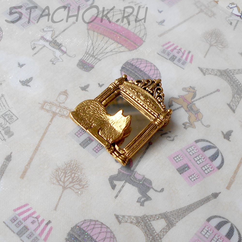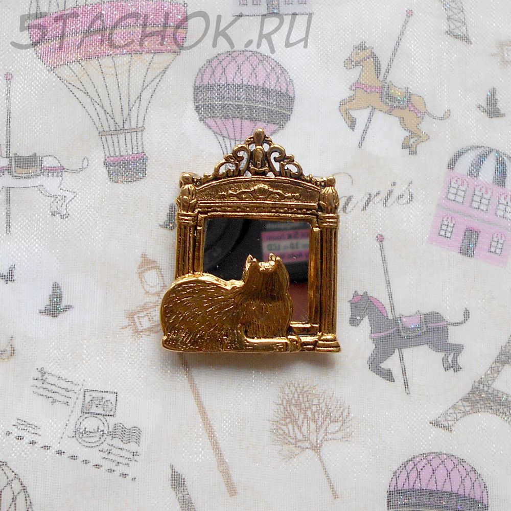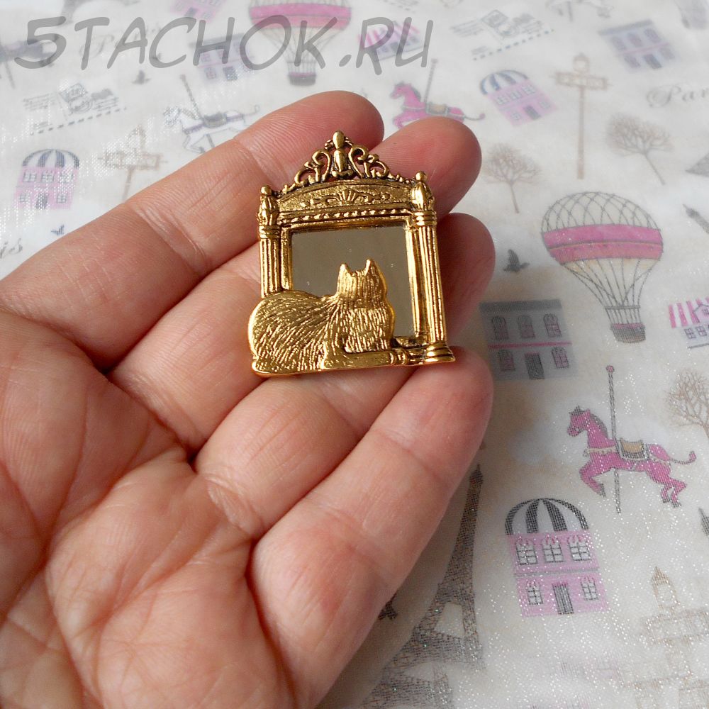 Миниатюрная брошь "Кошечка перед зеркалом"