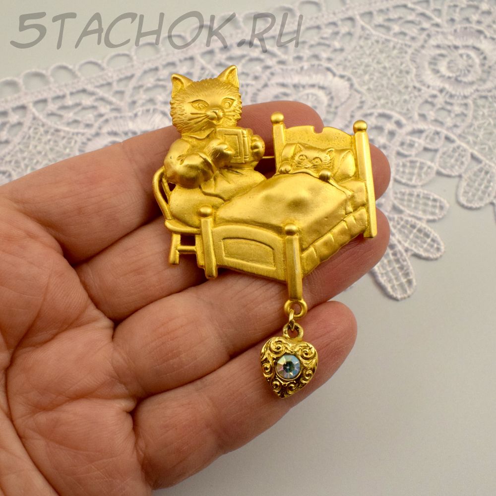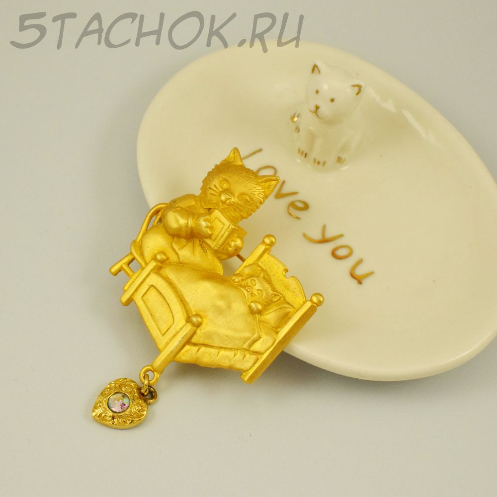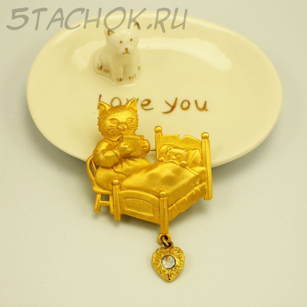 Брошь "Кошка читает книжку котенку" (JJ США)