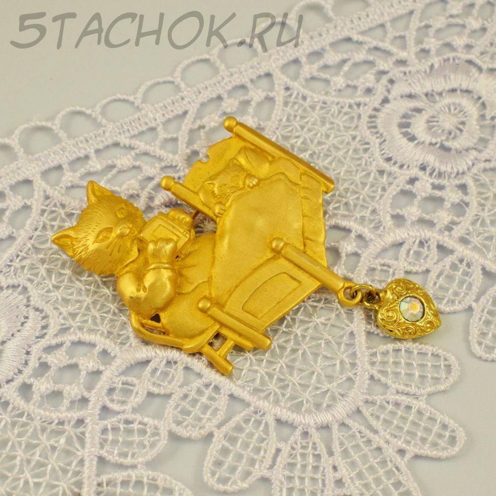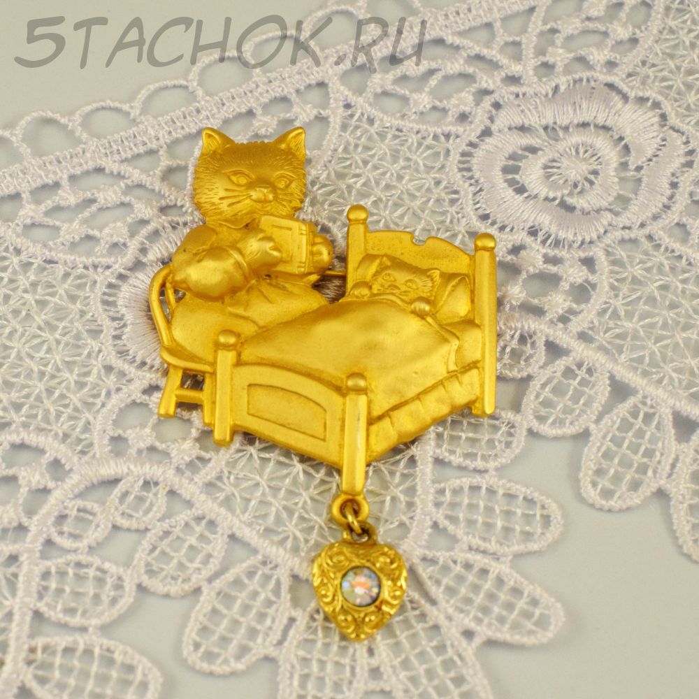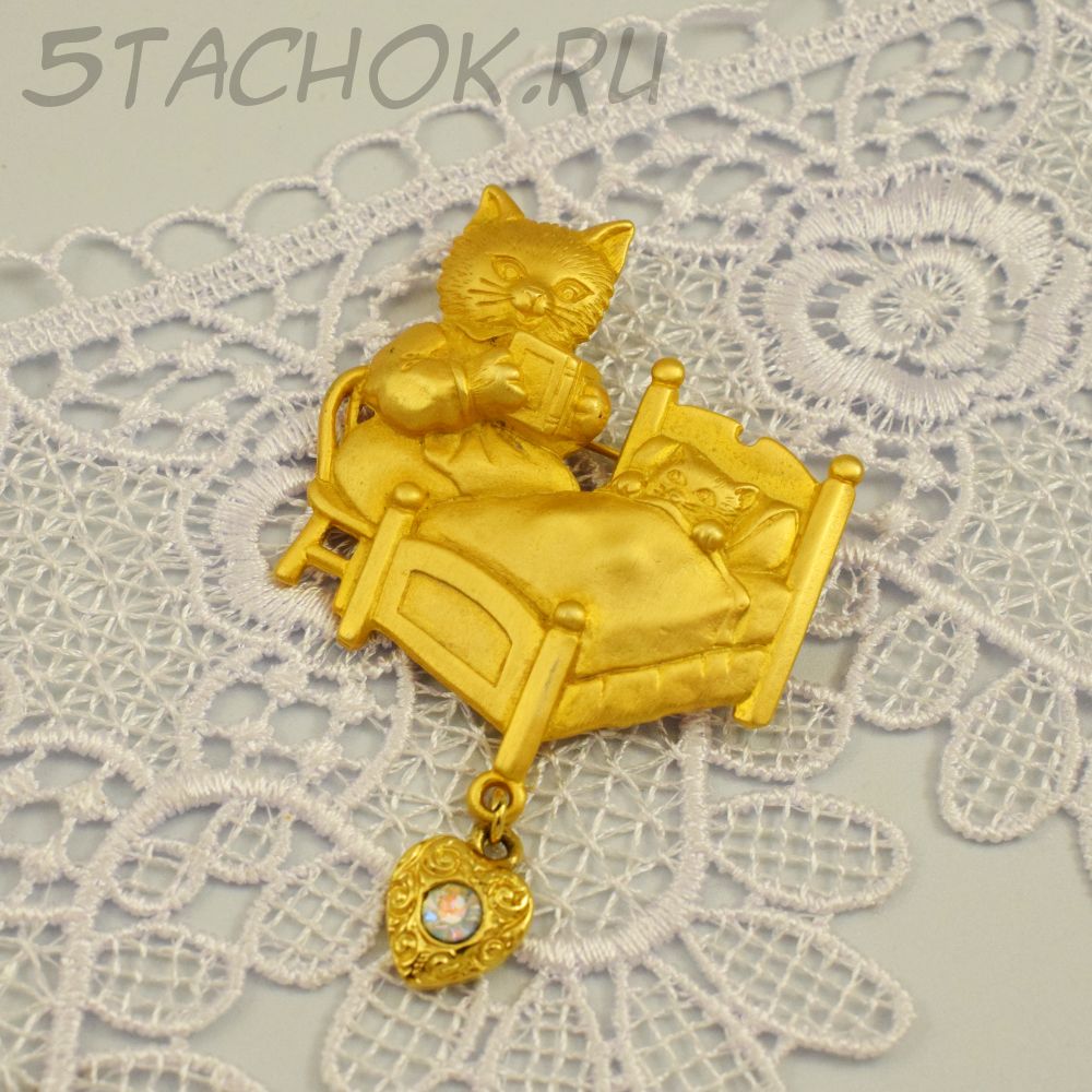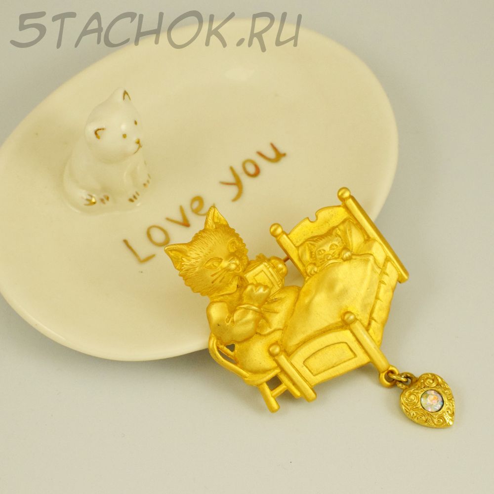 Брошь "Кошка читает книжку котенку" (JJ США)