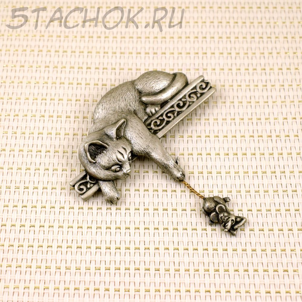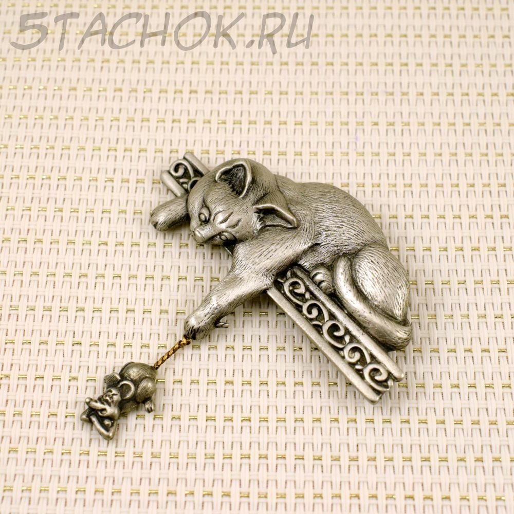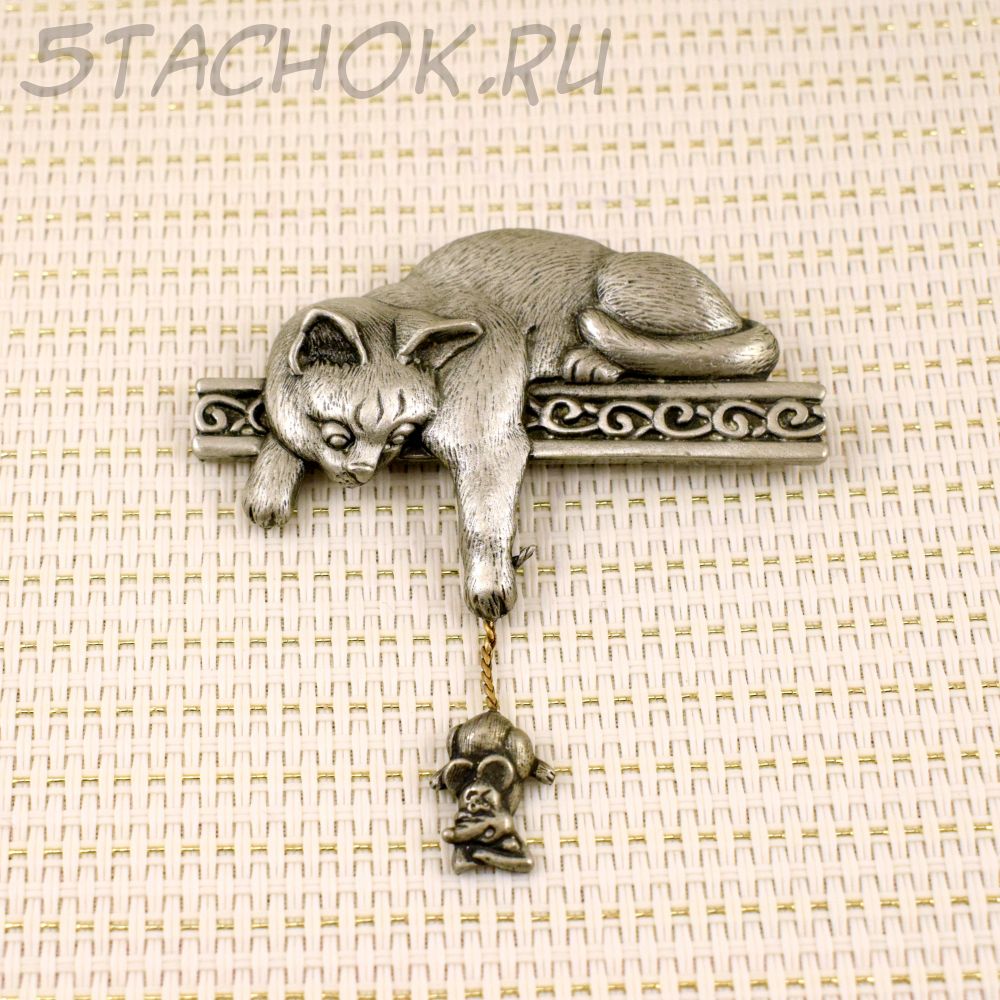 Брошь "Кошка и сердитая мышка" цвет олова (JJ США)