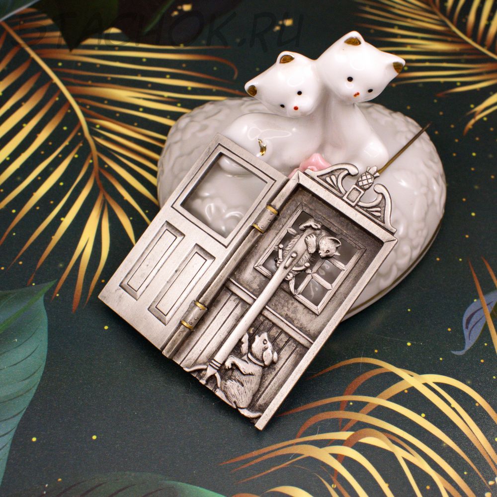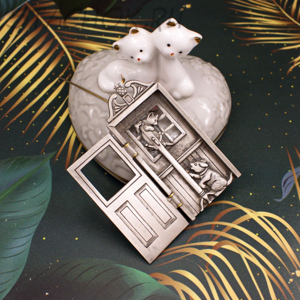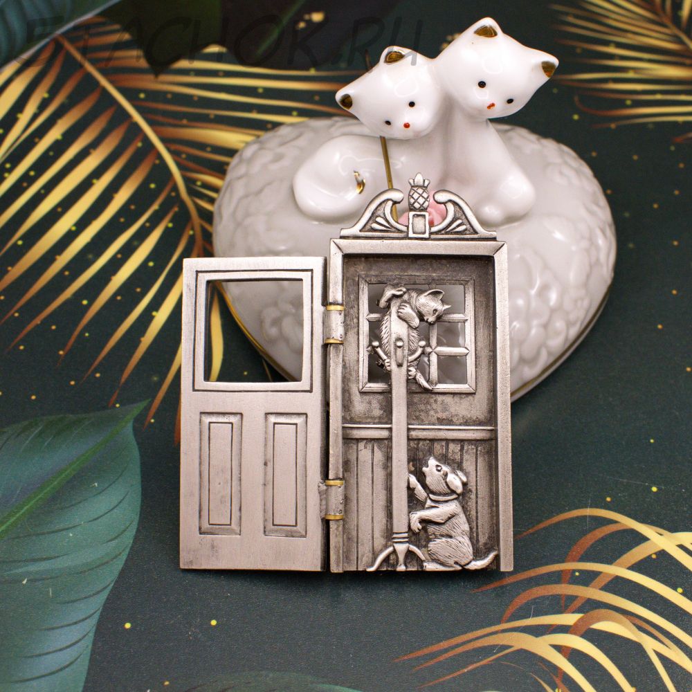 Брошь "Кошка и собачка за дверью" цвет олова (JJ США)