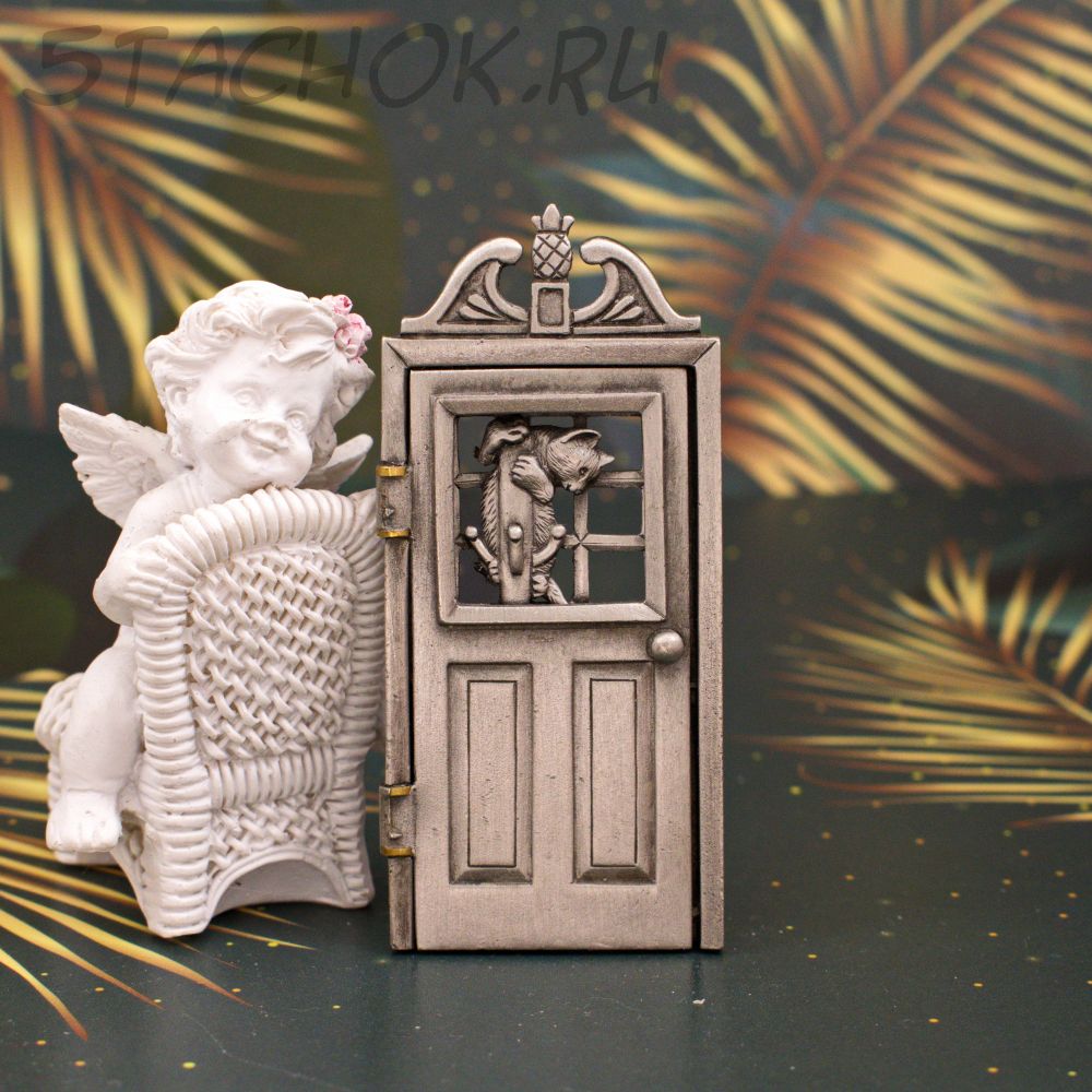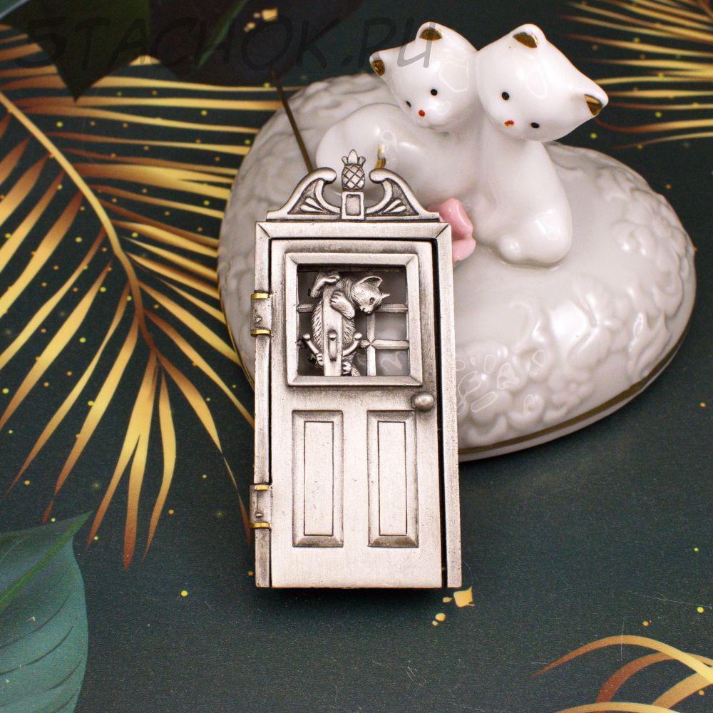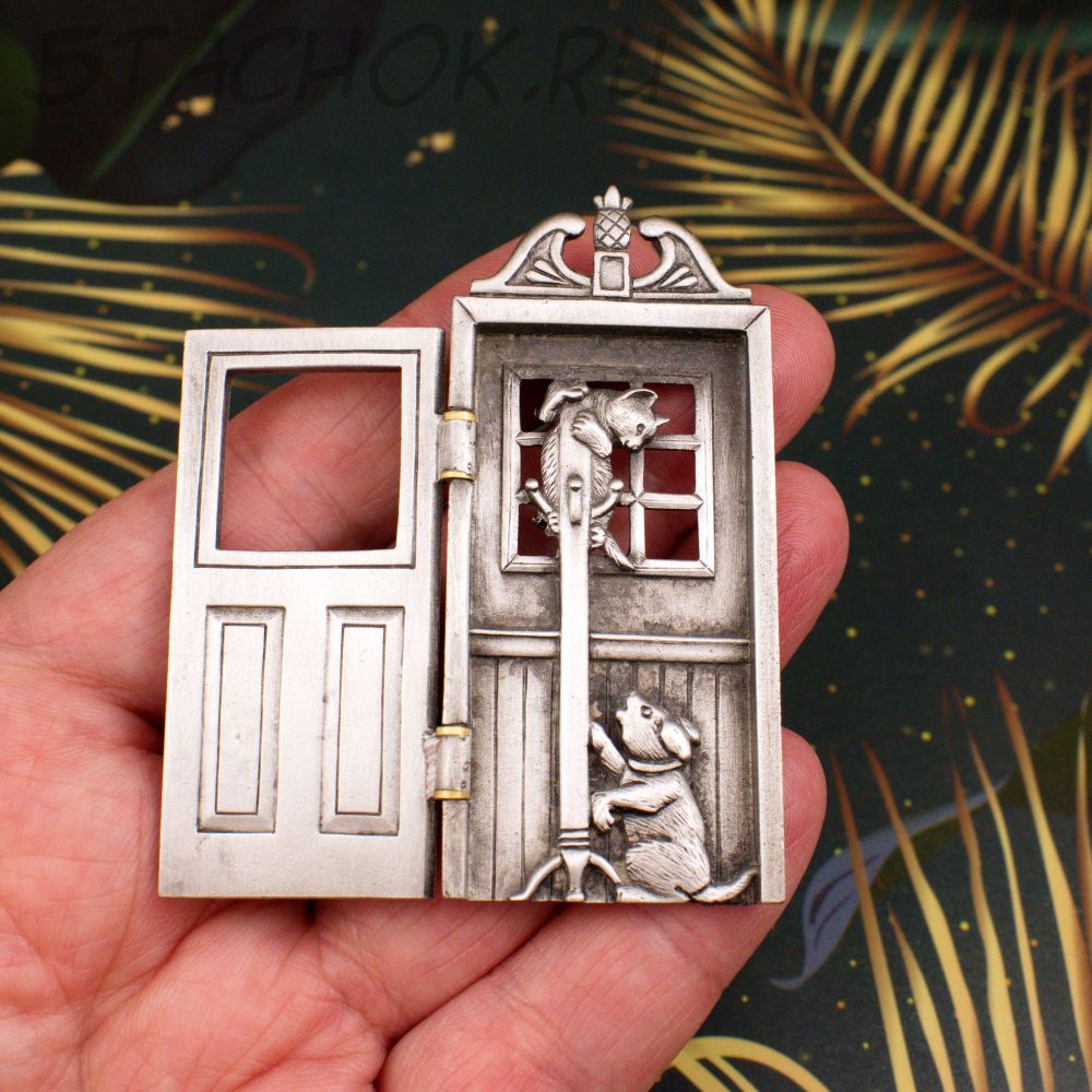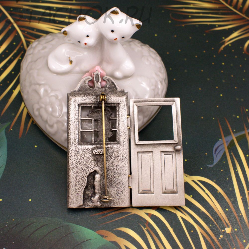 Брошь "Кошка и собачка за дверью" цвет олова (JJ США)