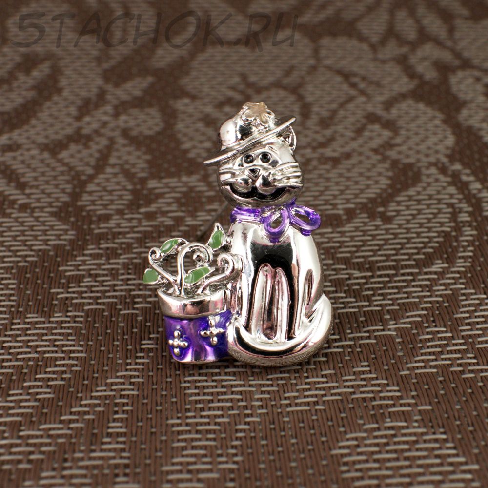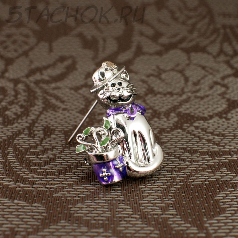 Брошь "Кошка в шляпке и цветком" (Danecraft США)