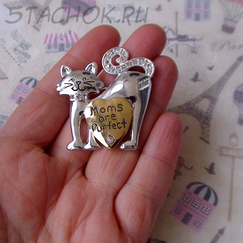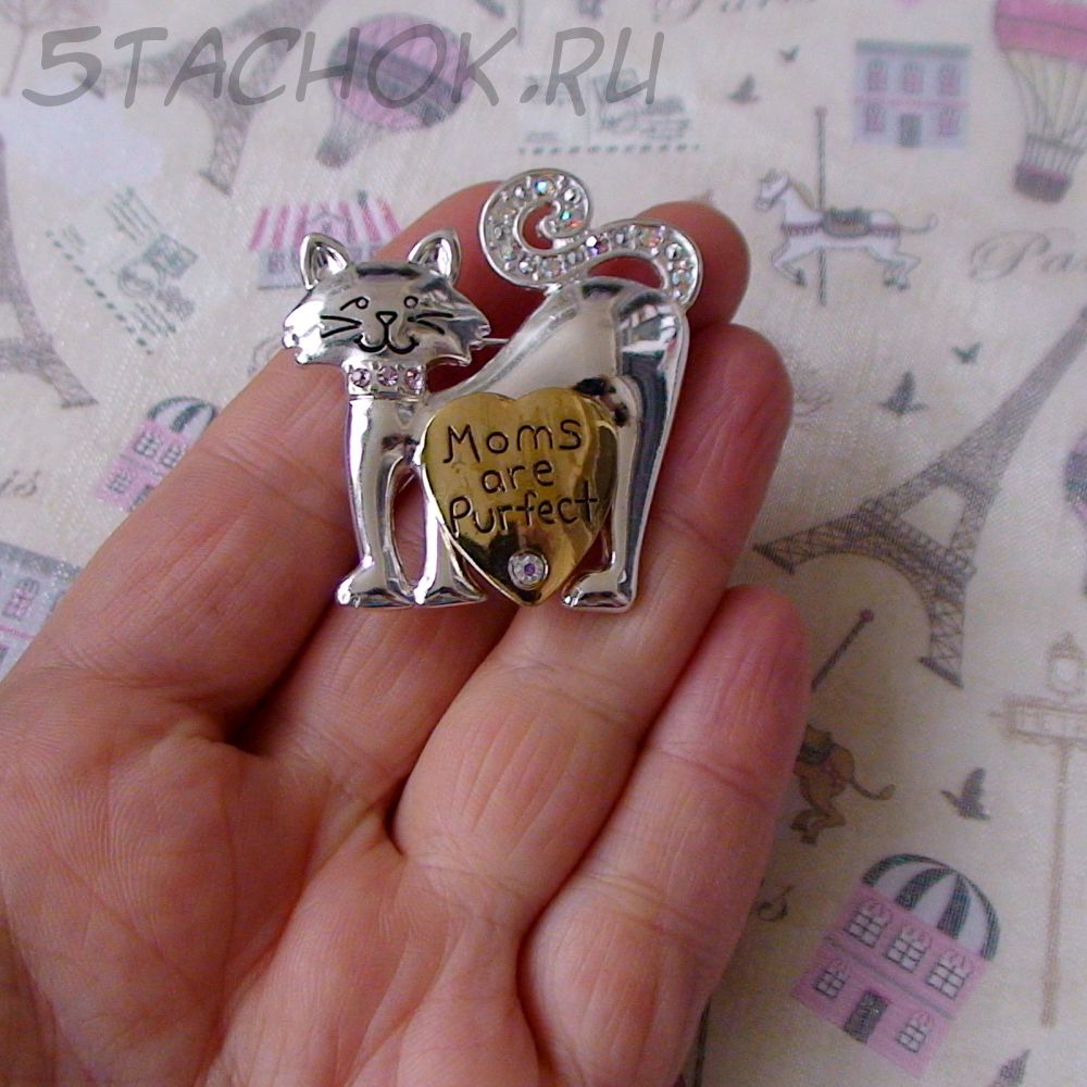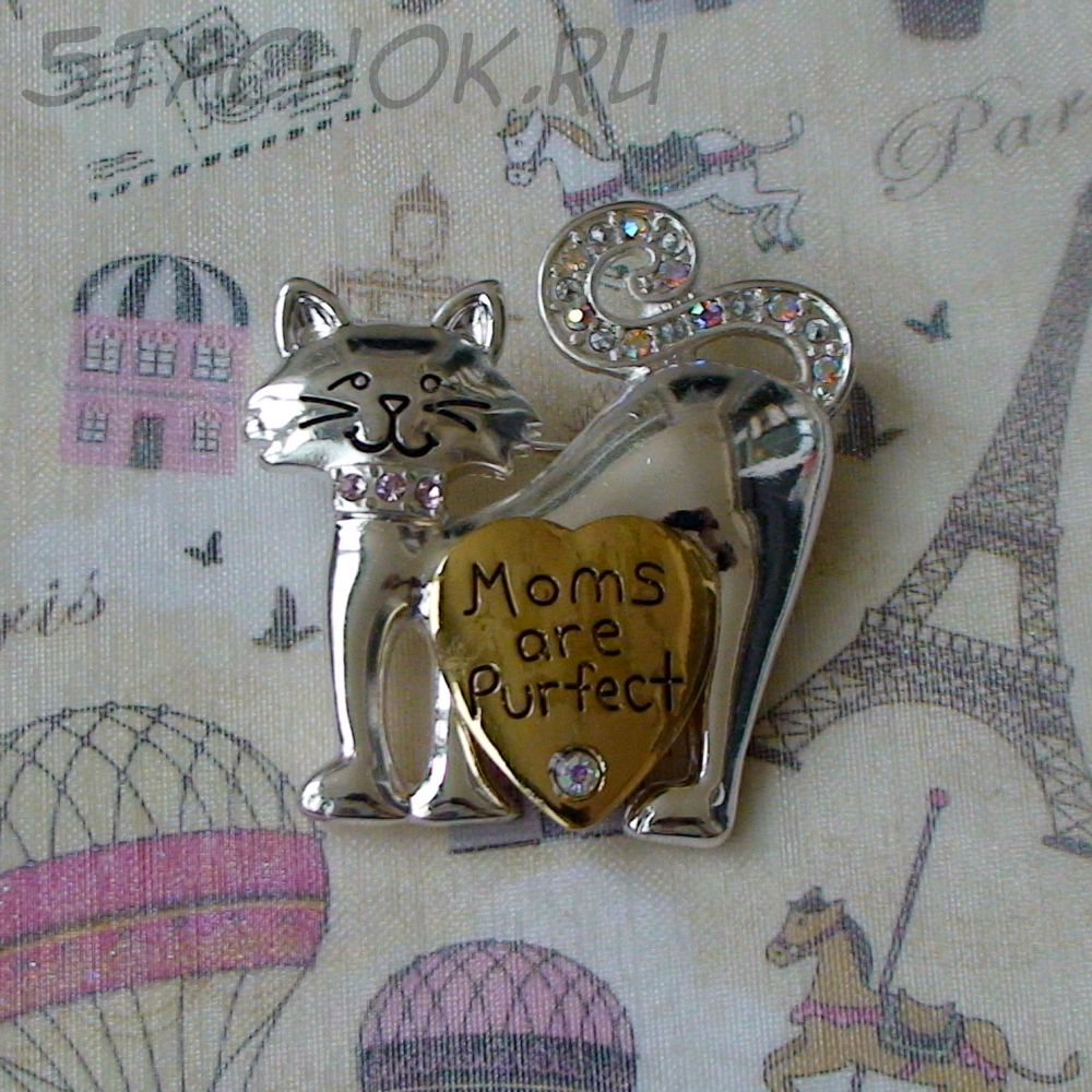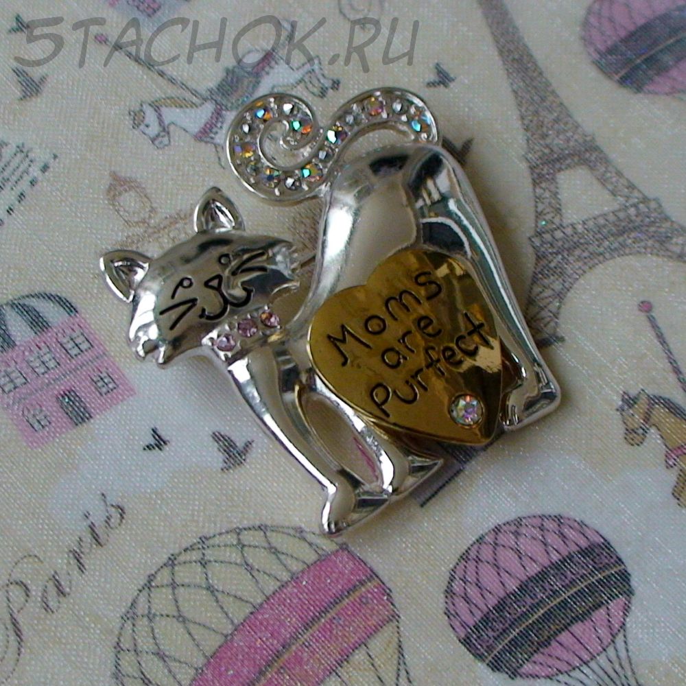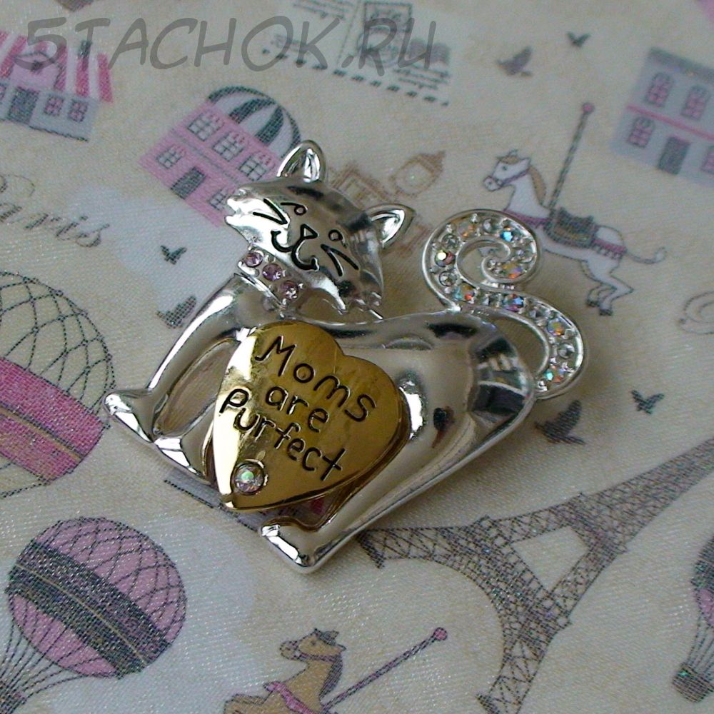Брошь "Кошки-мамочки" под серебро, золото, стразы