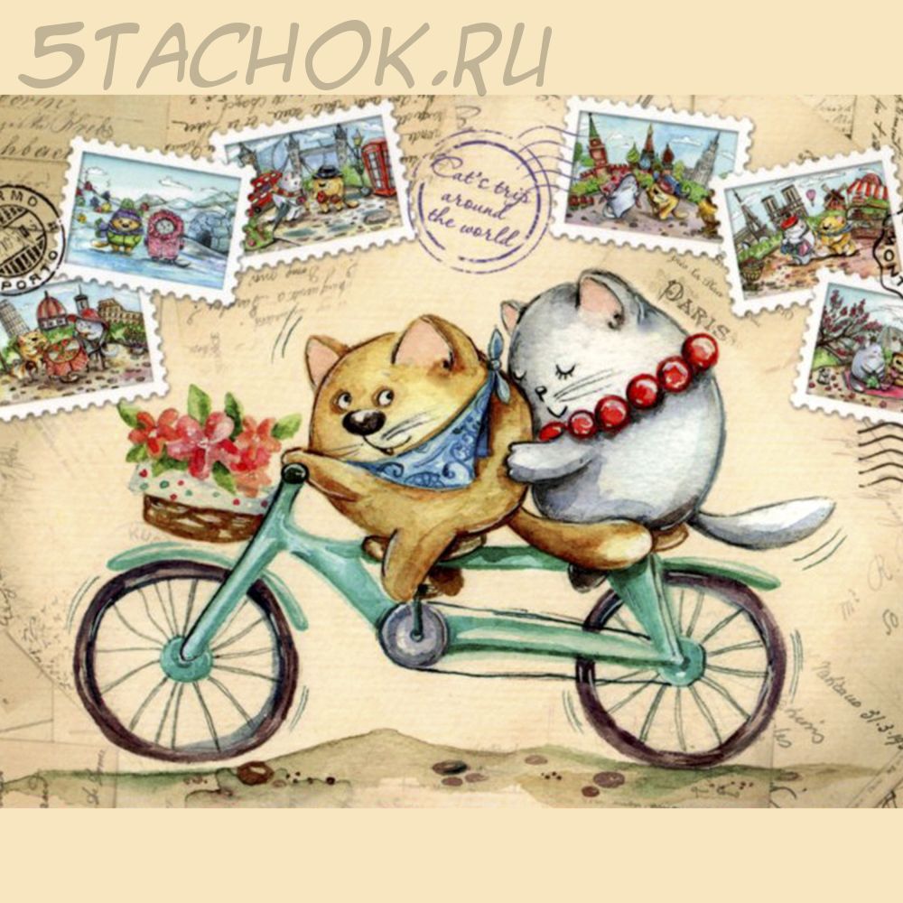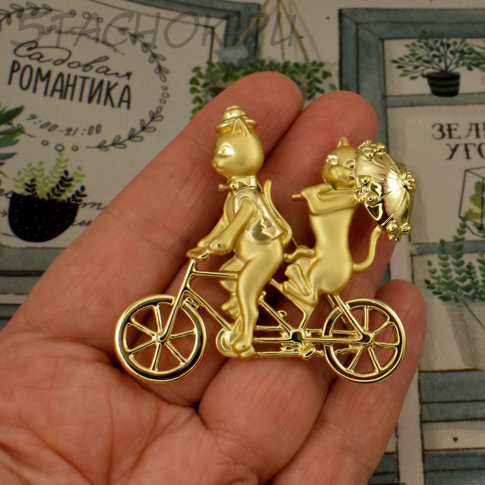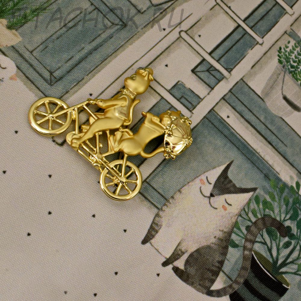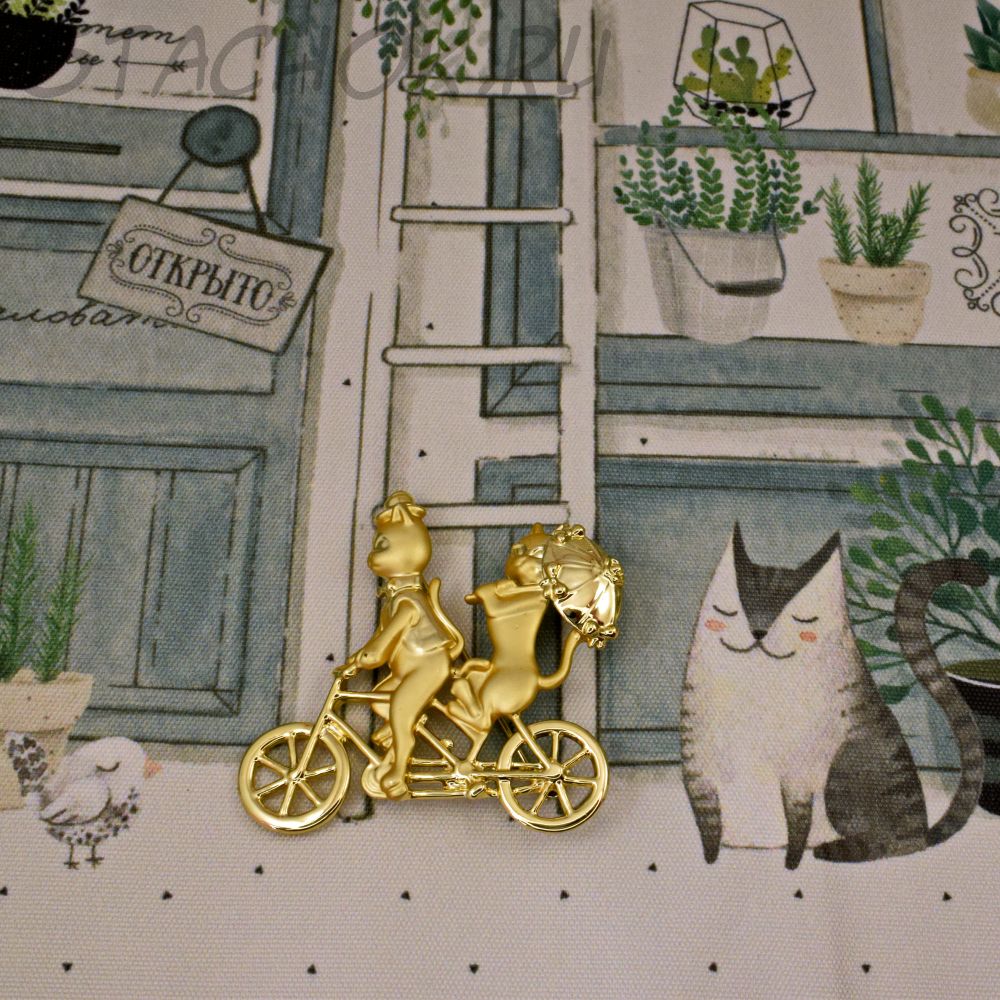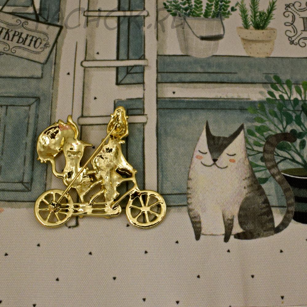 Брошь "Кот и кошечка на велосипеде" (AJC США)