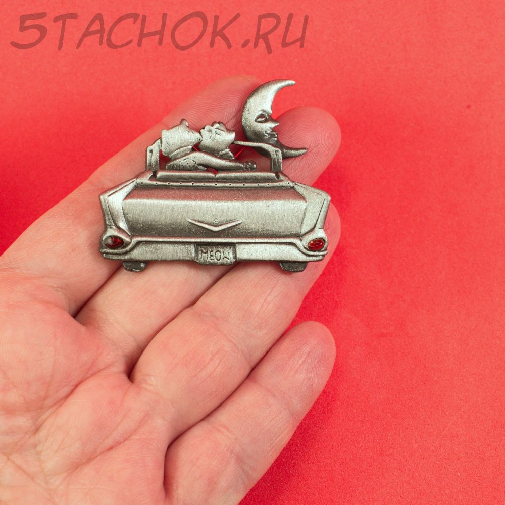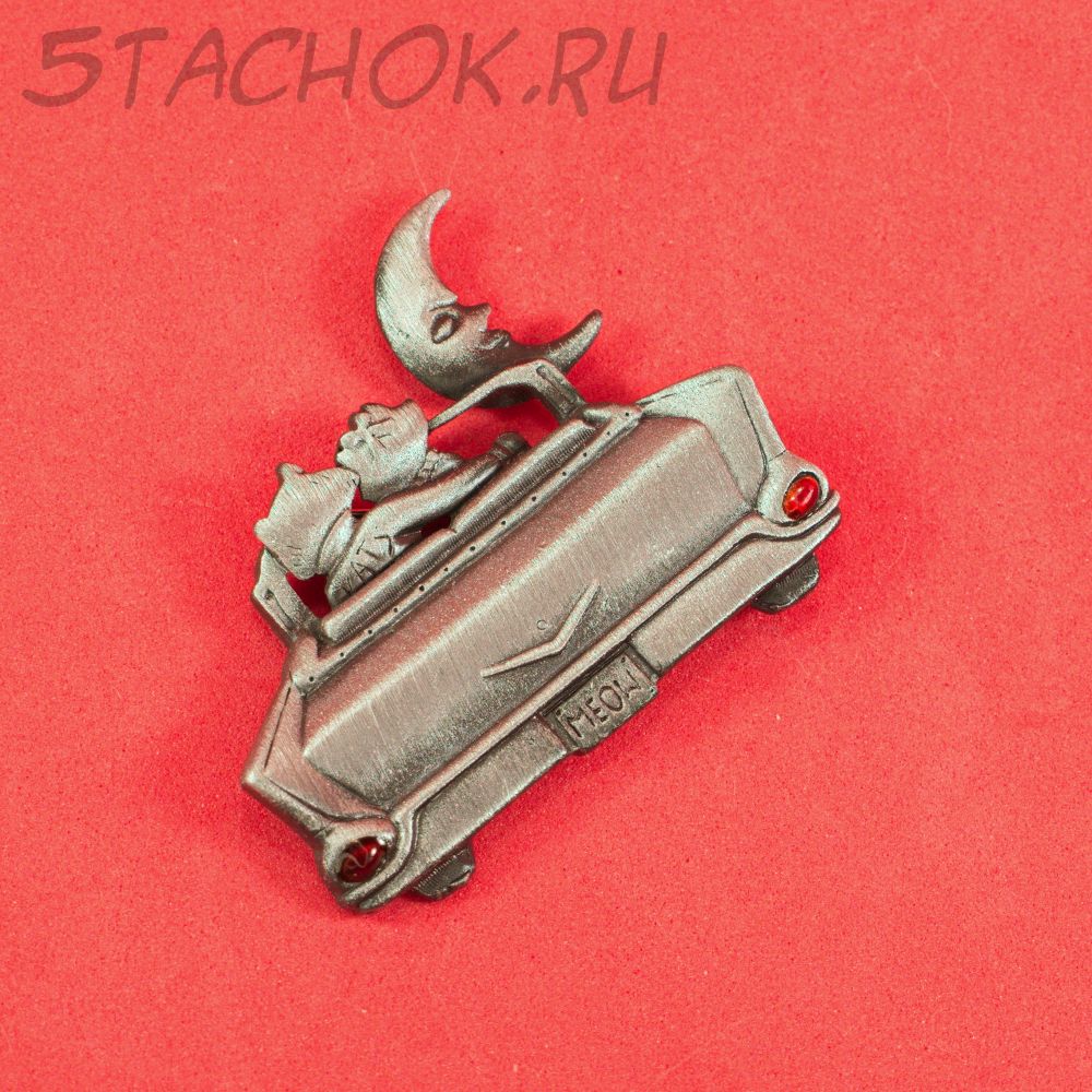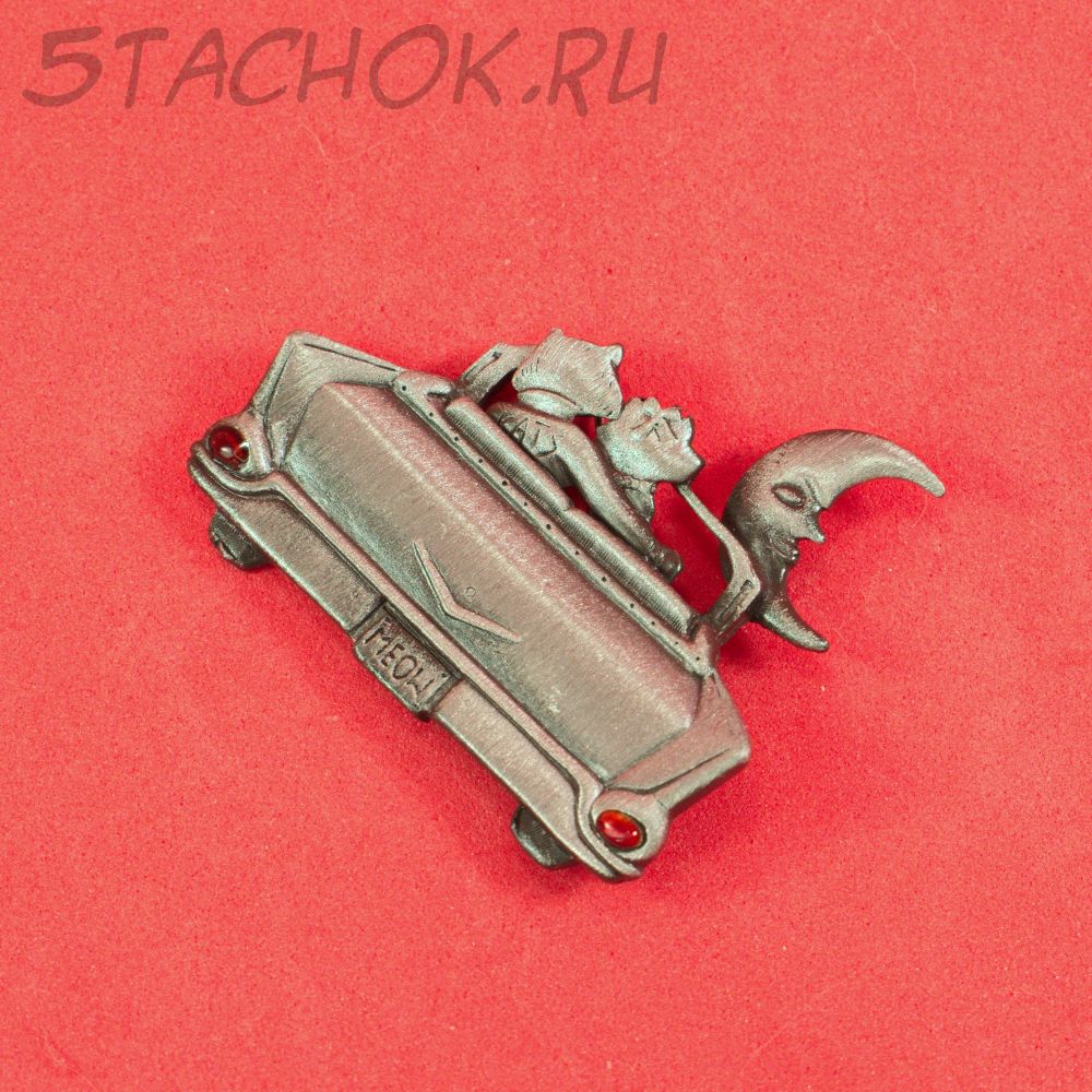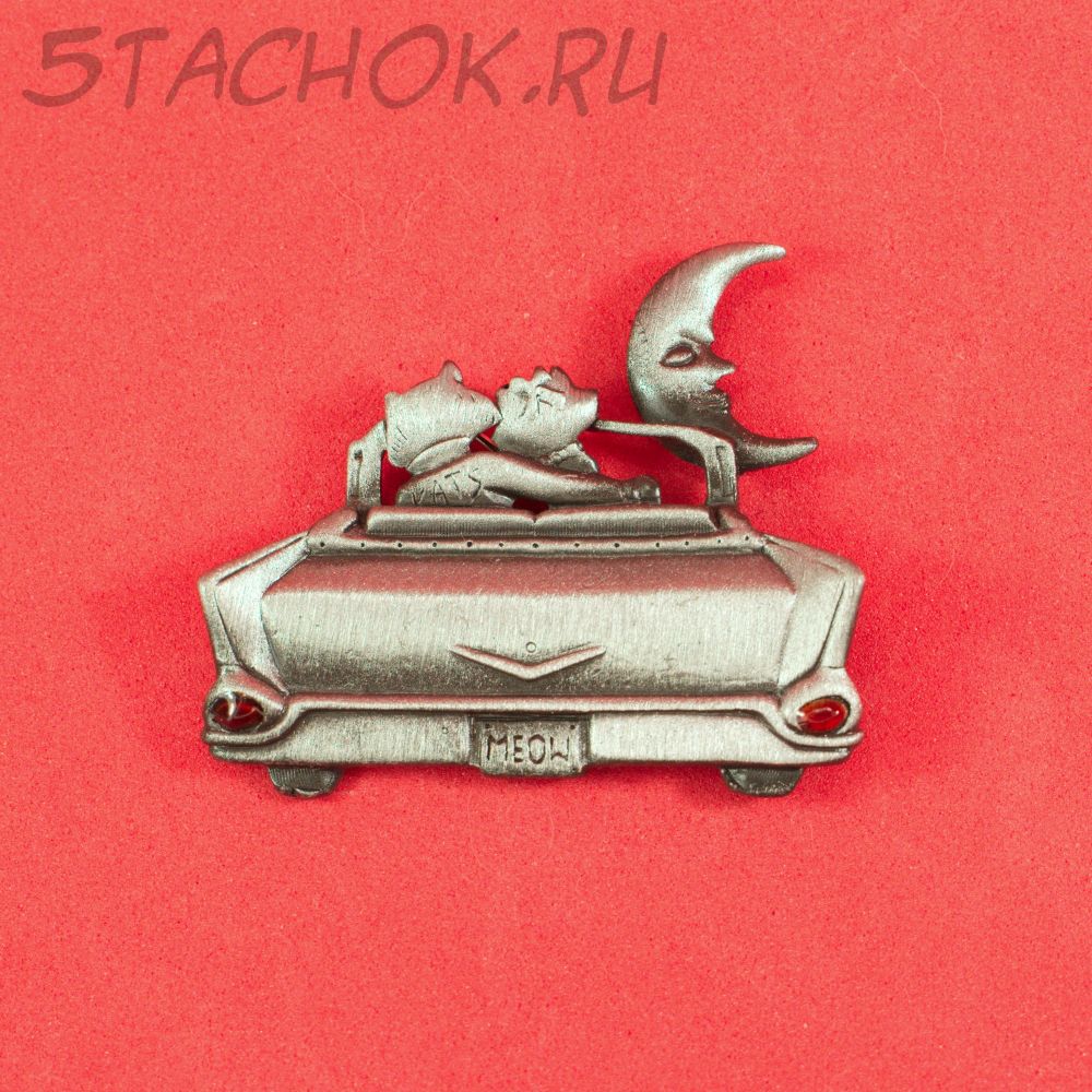 Брошь "Кот и кошечка в кабриолете" цвет олова (AJC США)