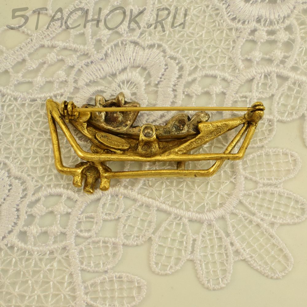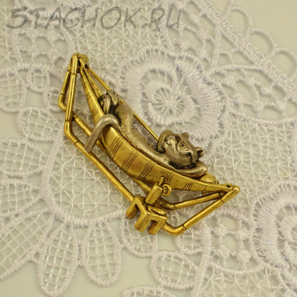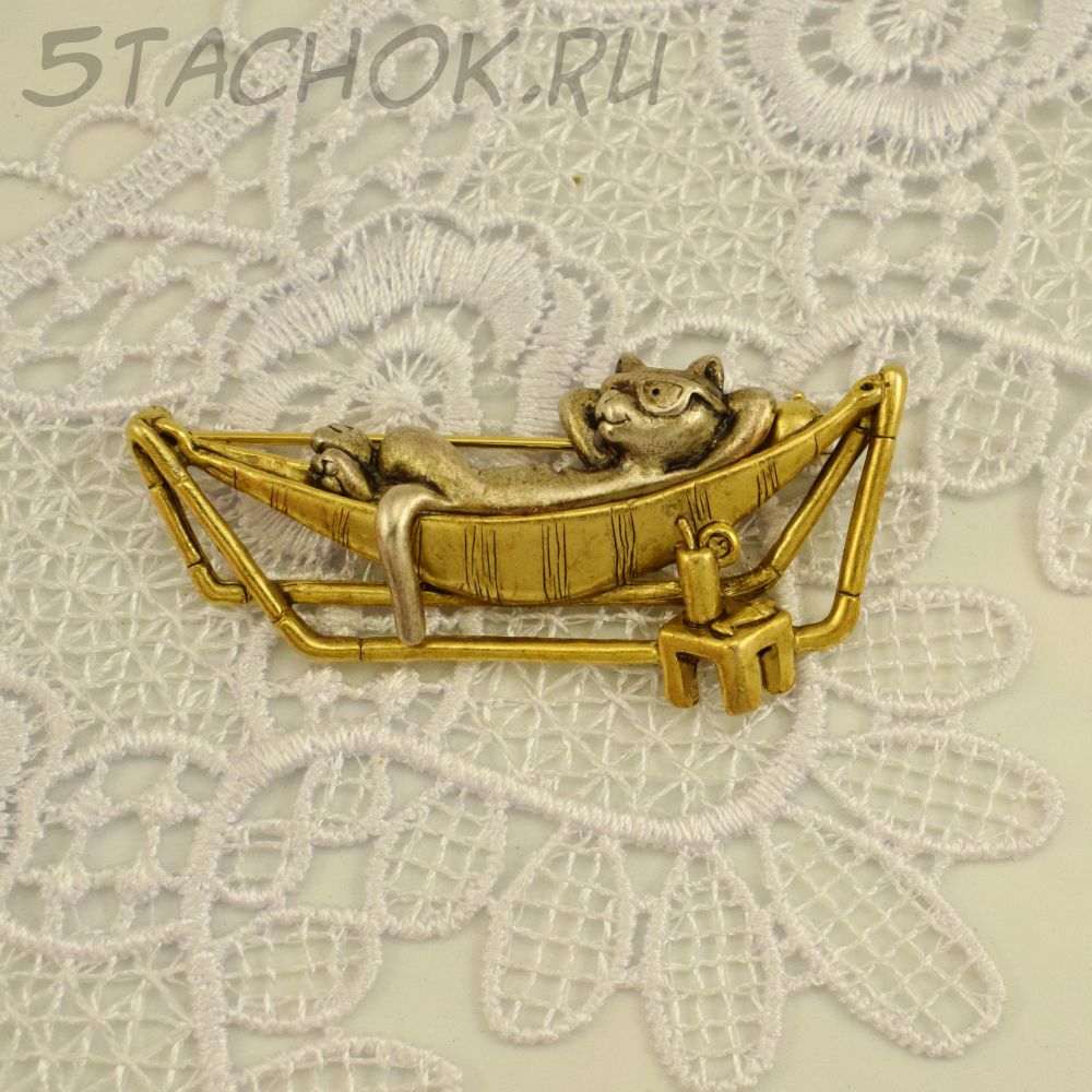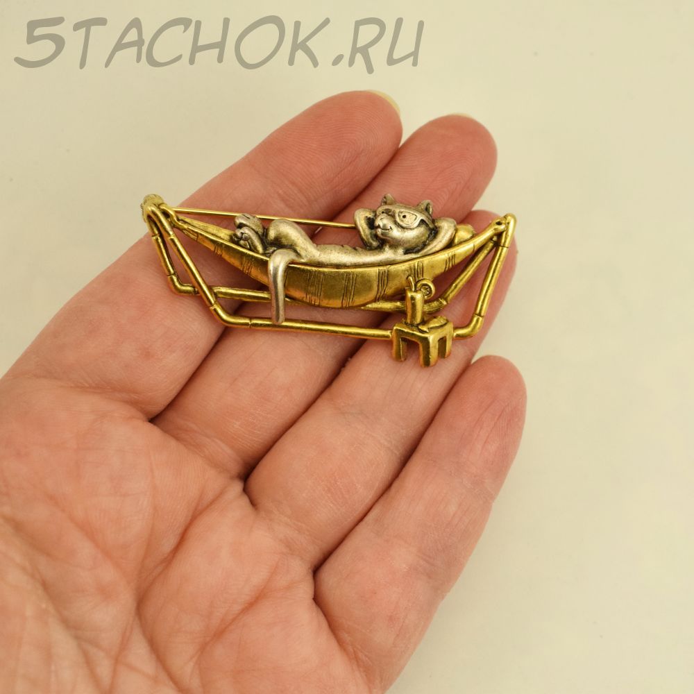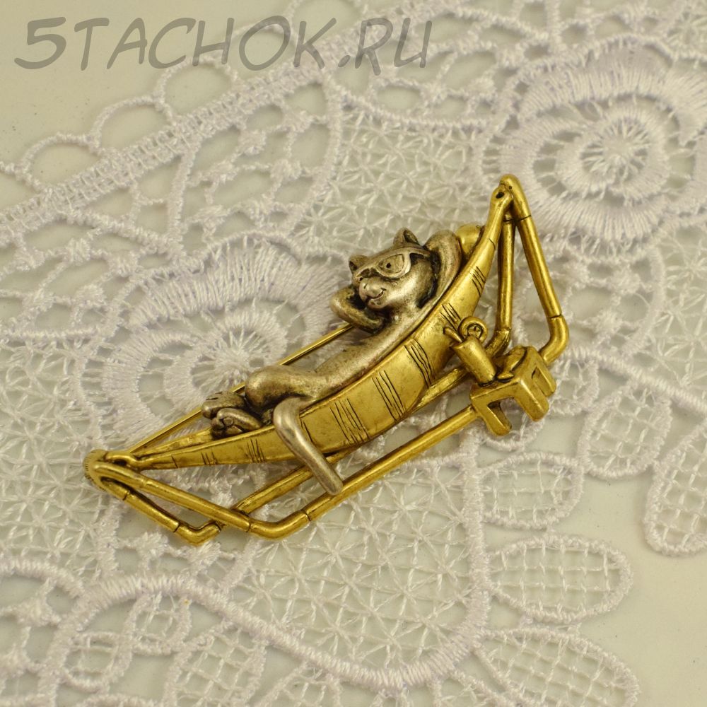 Брошь "Кот в шезлонге" цвет олова/золота (Danecraft США)