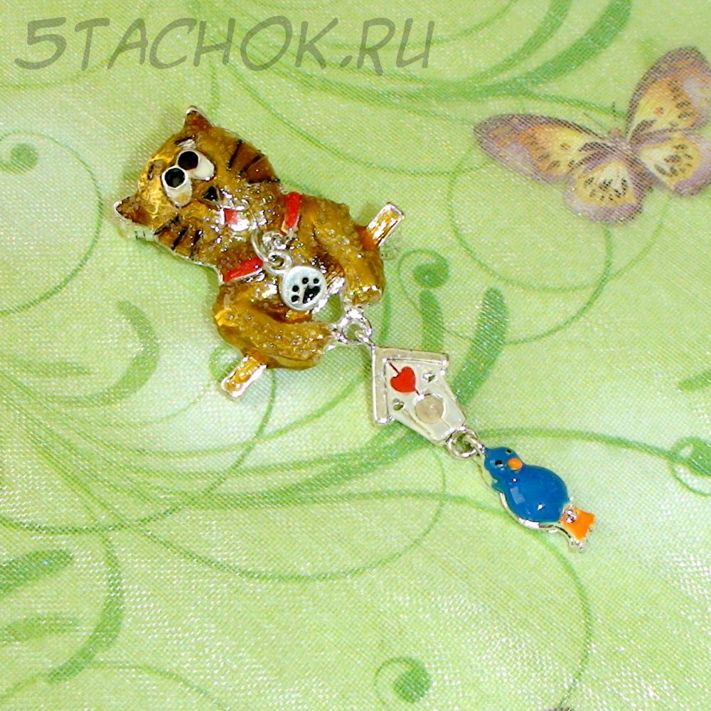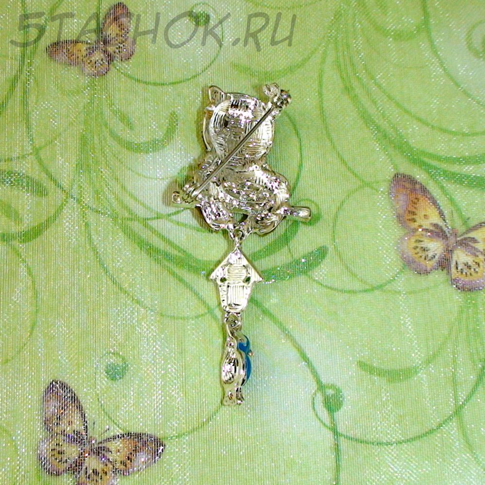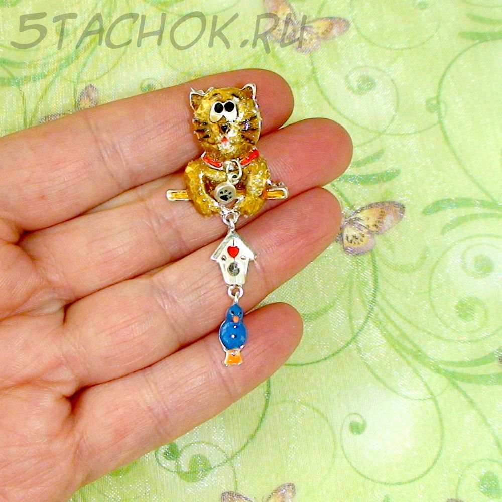 Брошь "Котейка и скворечник" под серебро/эмаль/крошка