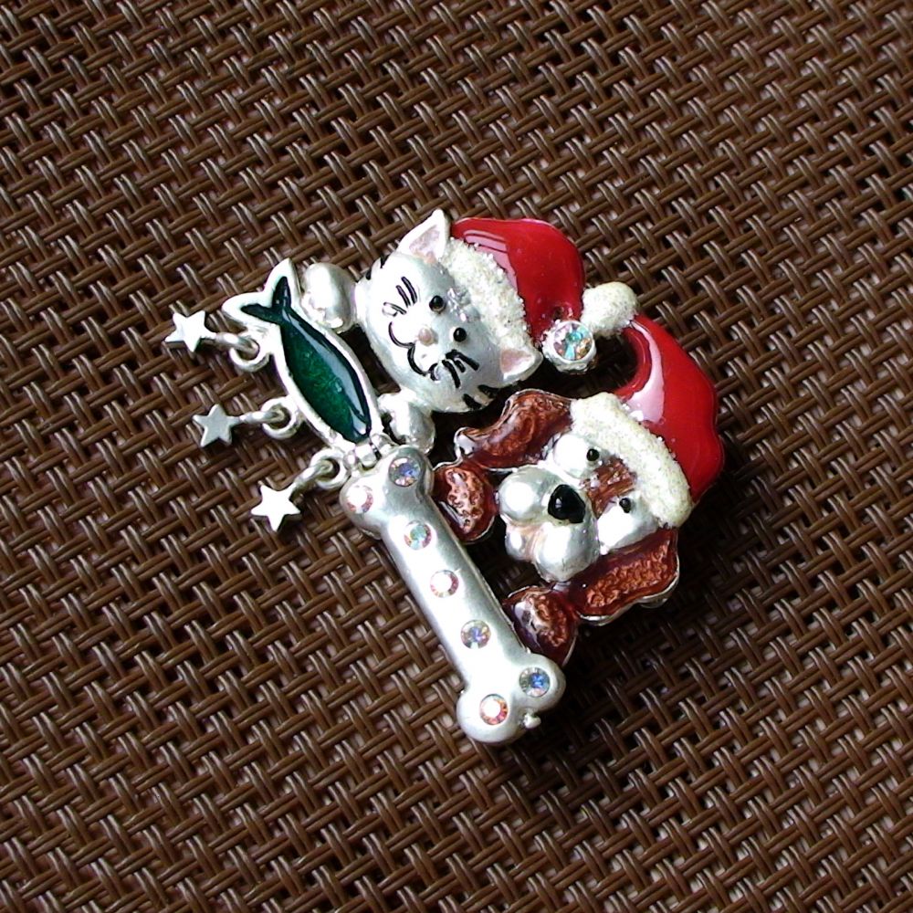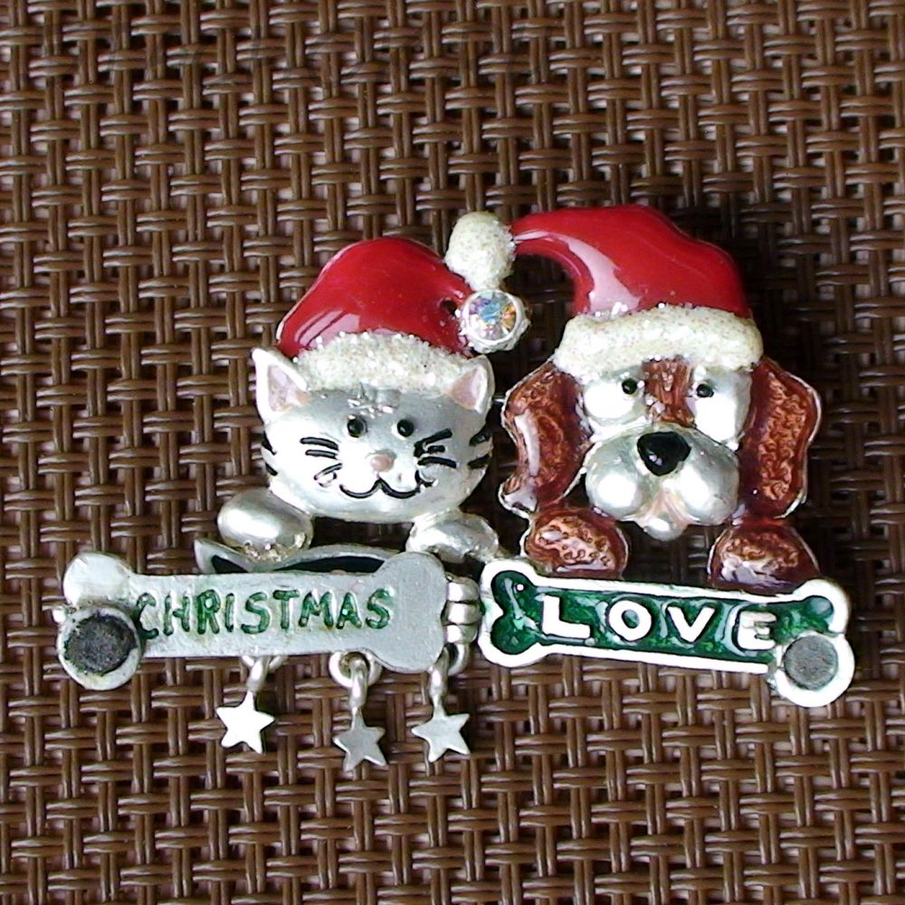 Брошь-трансформер "Котик и песик с подарками на Новый год"