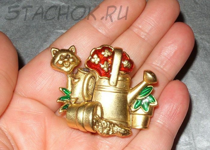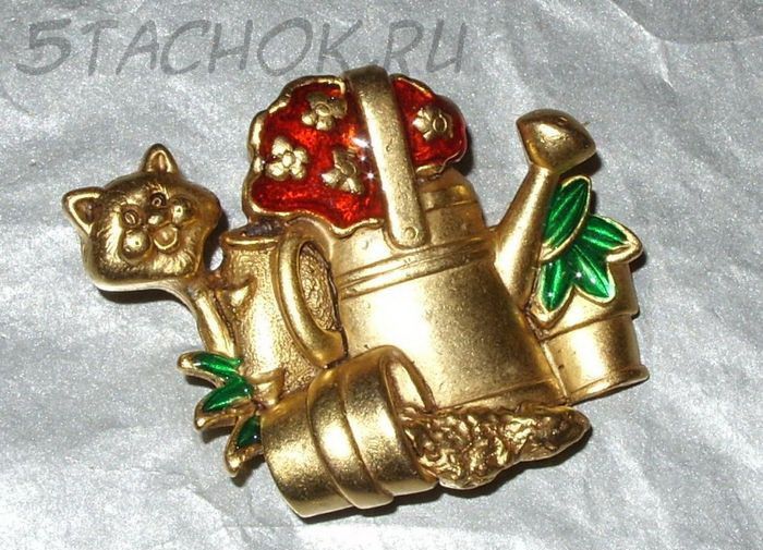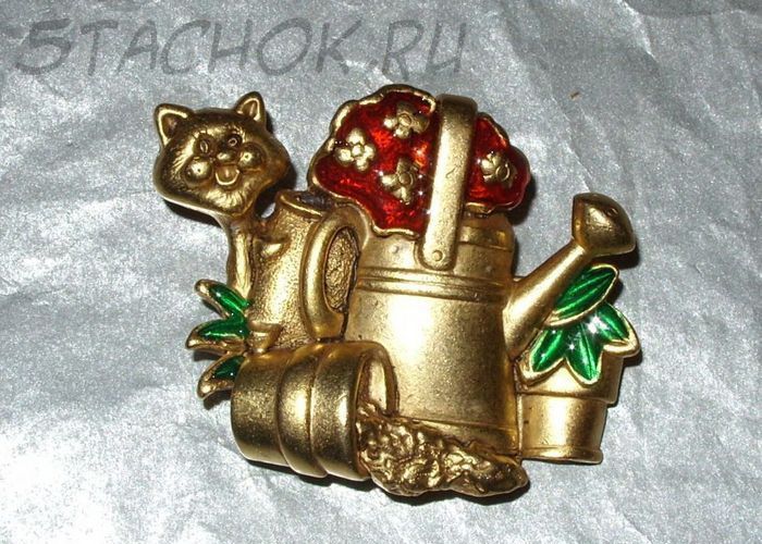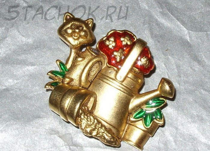 Брошь "Котик-садовод" (Danecraft США)
