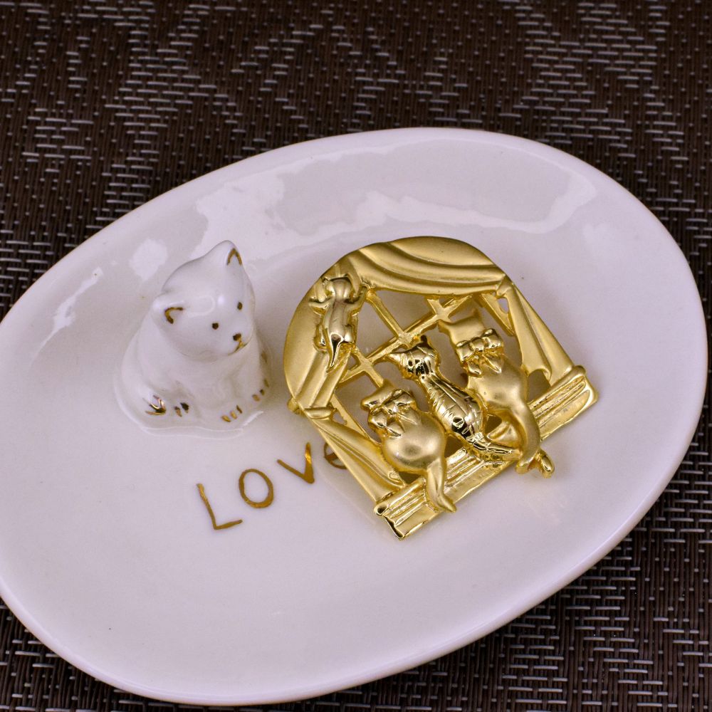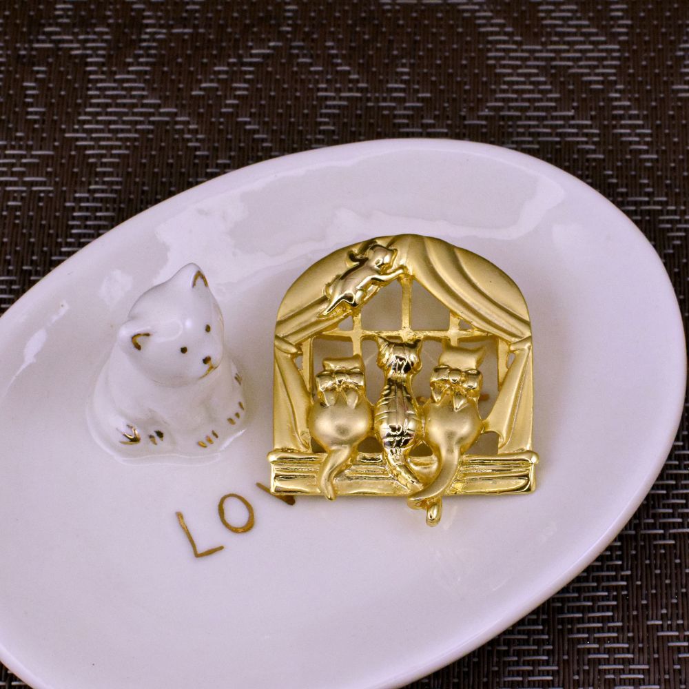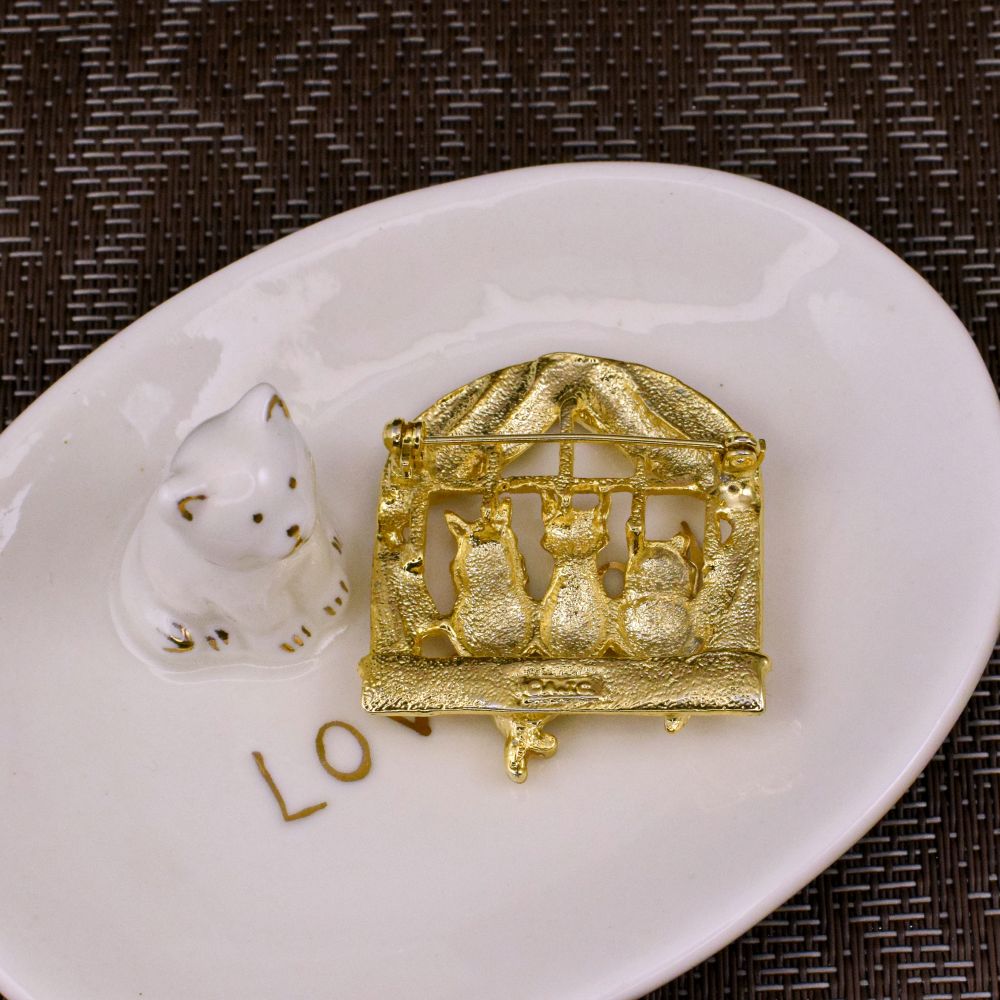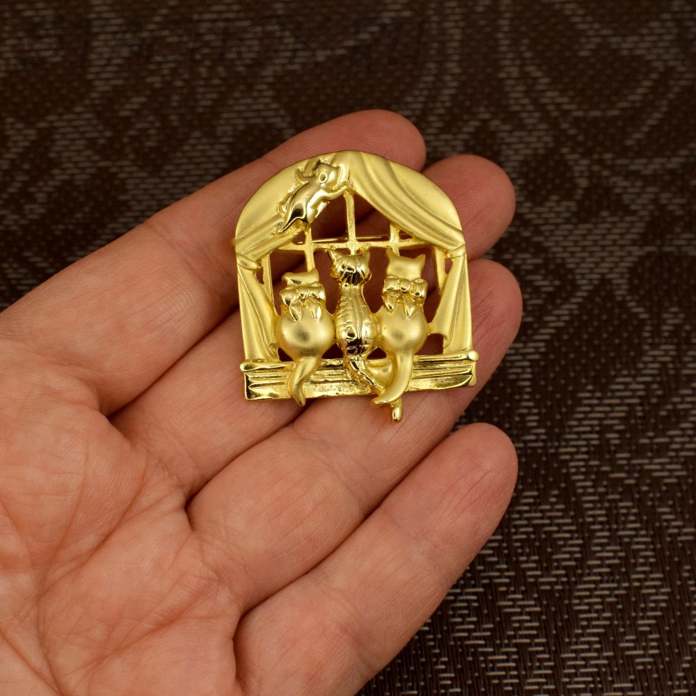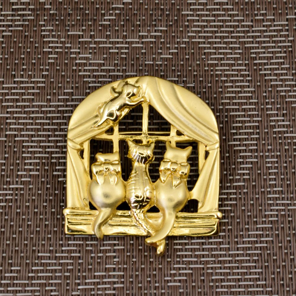 Брошь "Котята у окошка" цвет золота (AJC США)
