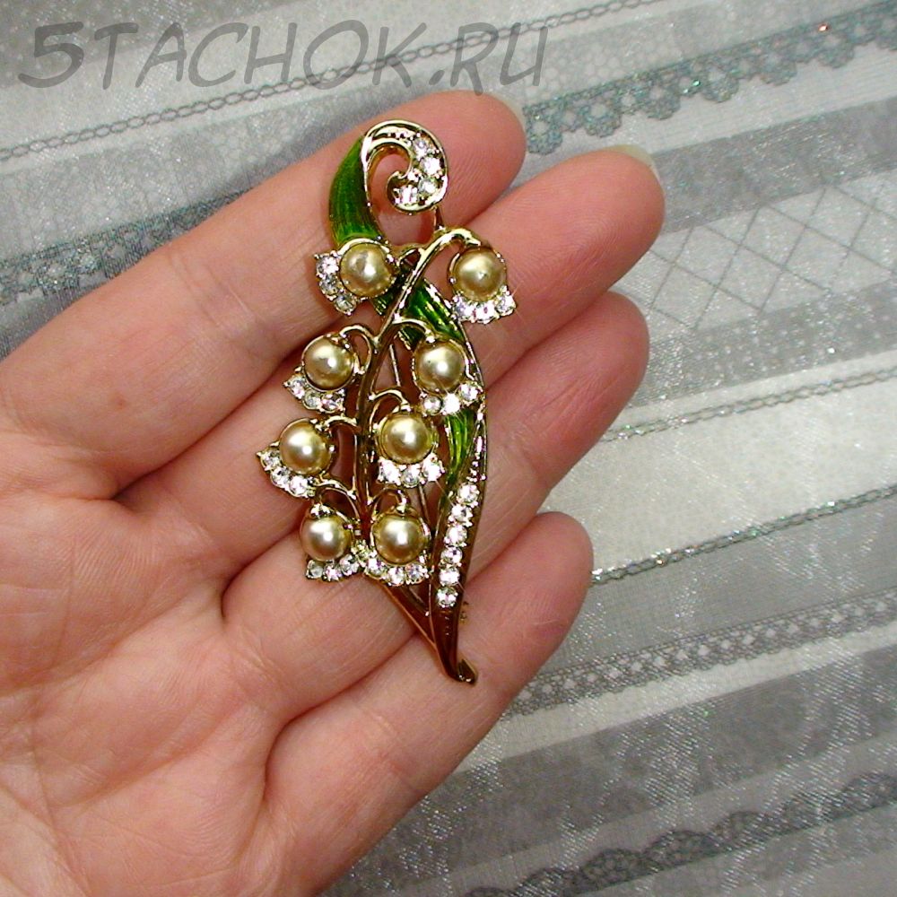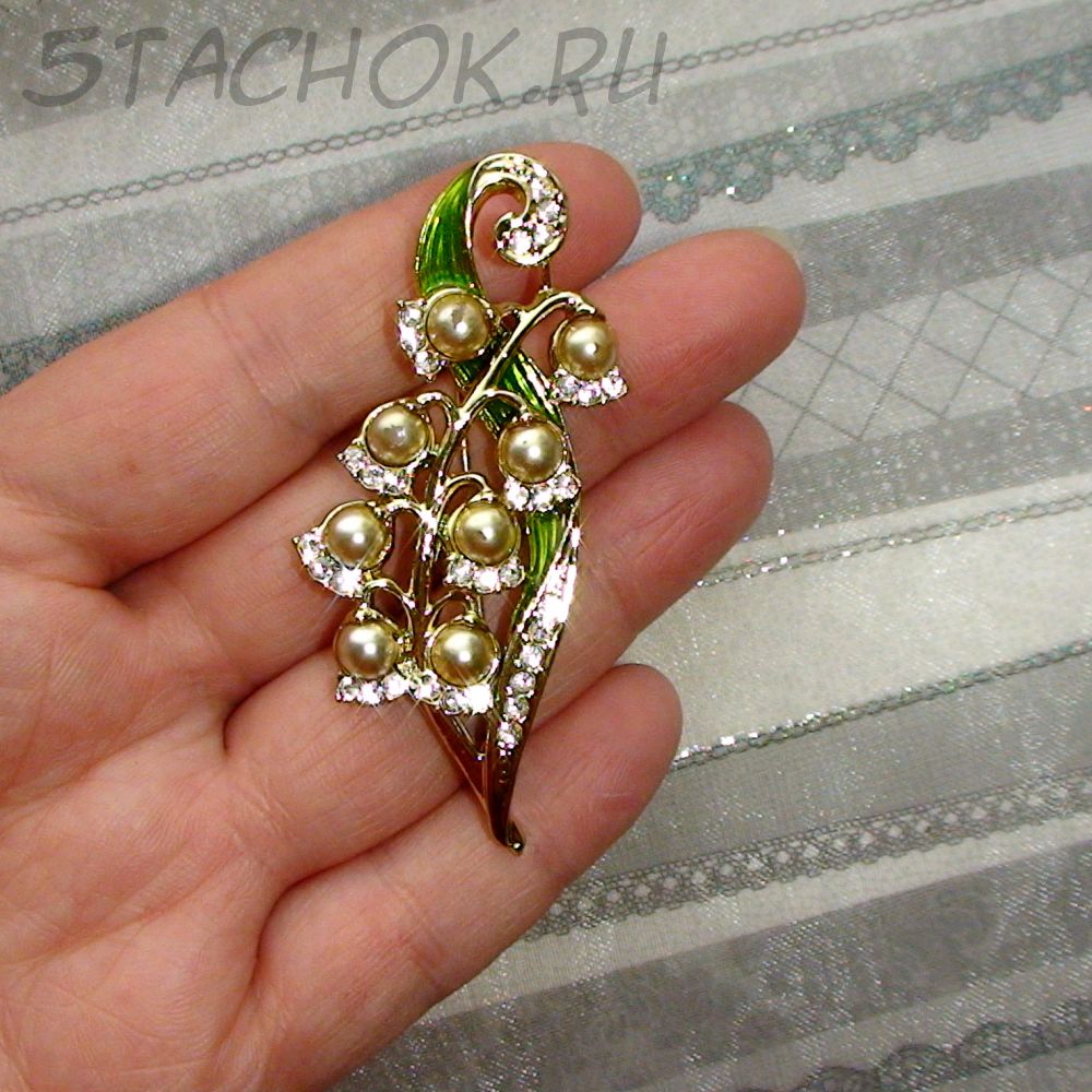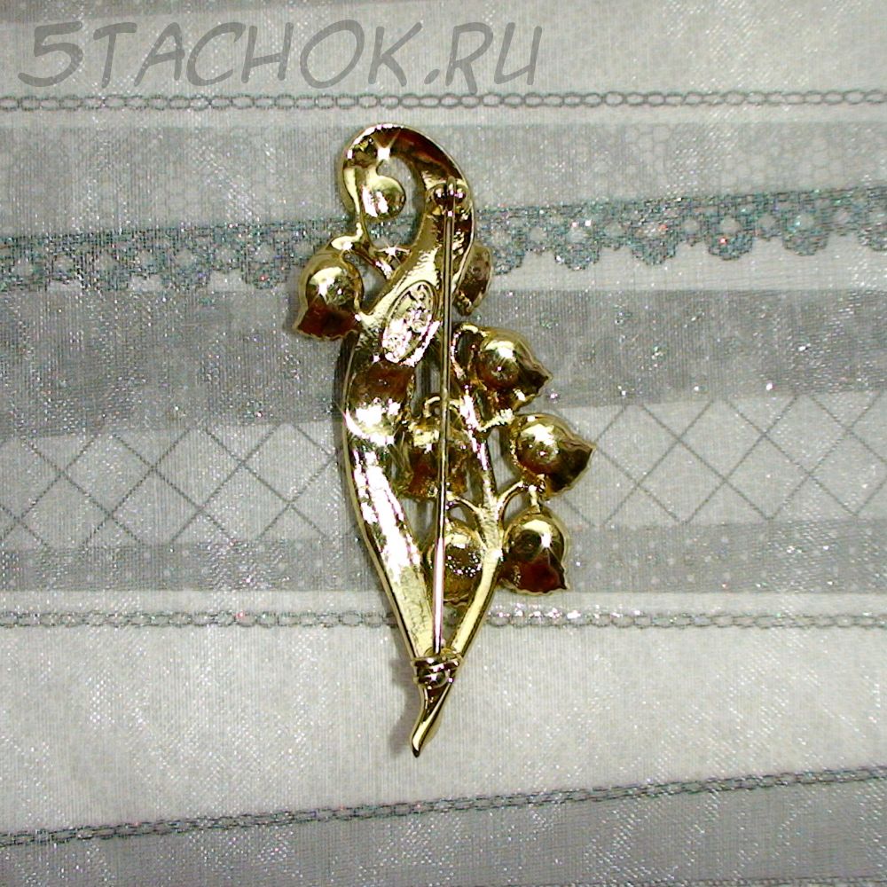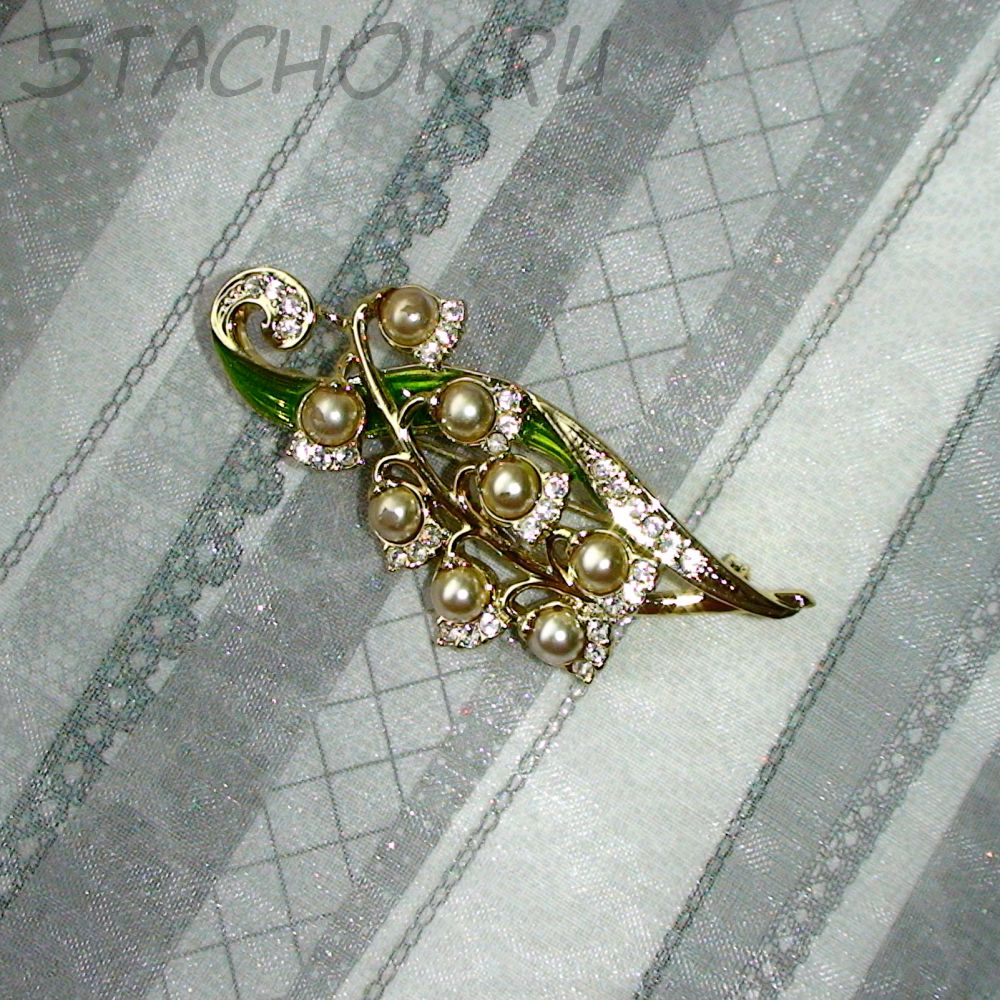 Брошь "Ландыши" под золото/эмаль/исск.жемч./сваровски
