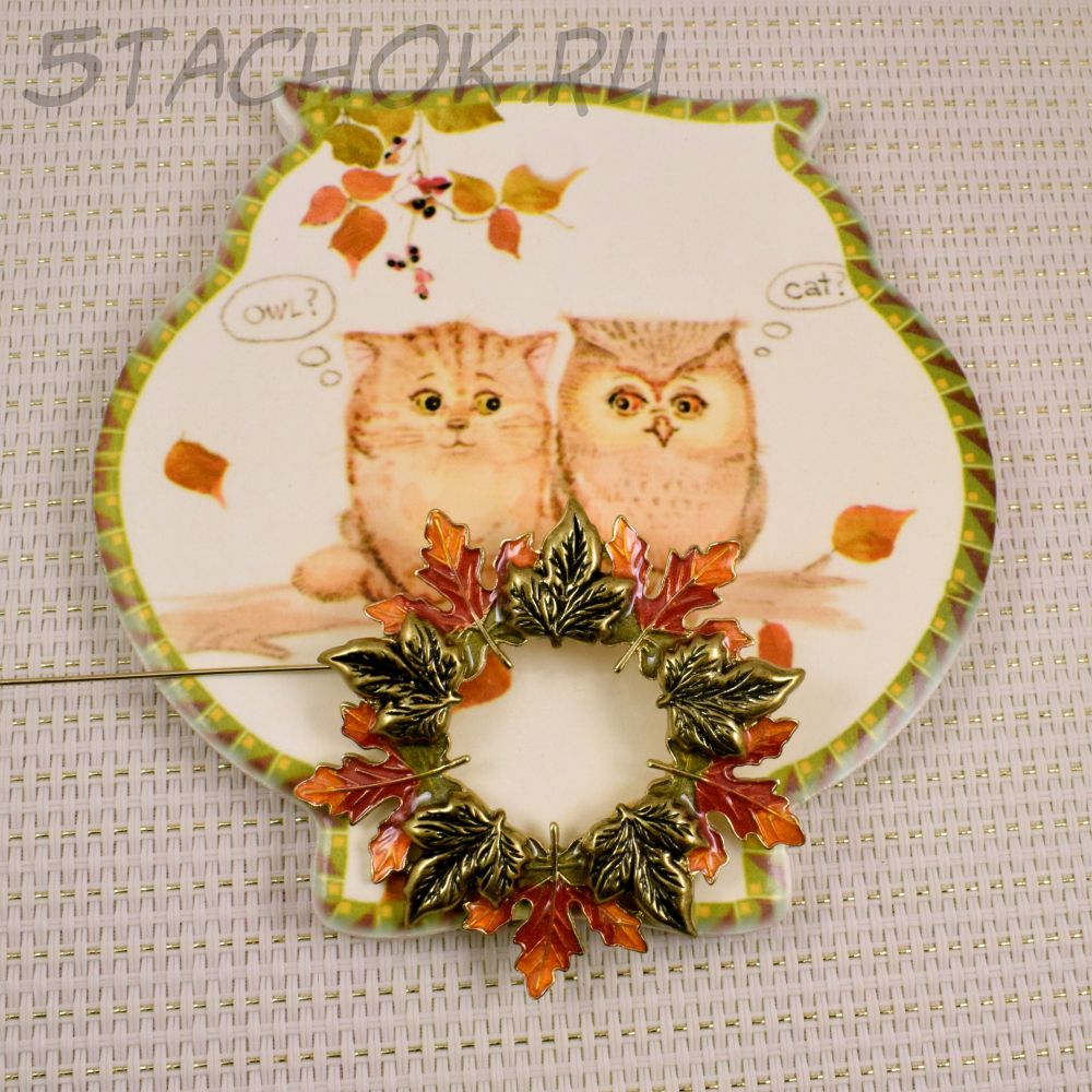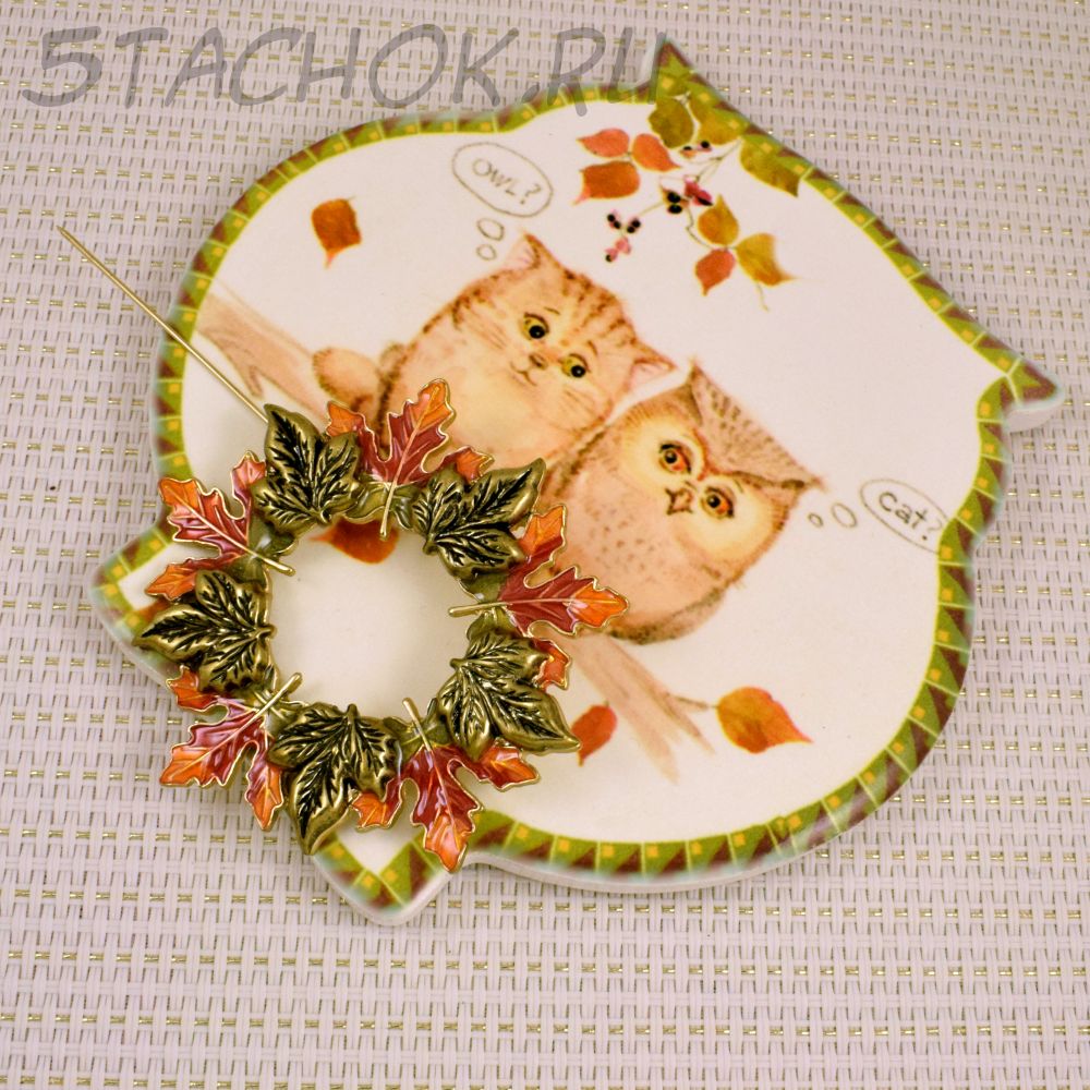 "Осенняя пора, очей очарование..." Выполнена брошь в цвете блестящего золота с использованием перламутровой эмали оранжевого, охристого и зеленого цветов. У листиков прорисованы жилки и фактура листочков.