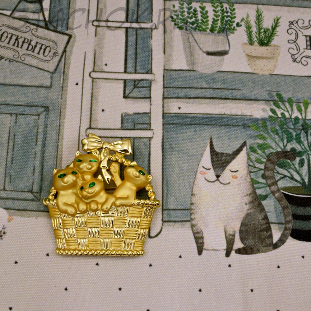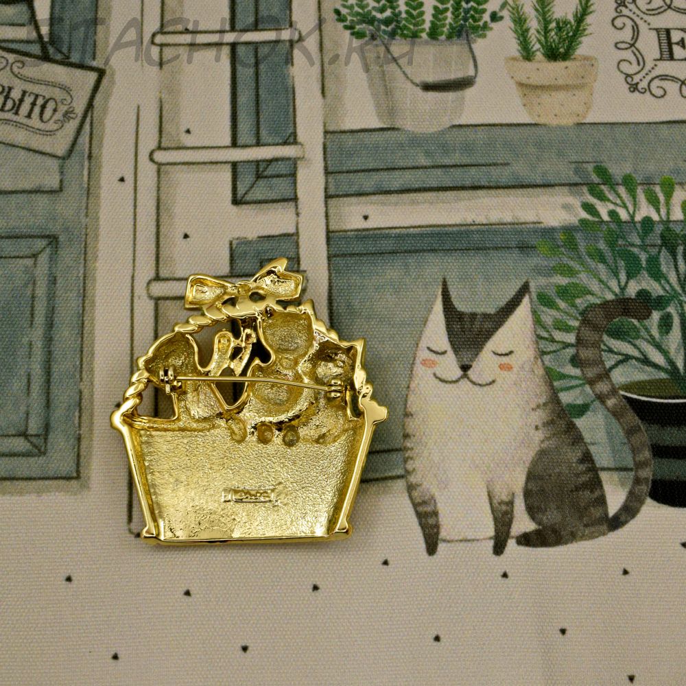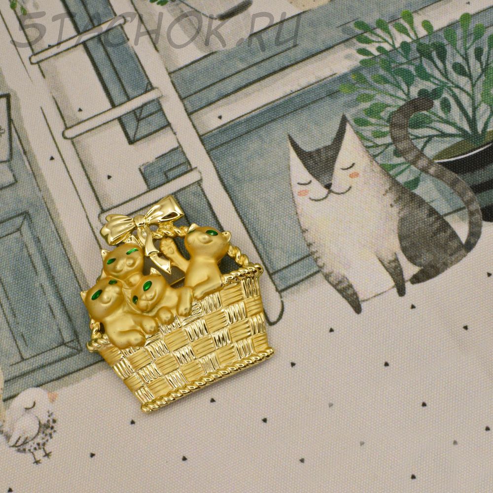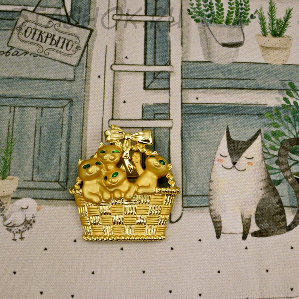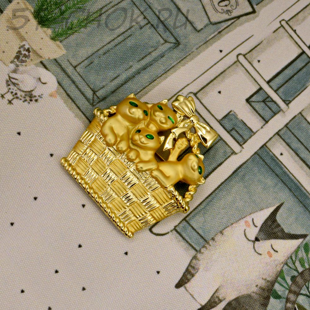 Брошь "Милые котята в корзинке" цвет золота (AJC США)