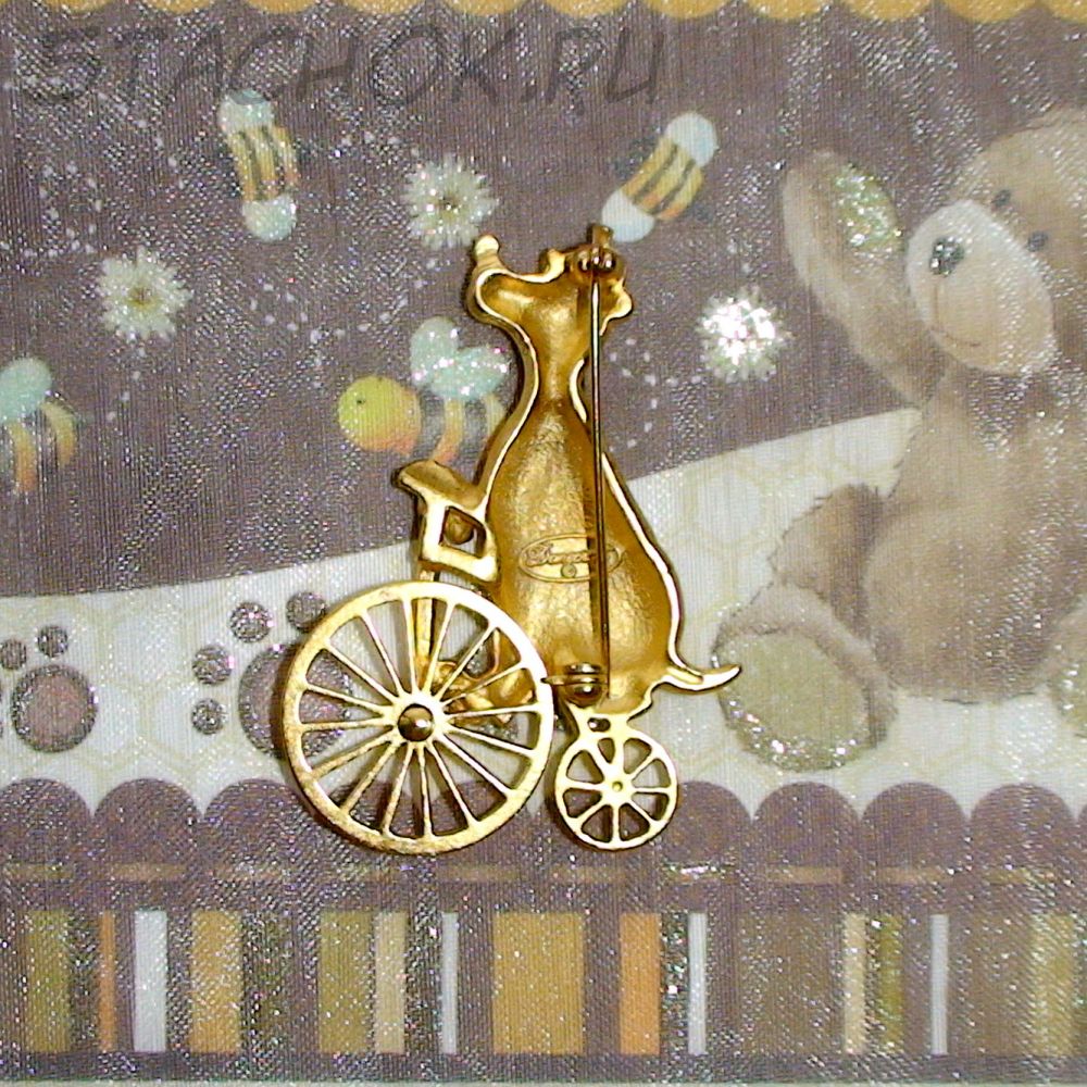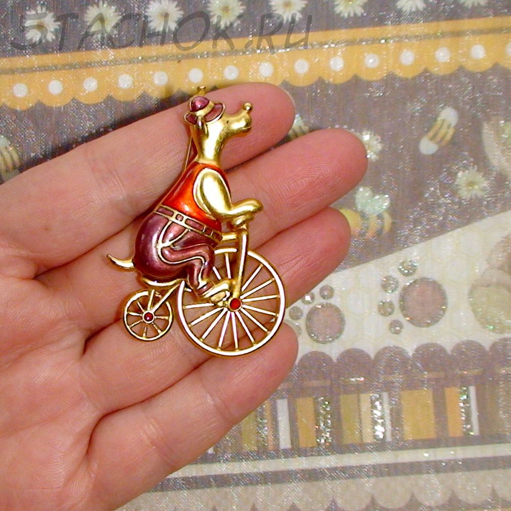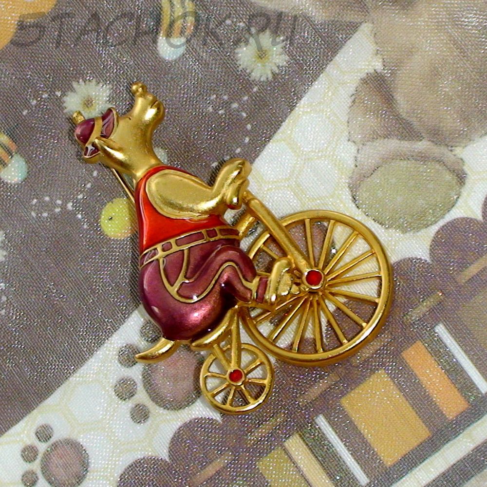 Брошь "Мишка-велосипедист" под золото/эмаль