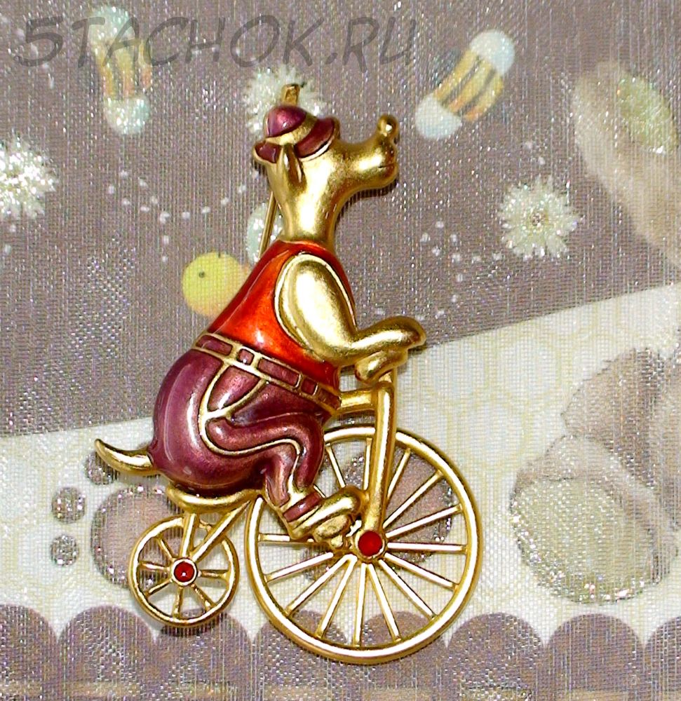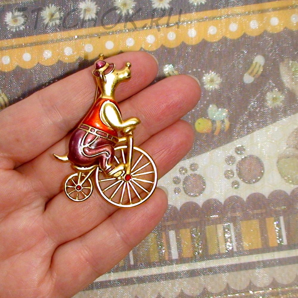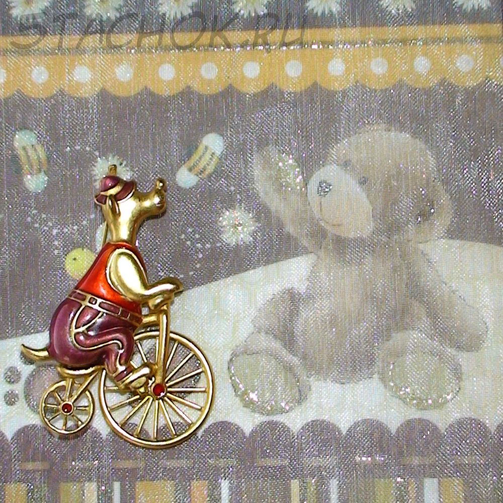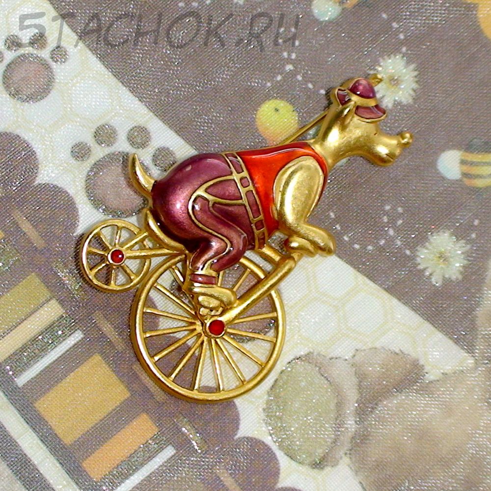 Брошь "Мишка-велосипедист" под золото/эмаль