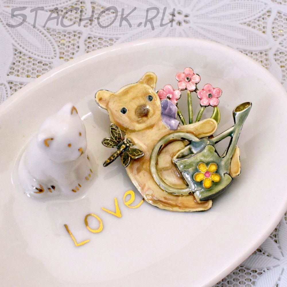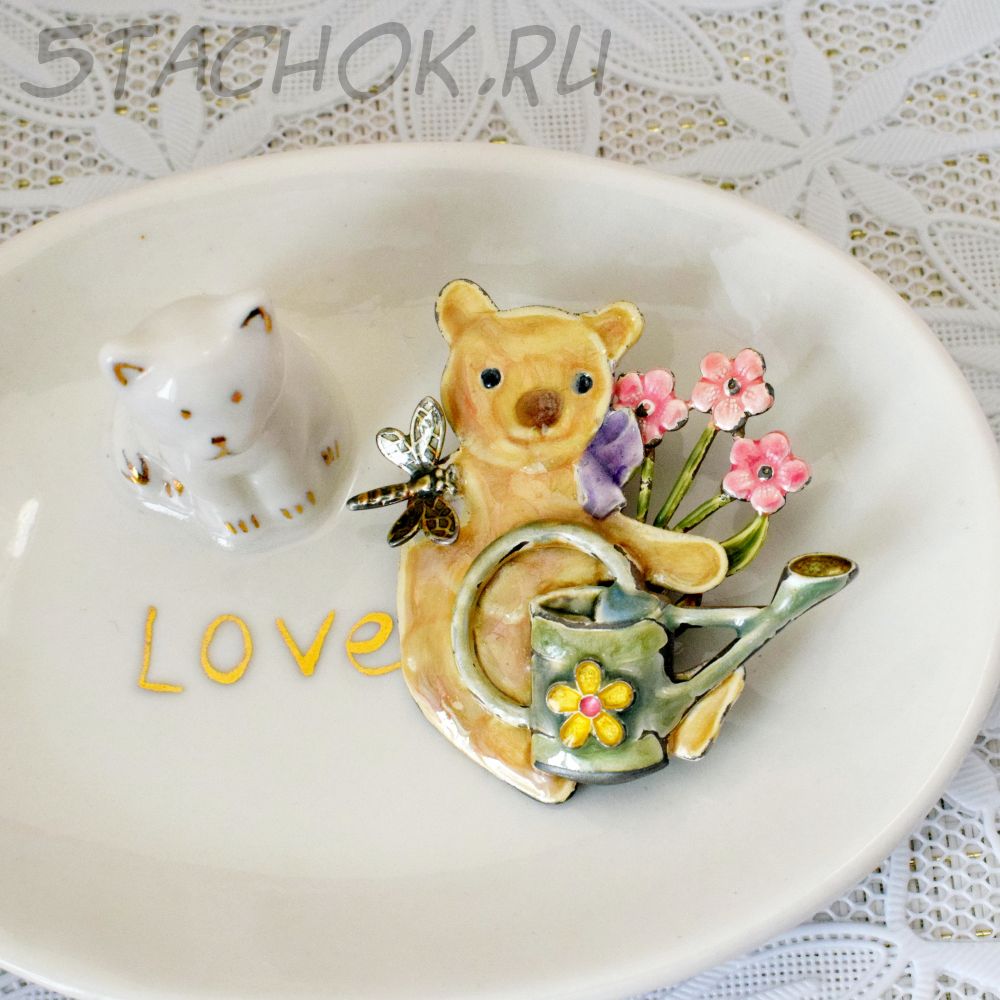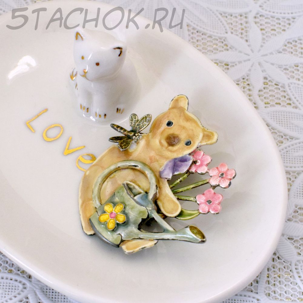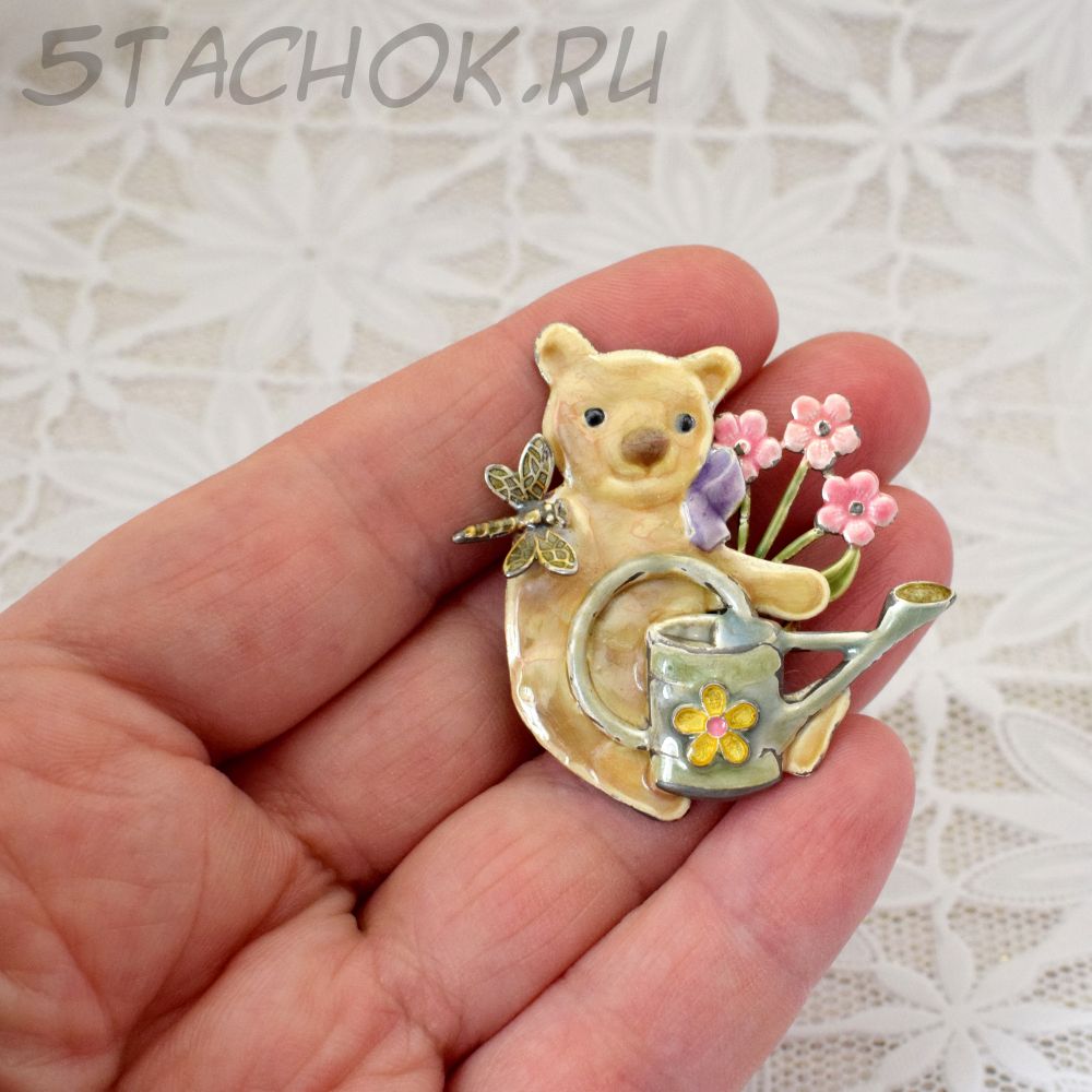 Брошь "Мишутка-цветовод" (США)