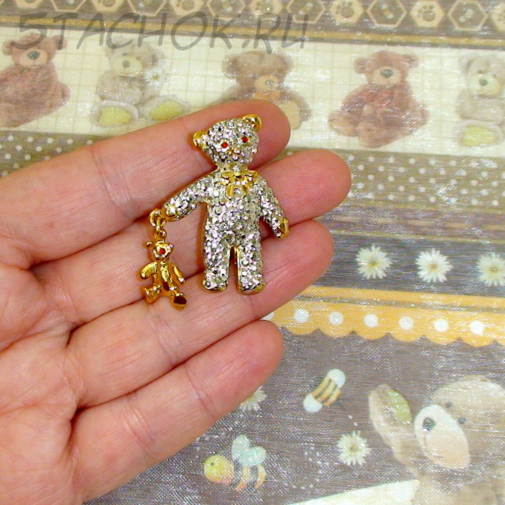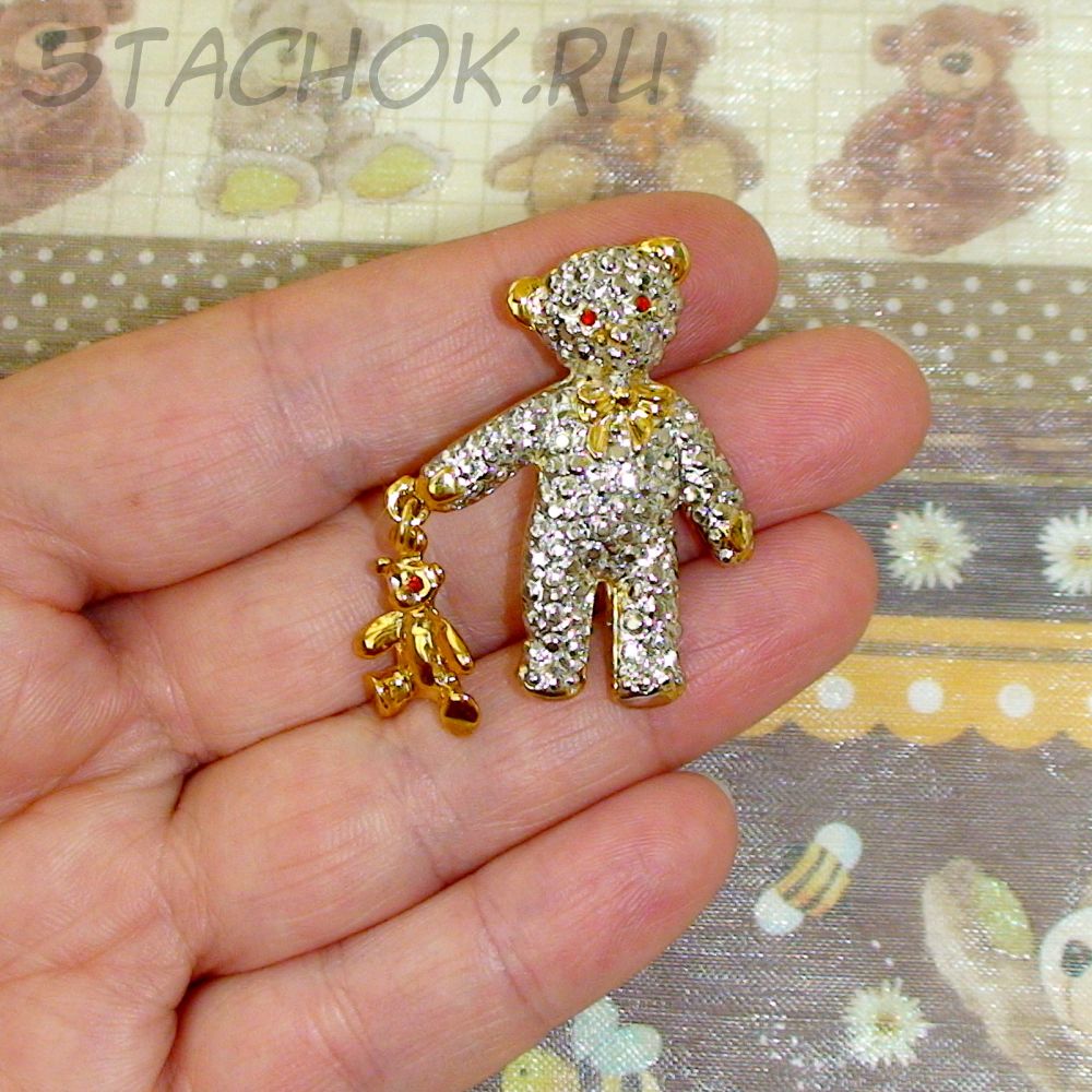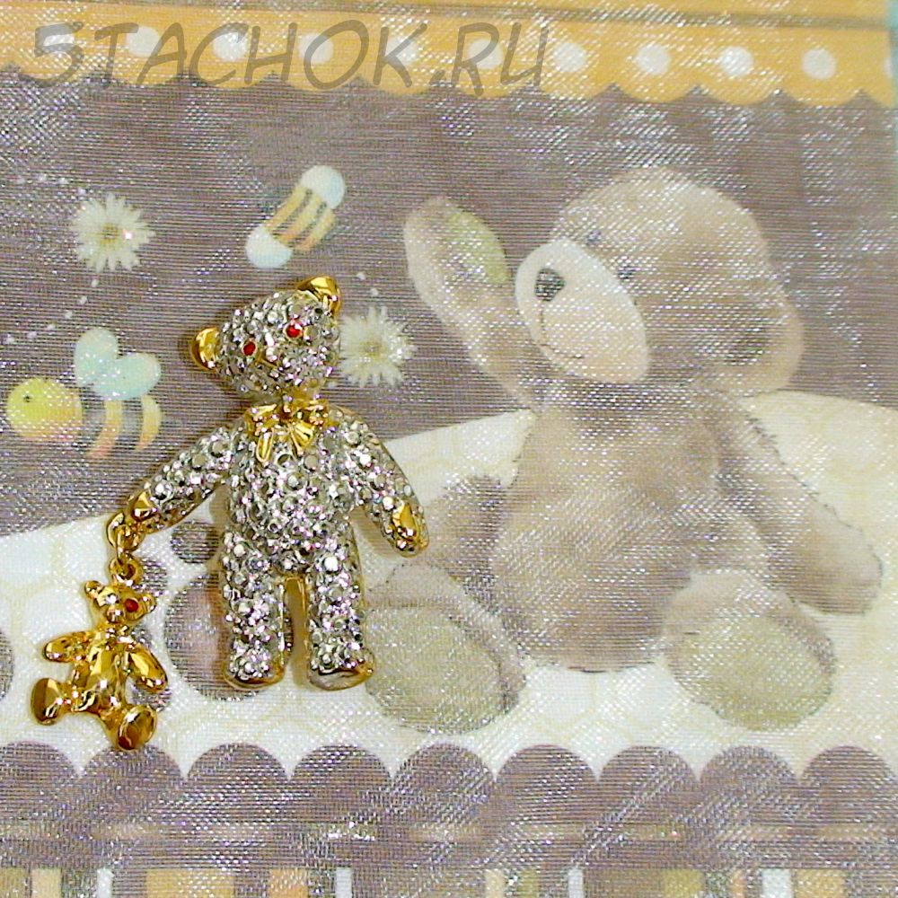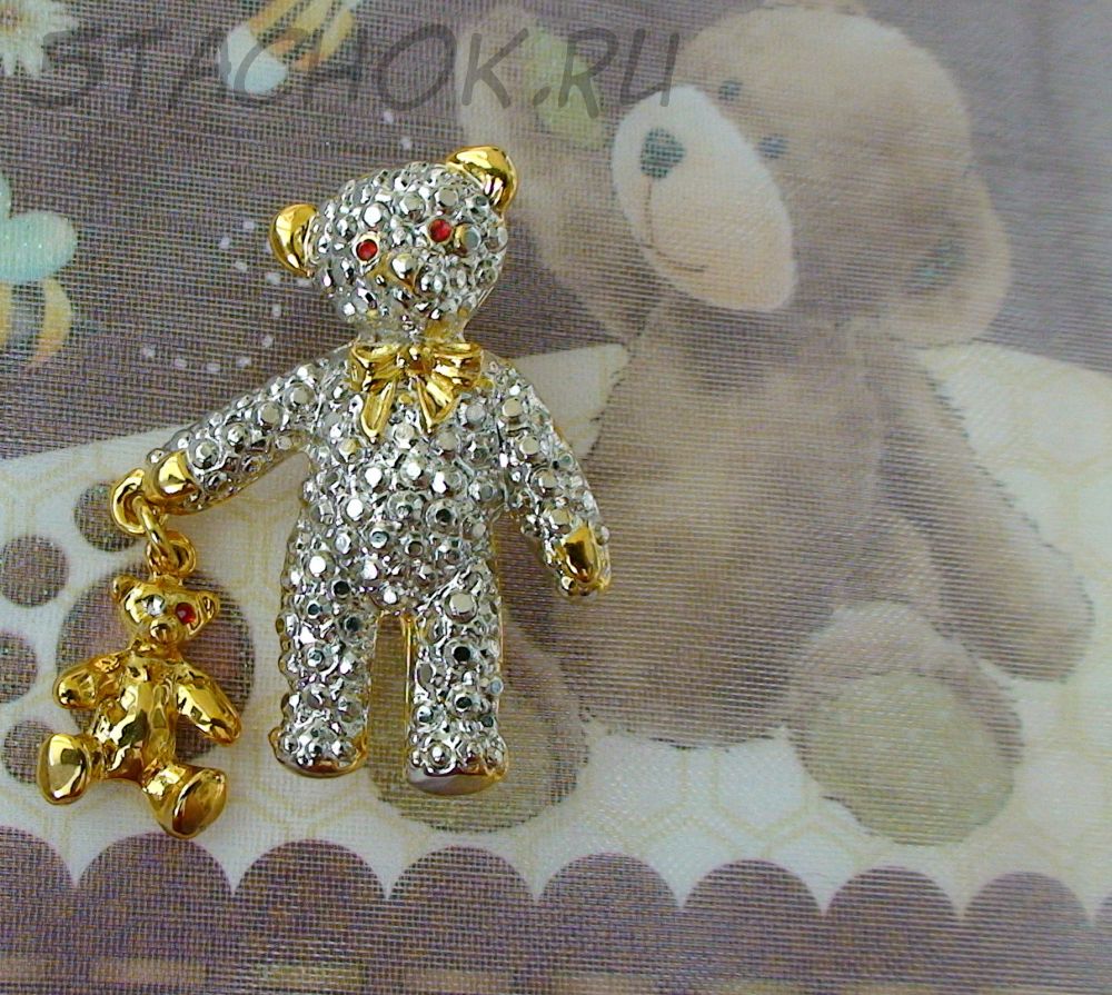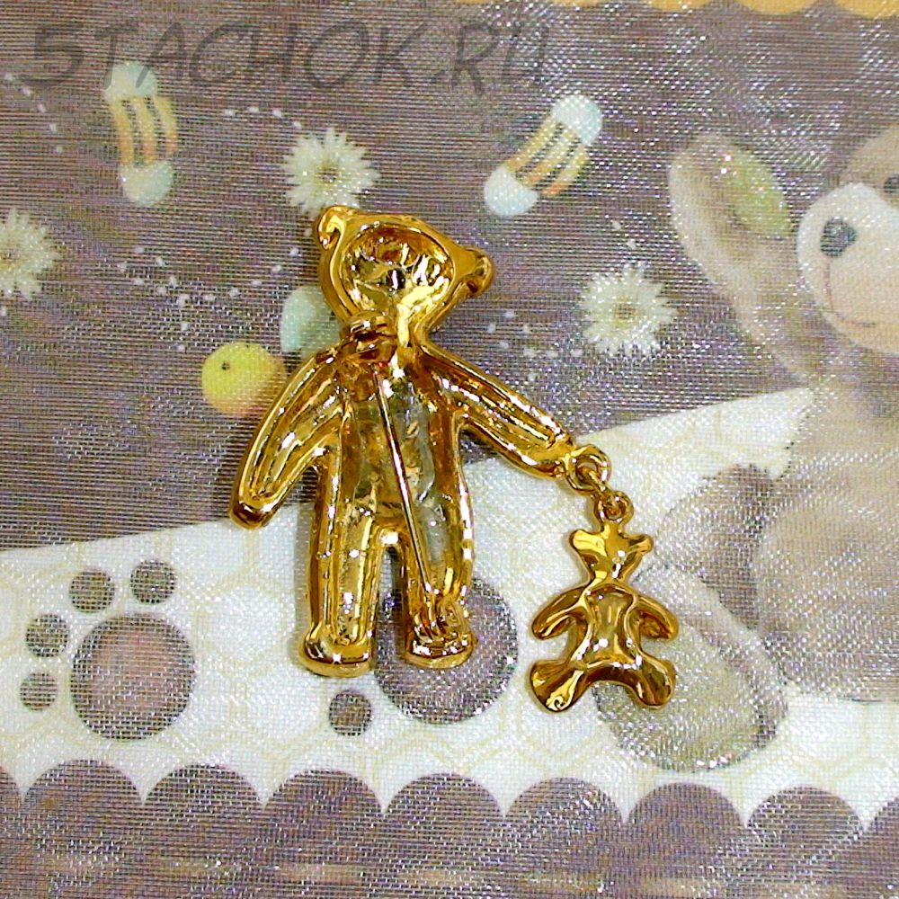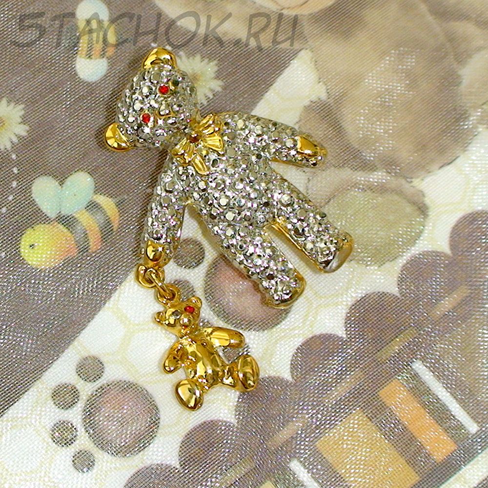 Брошь "Мишутка с игрушкой" под золото, серебро, стразы