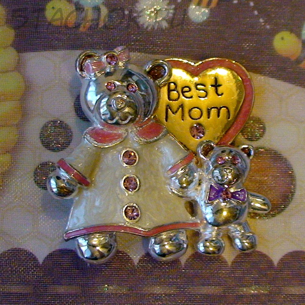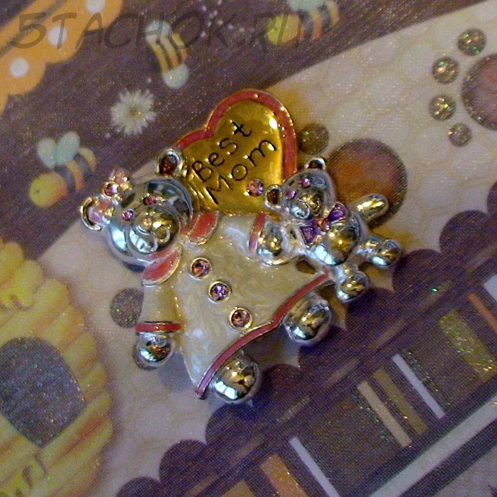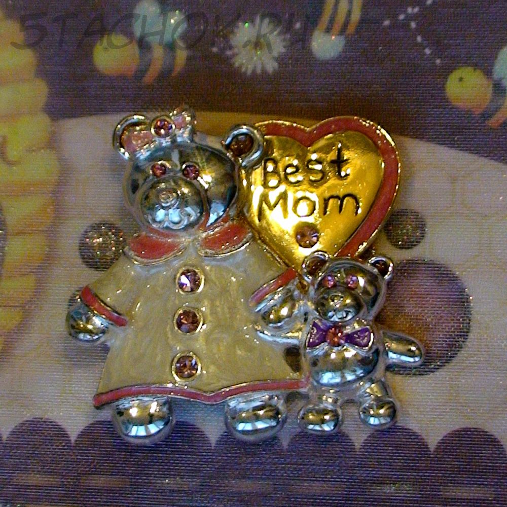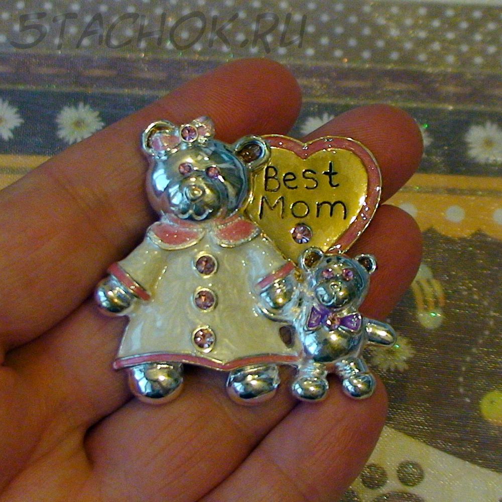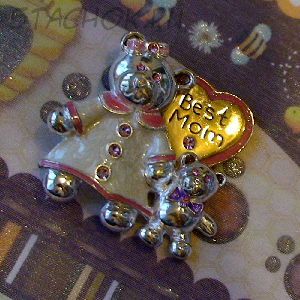Брошь "Мишуткина лучшая мамочка" под серебро, эмаль, стразы