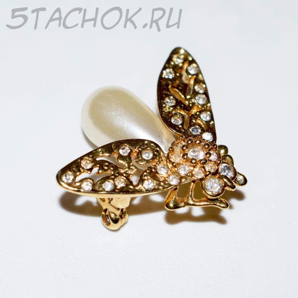Нежная, оригинальная брошь. Выполнена в цвете блестящего золота с использованием камушка под искусственный жемчуг и австрийских кристаллов. Мушка ярко переливается при любом освещении. Размер броши 3,3*3,5см Винтаж 1980-е гг Брошь в безупречном состоянии. Изделие ранее не использовалось. Производство США Немаркирована