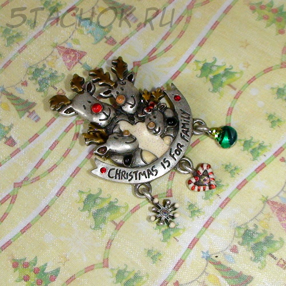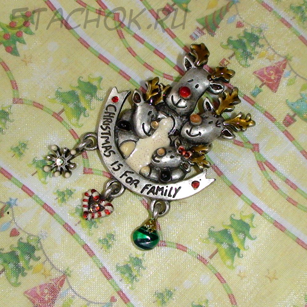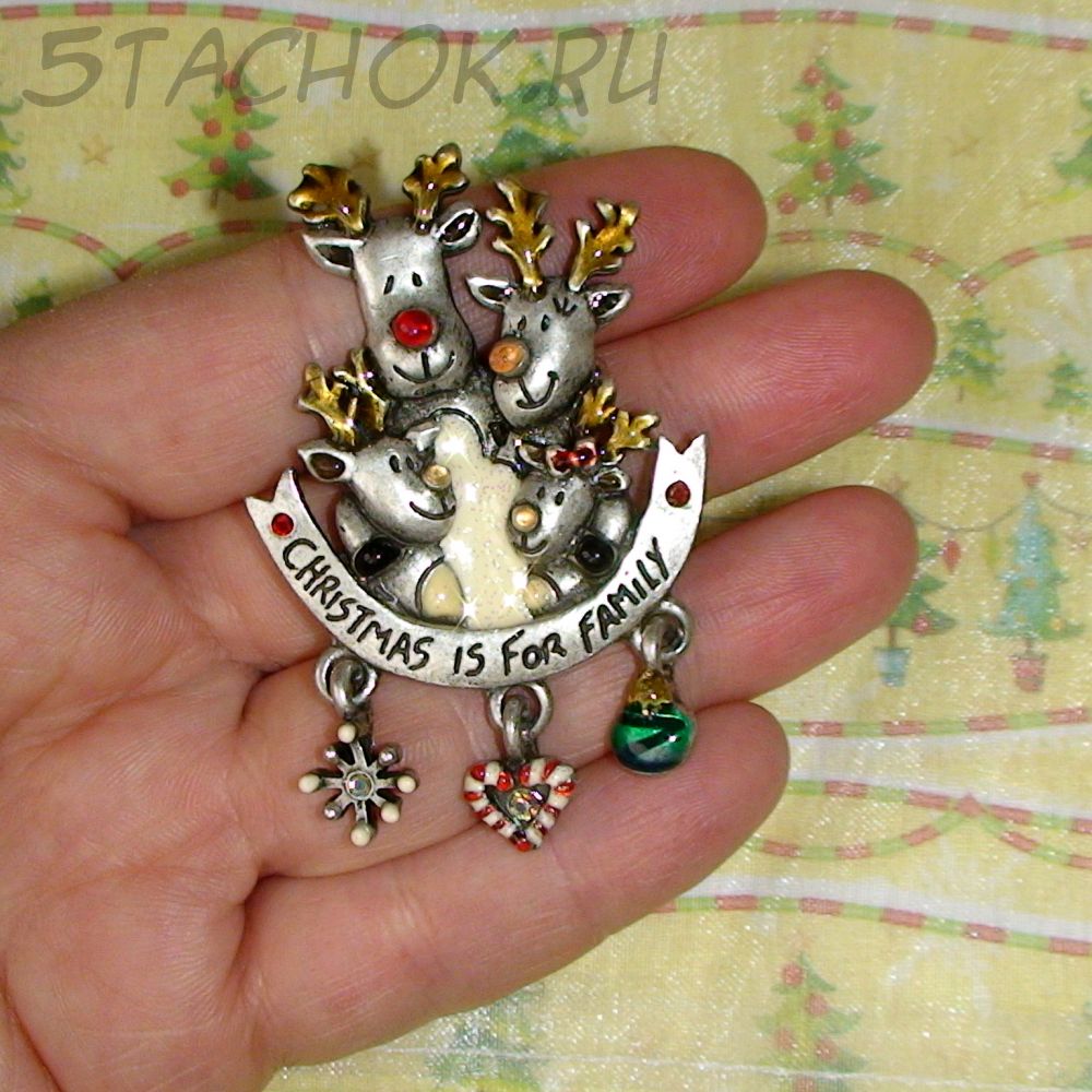 Брошь "Новогоднее семейство лосиков" под олово, эмаль