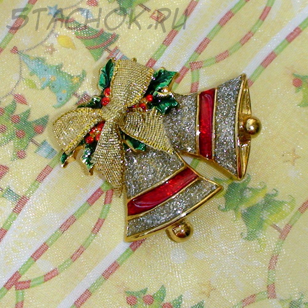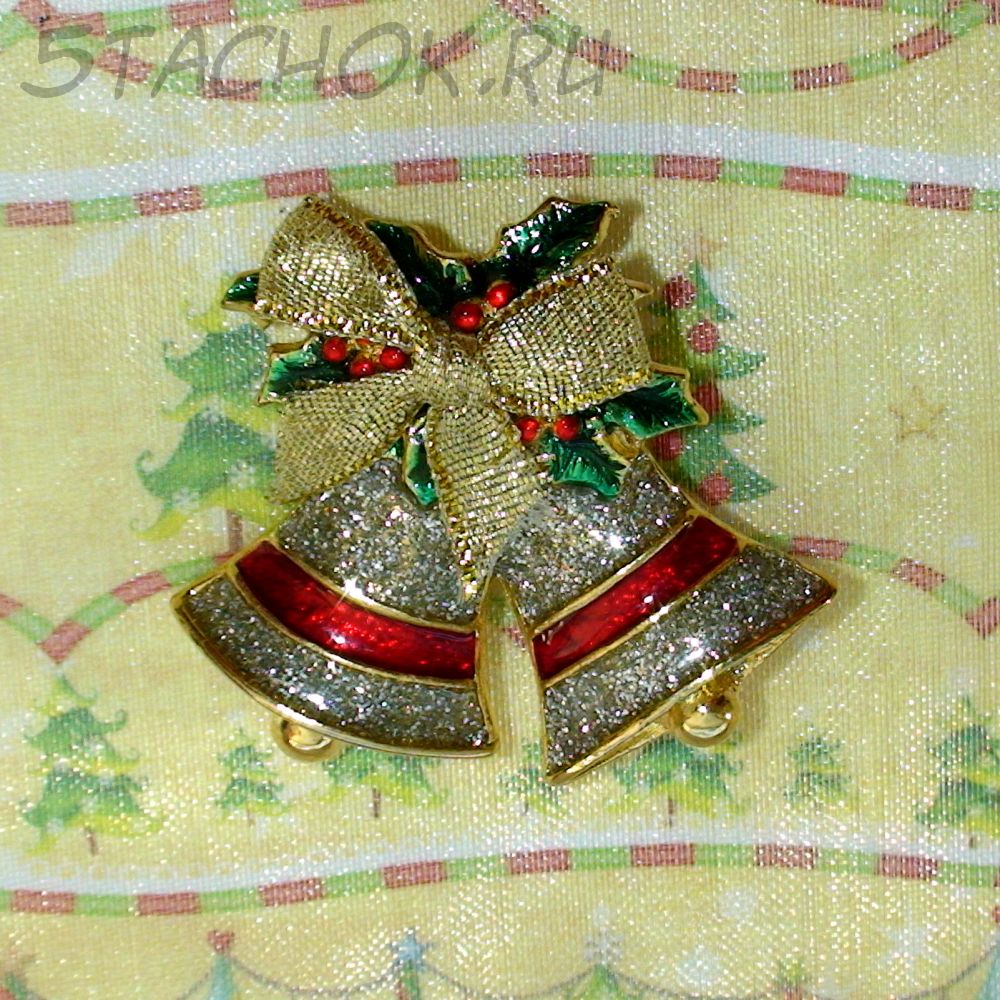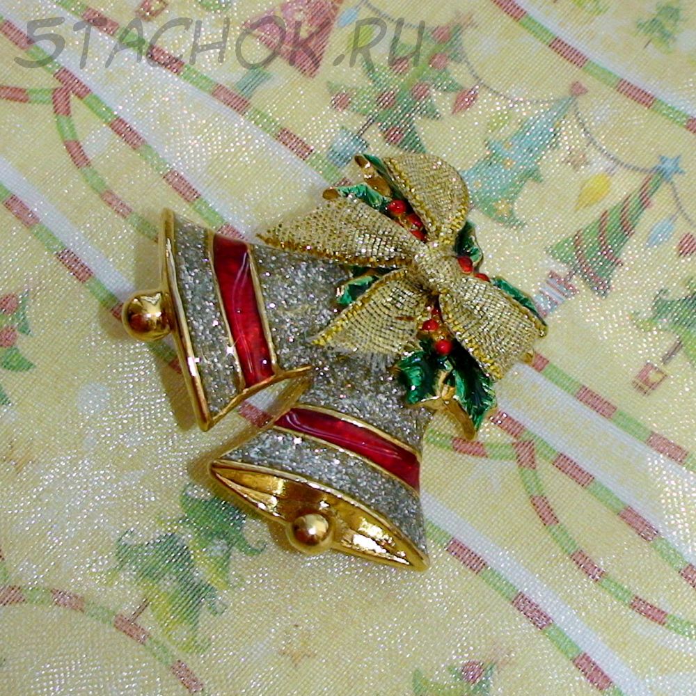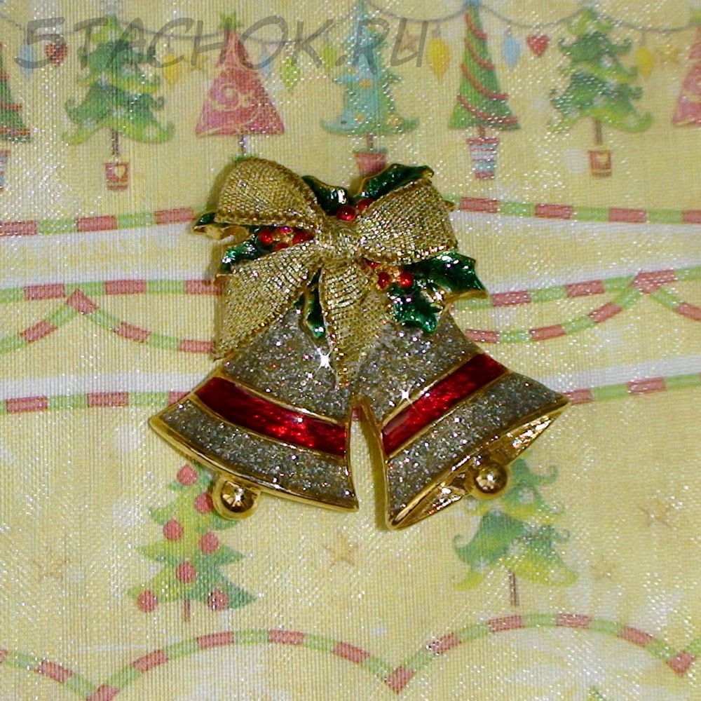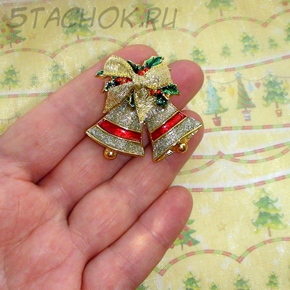 Брошь "Новогодние бубенчики" под золото/эмаль/блестки/текстиль