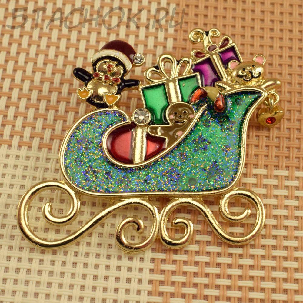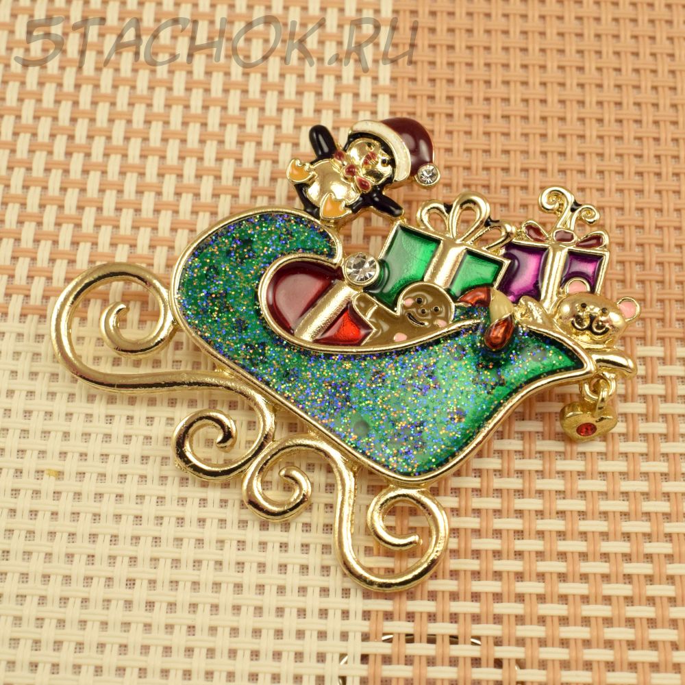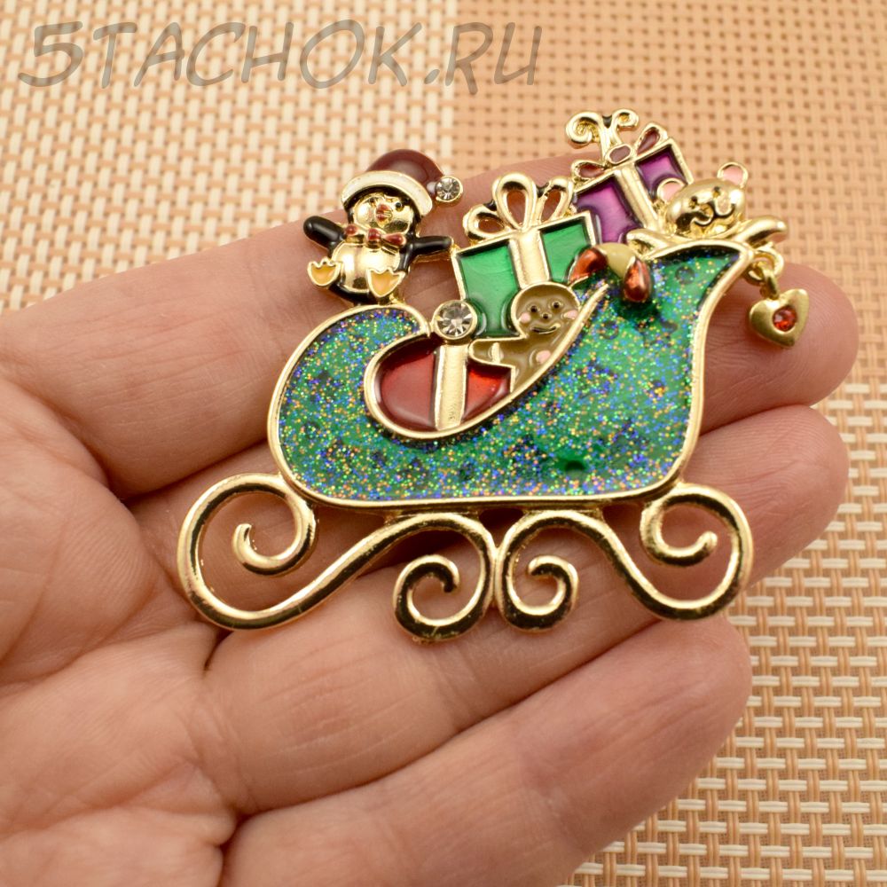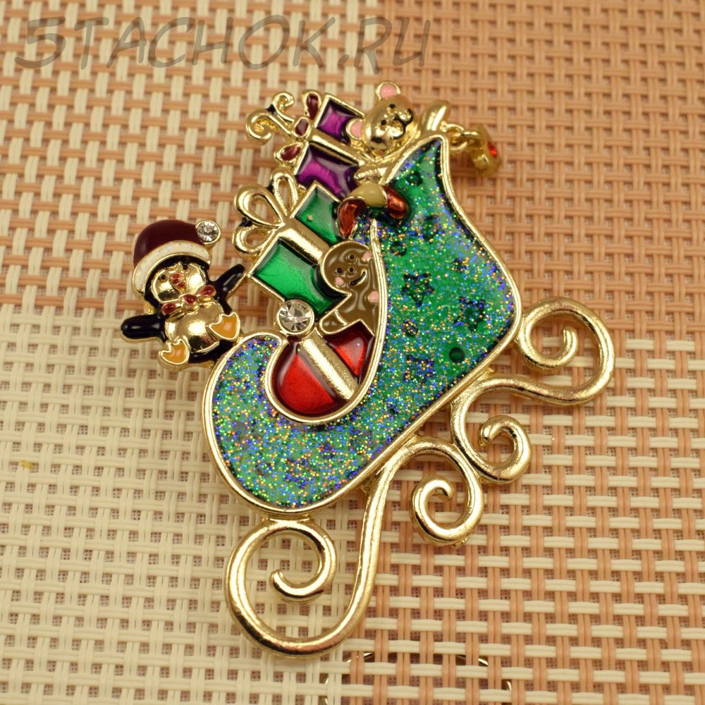 Брошь "Новогодние саночки с игрушками" (KC США)