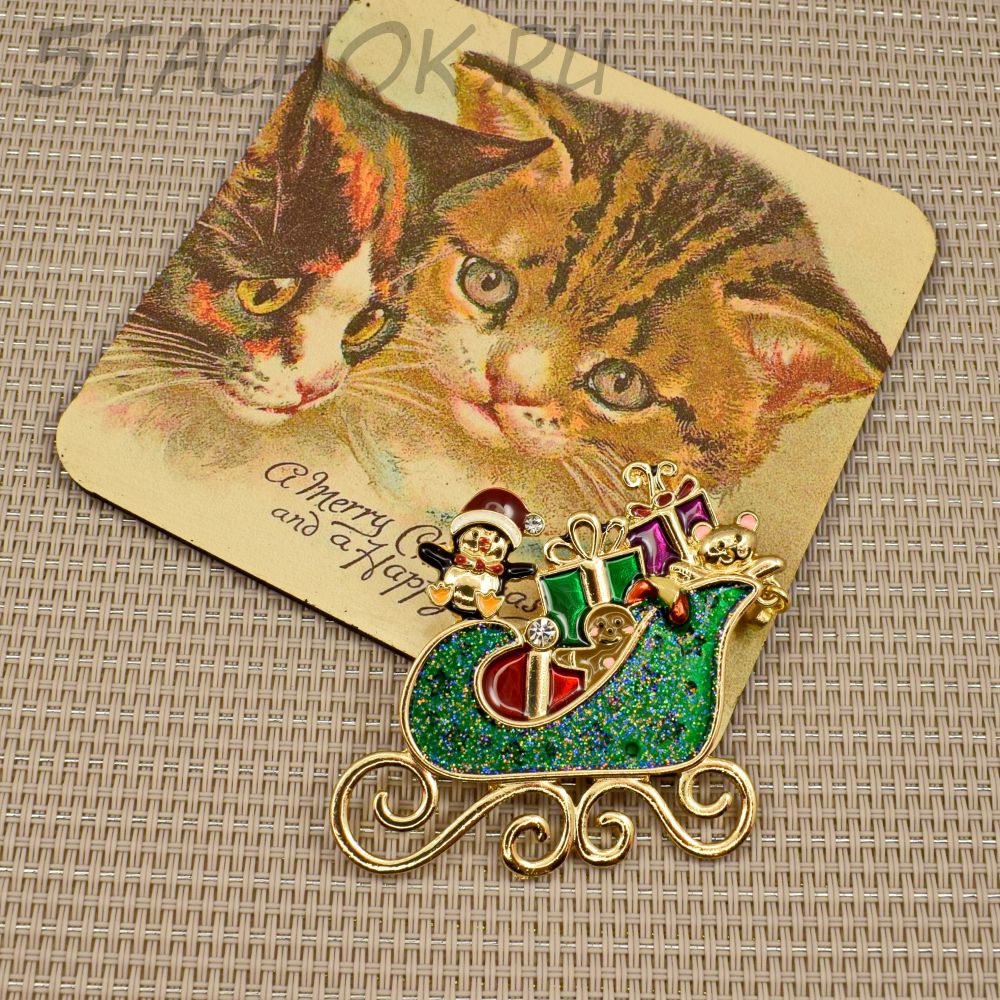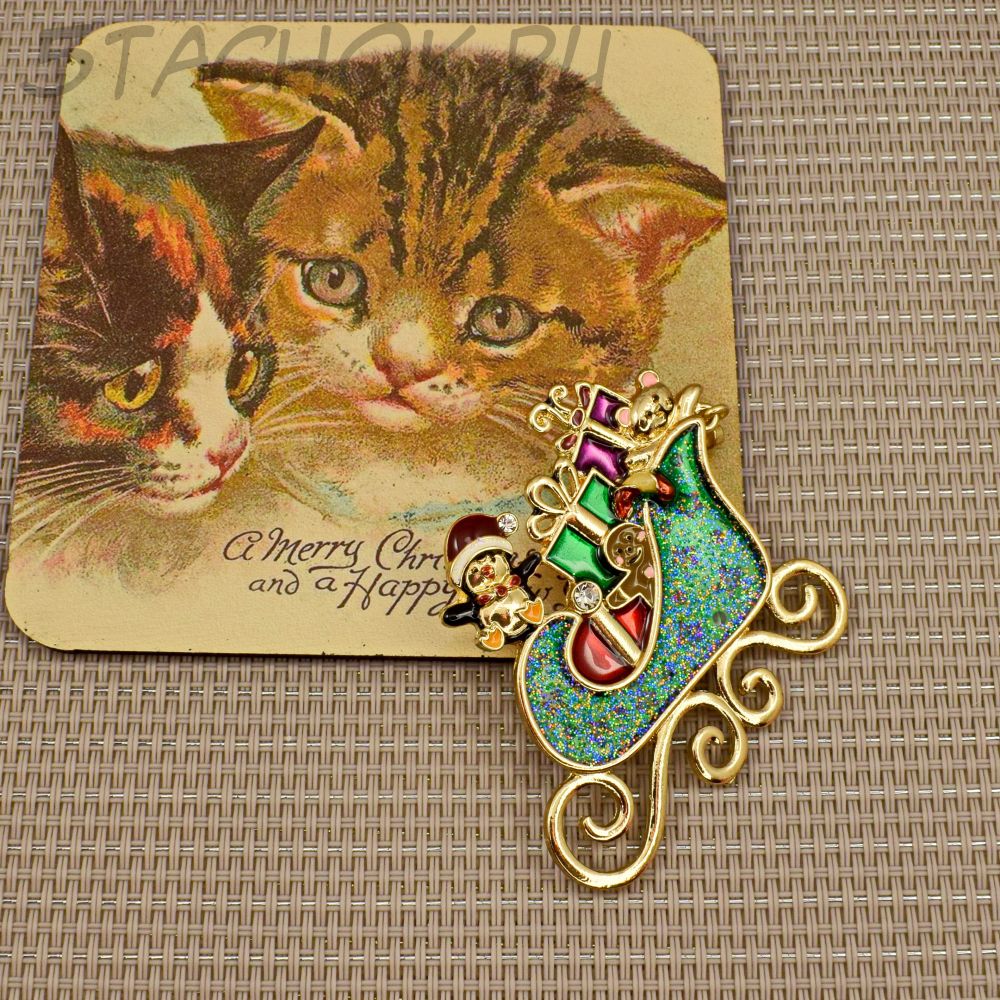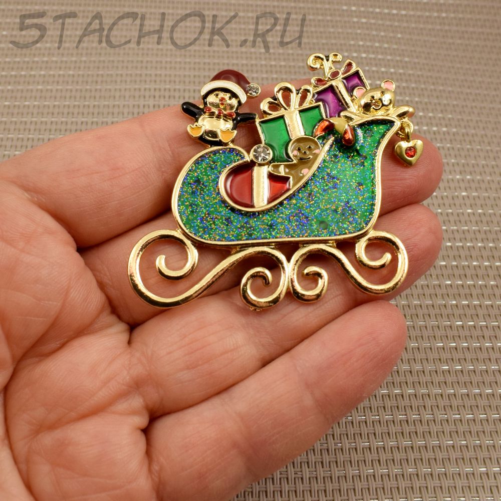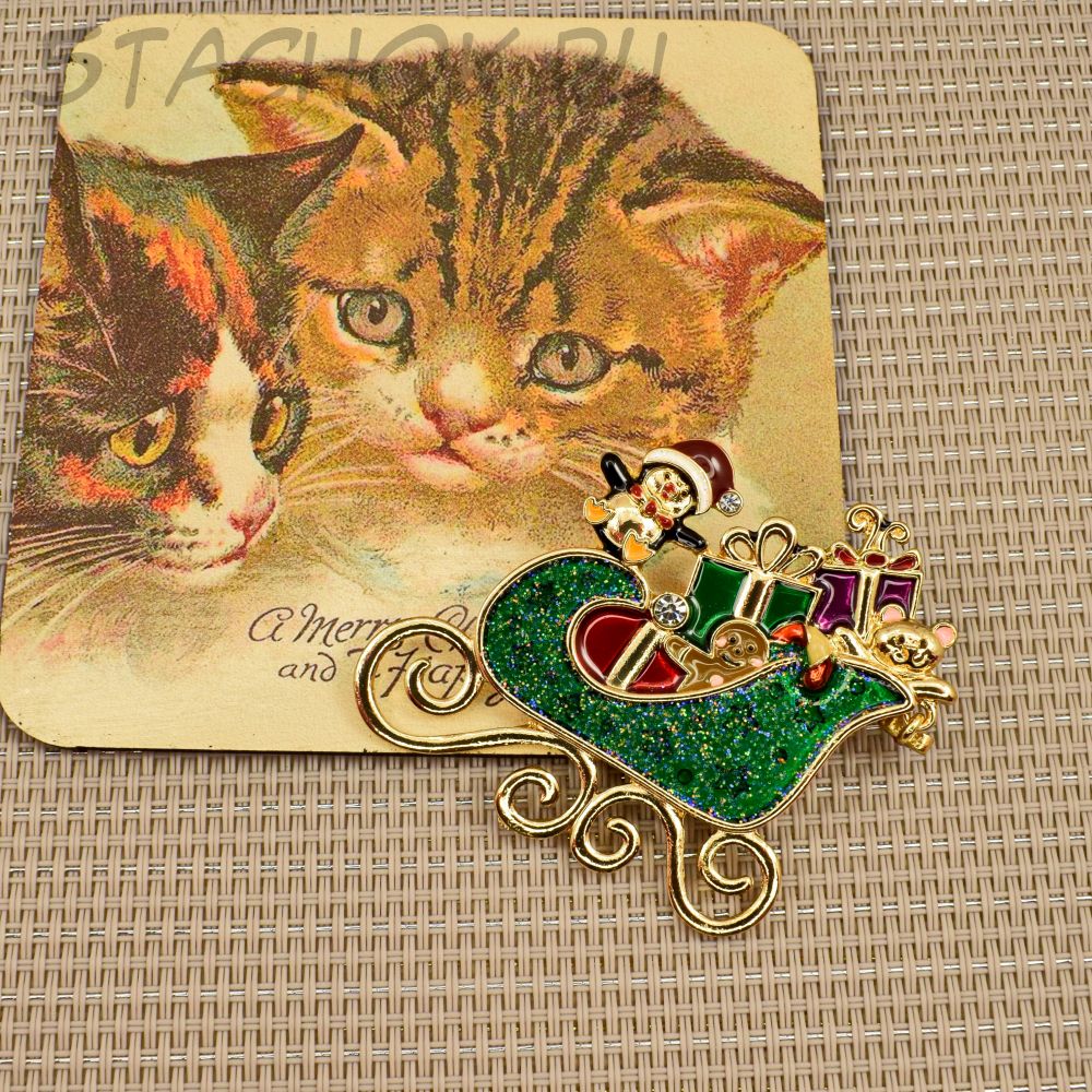 Брошь "Новогодние саночки с игрушками" (KC США)