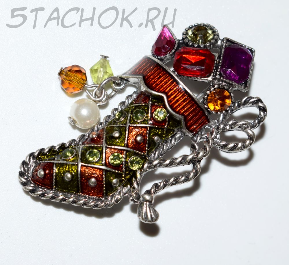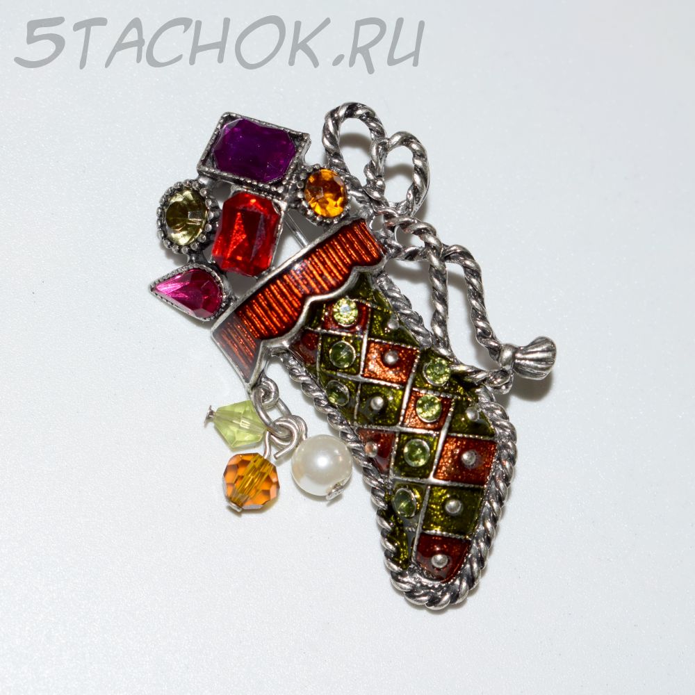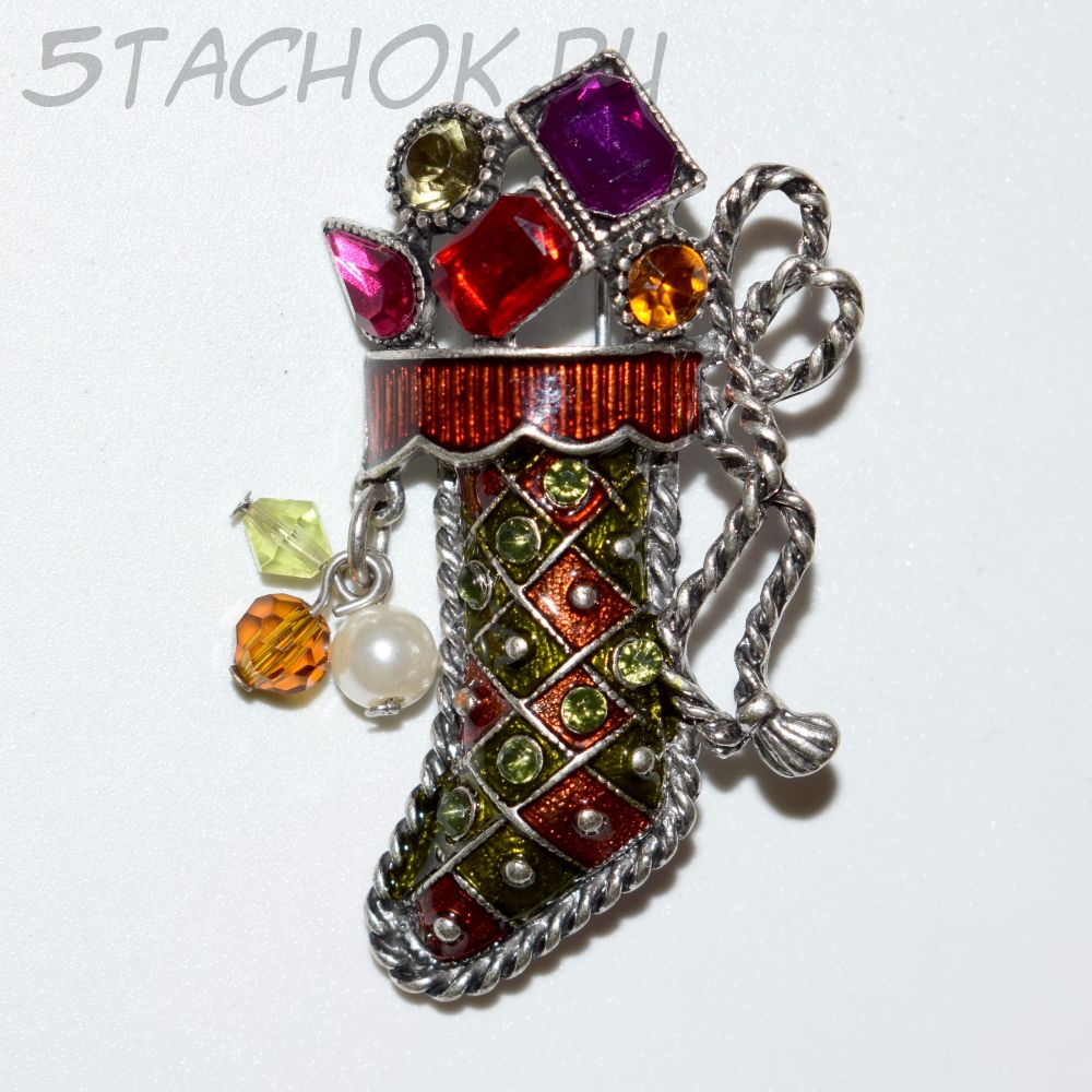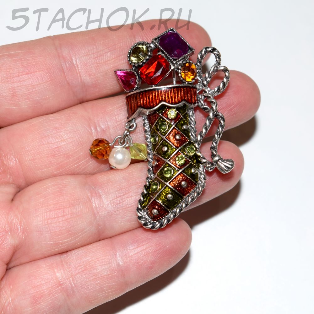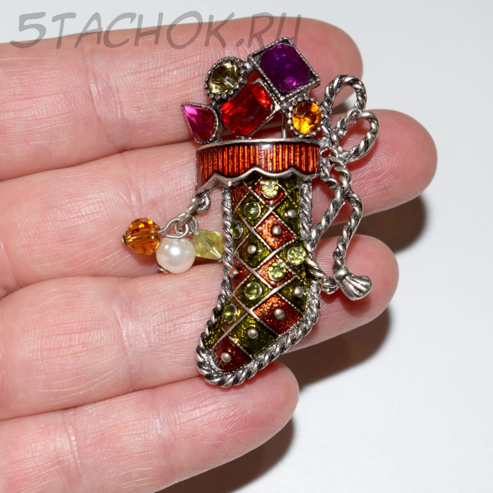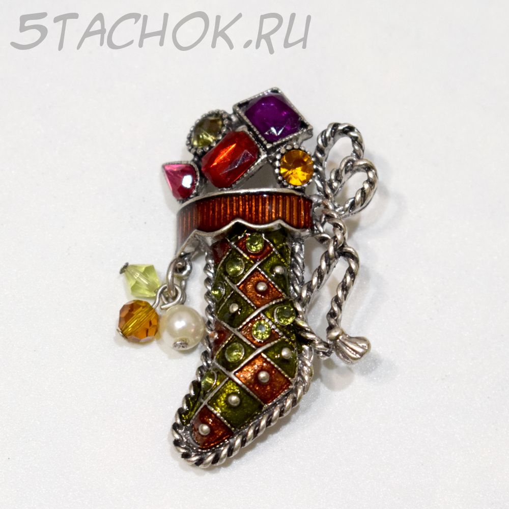 Брошь "Новогодний сапожок с подарками" (KC США)