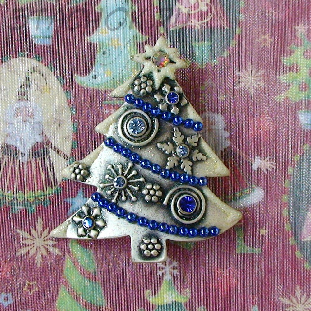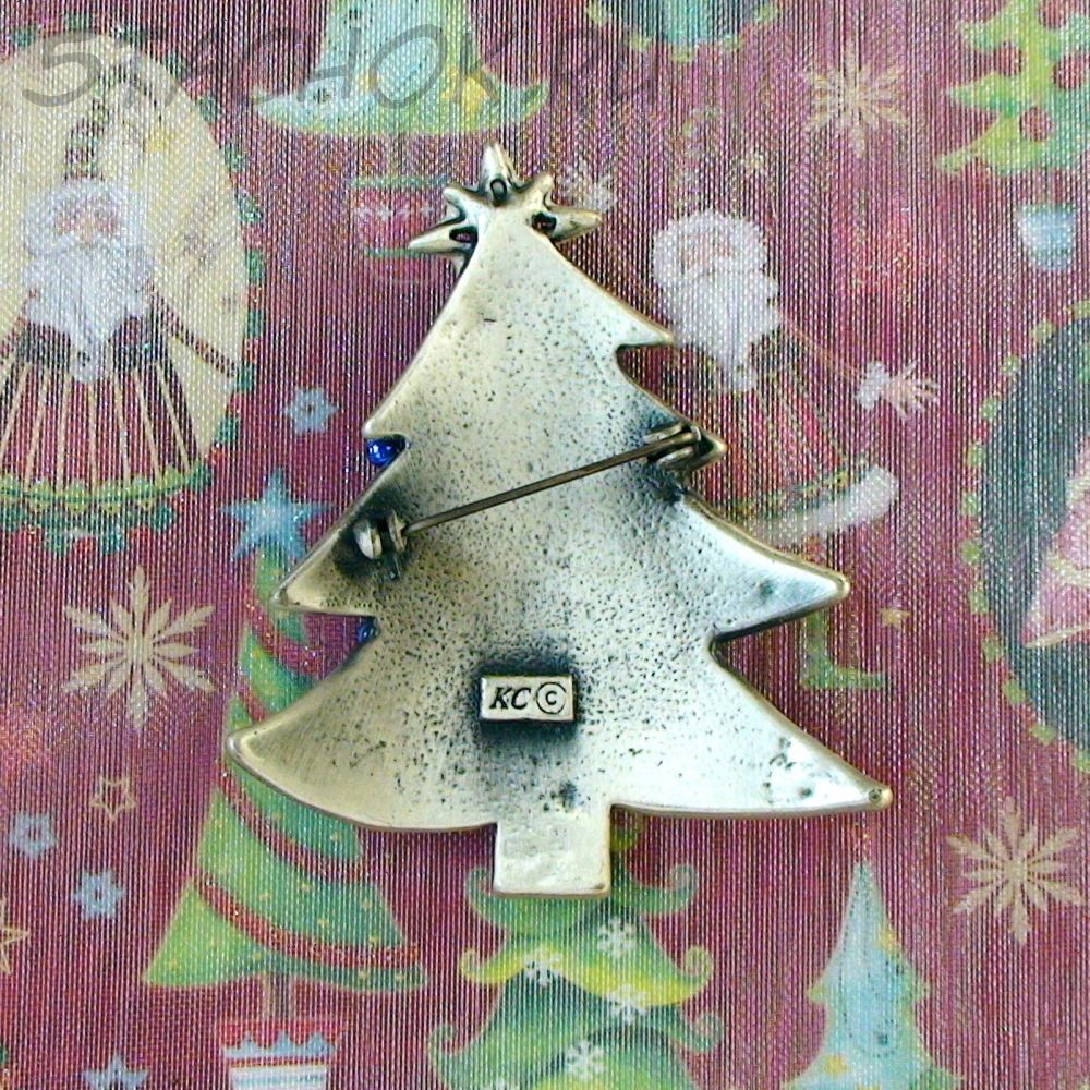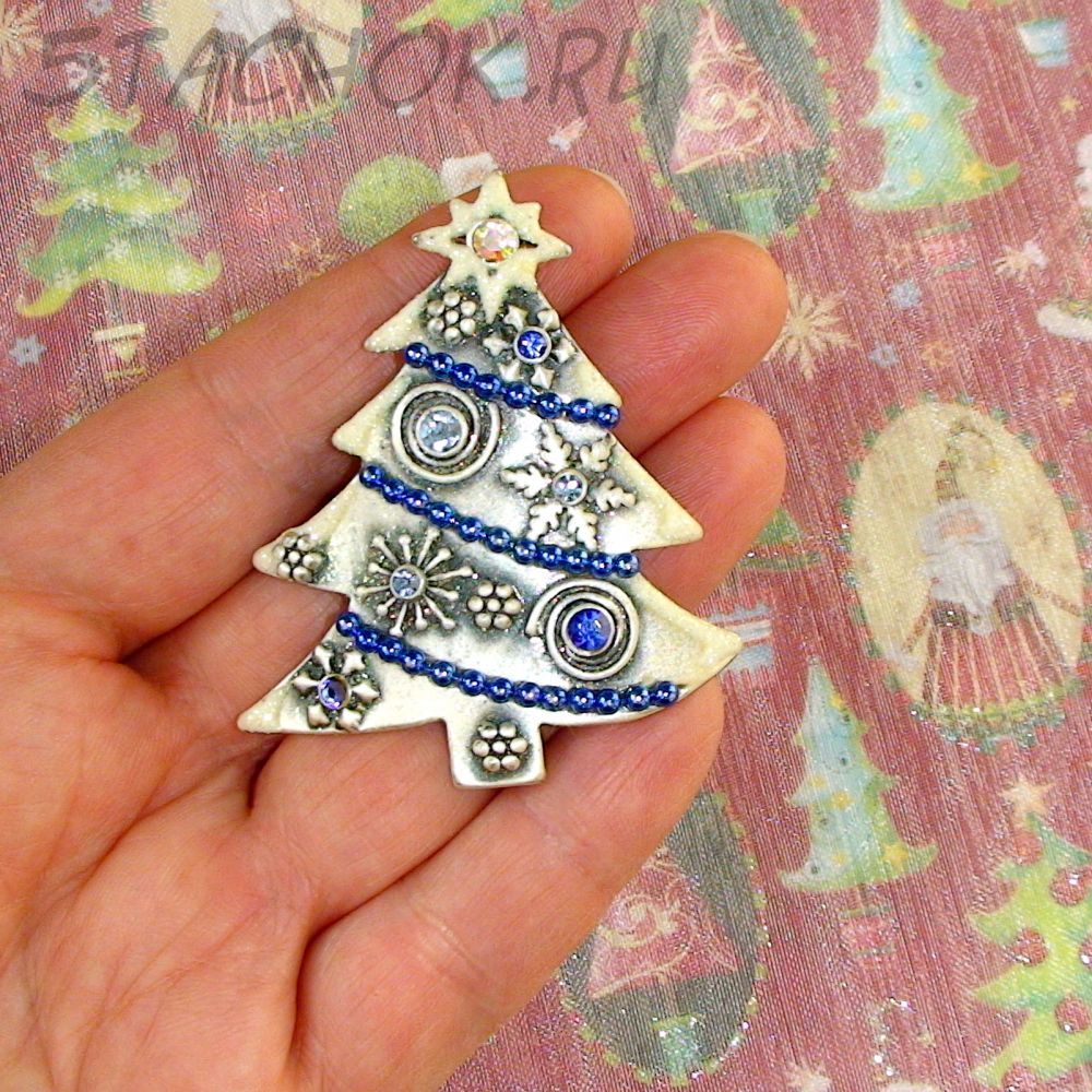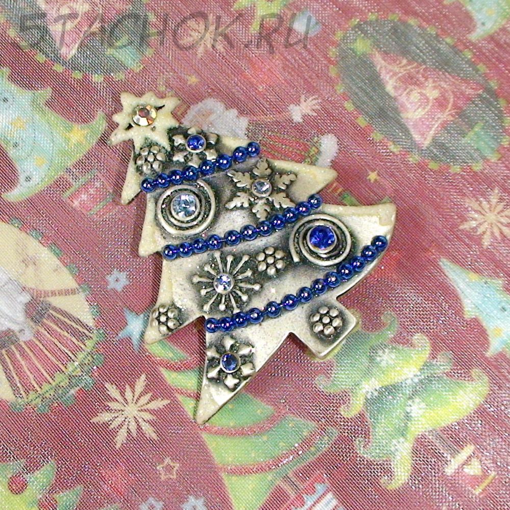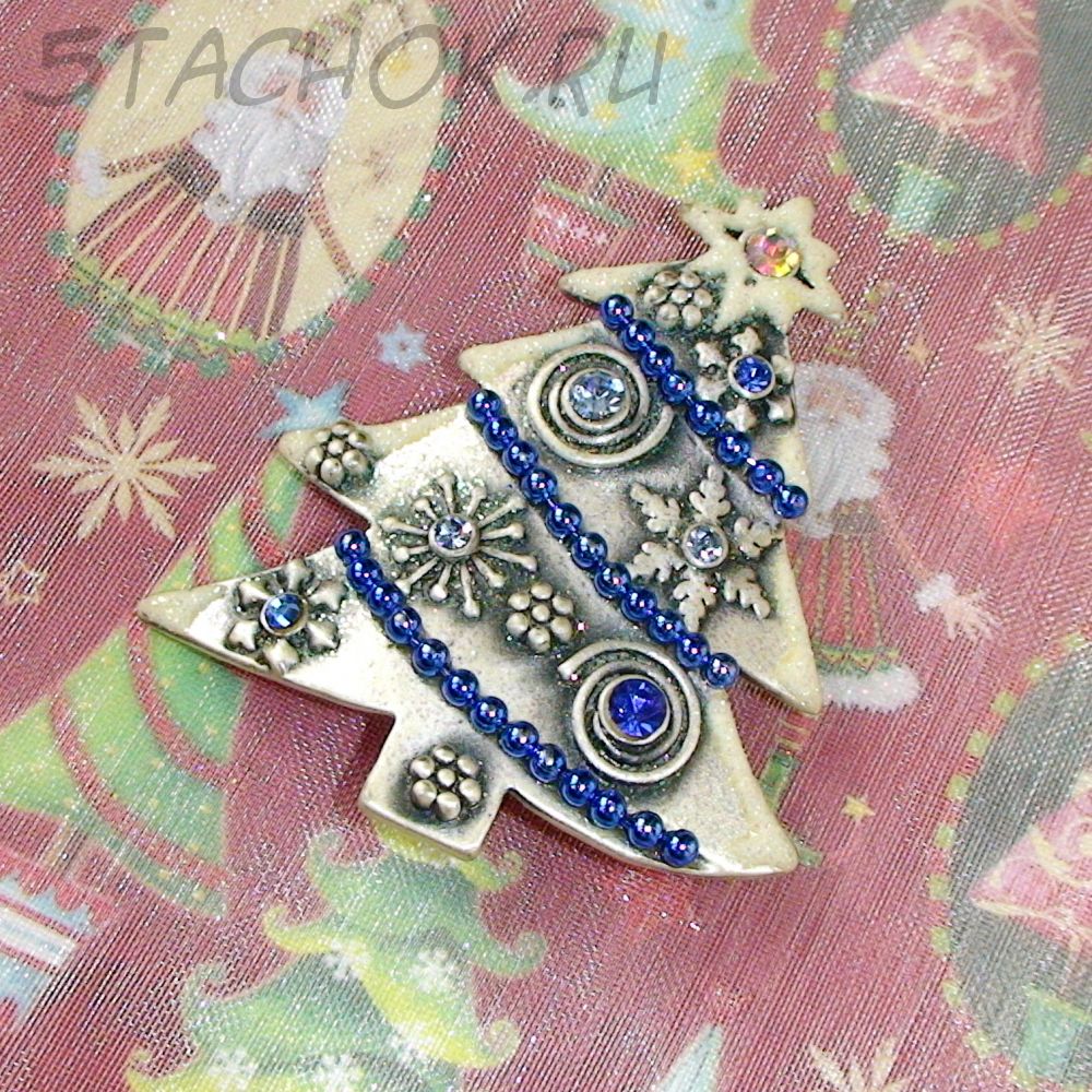 Брошь "Новогодняя елочка" под олово, блестки, эмаль, стразы