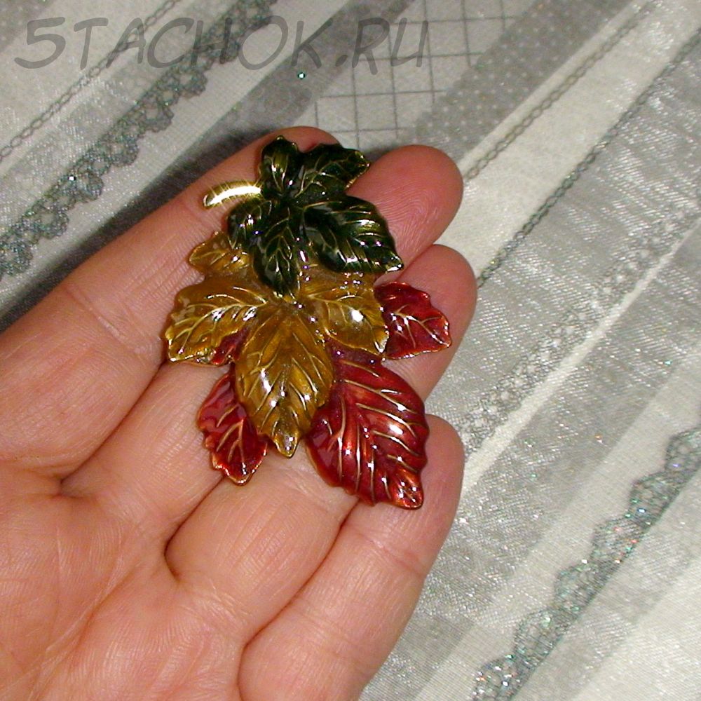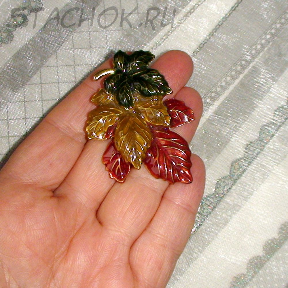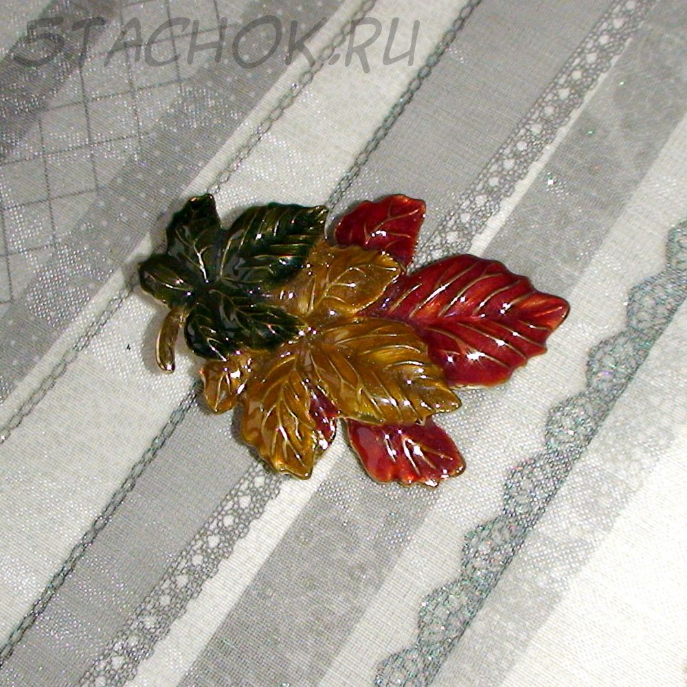 Брошь "Осенние кленовые листья" под золото, эмаль