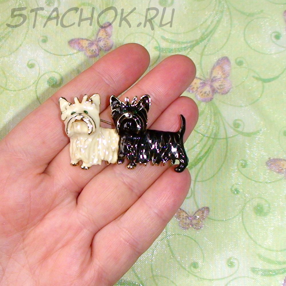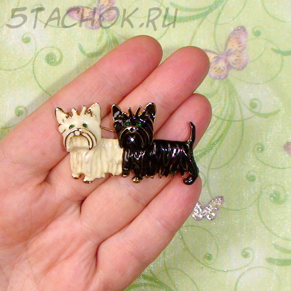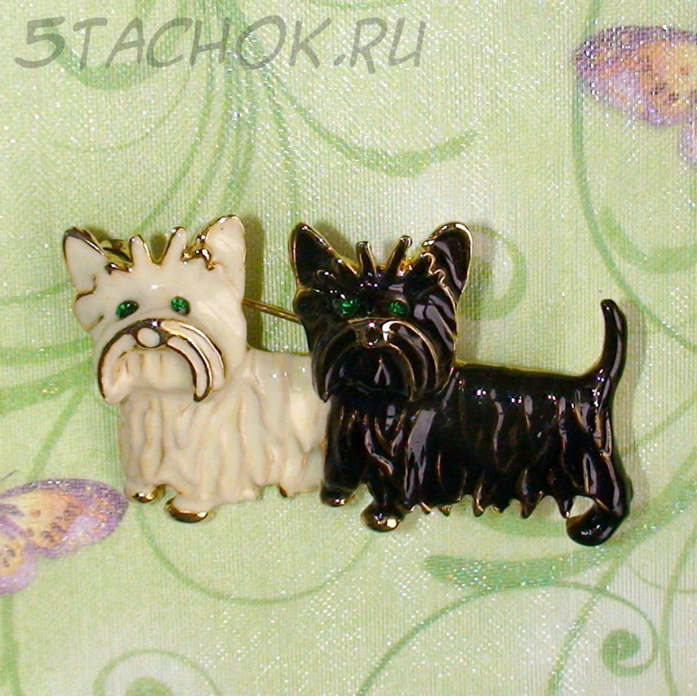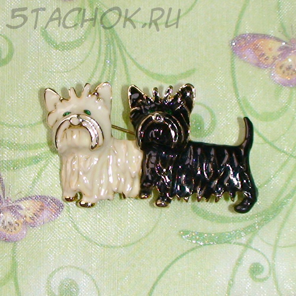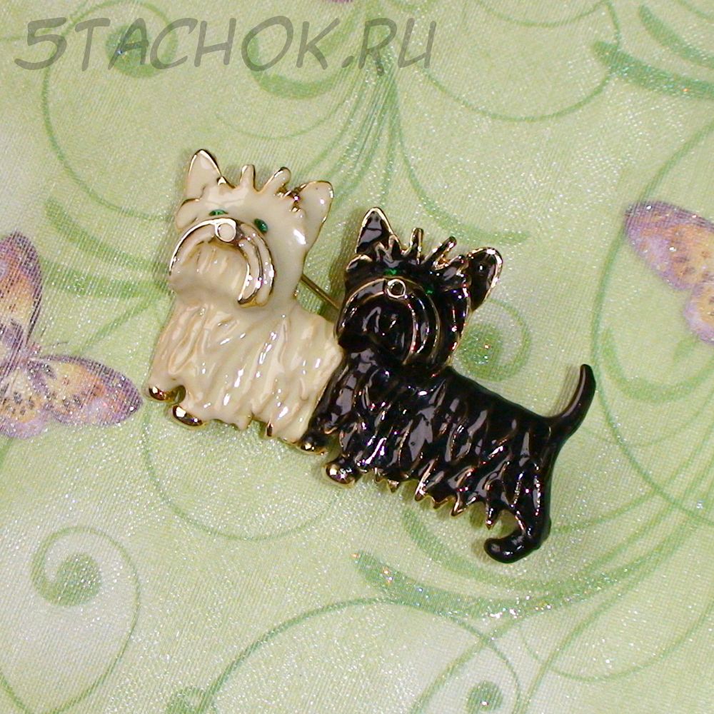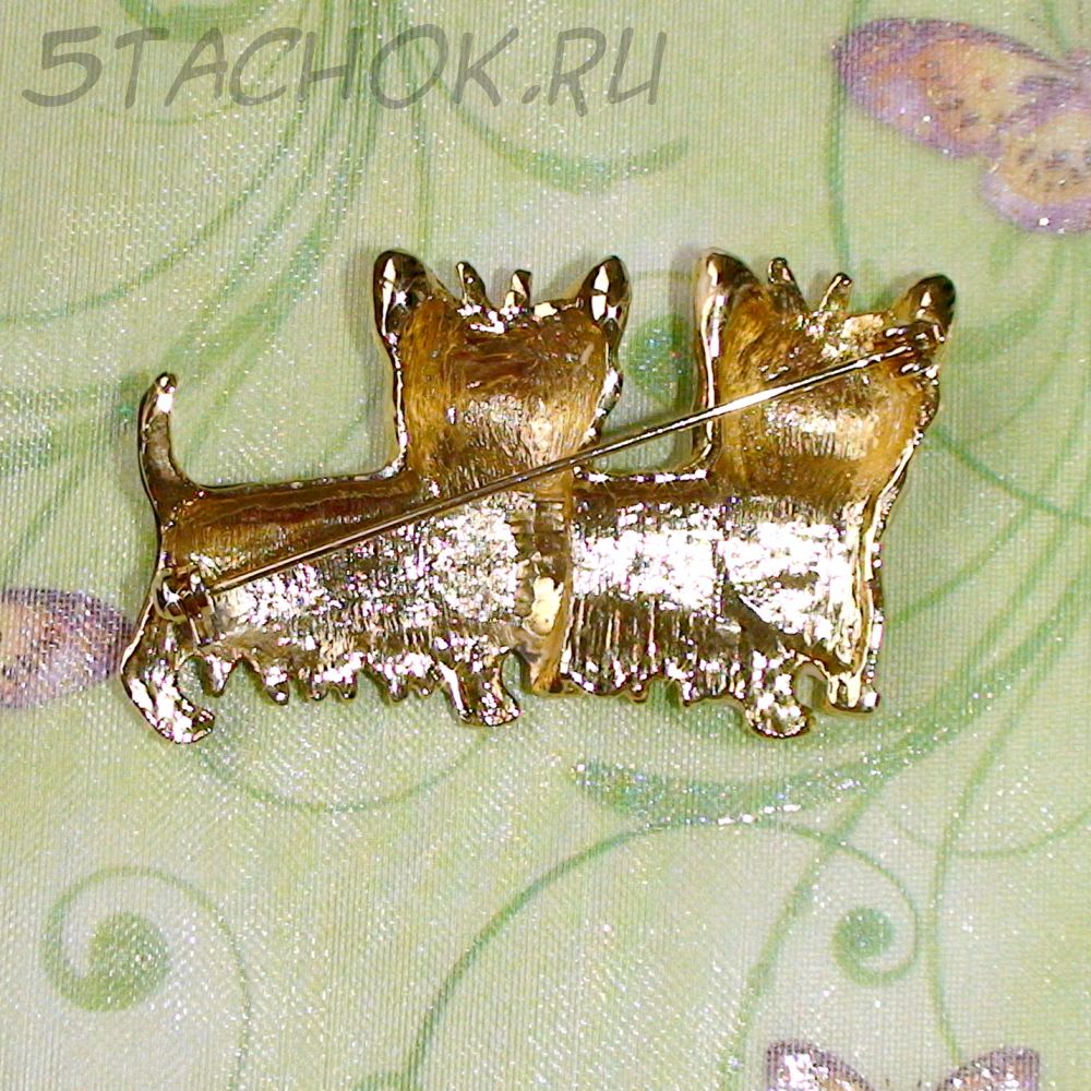 Брошь "Пара терьерчиков" под золото, эмаль, стразы