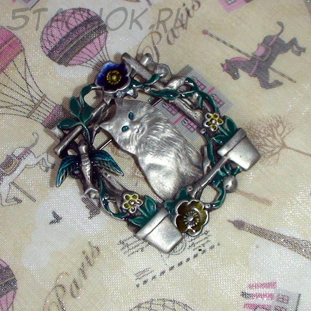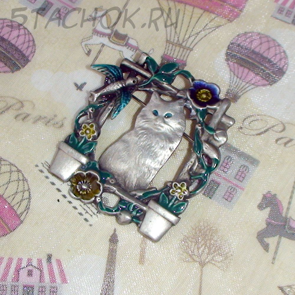 Брошь "Котик-милашка" под олово, эмаль