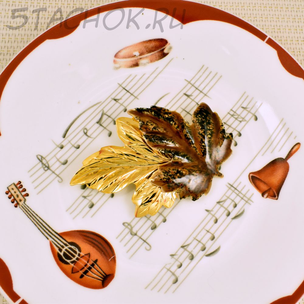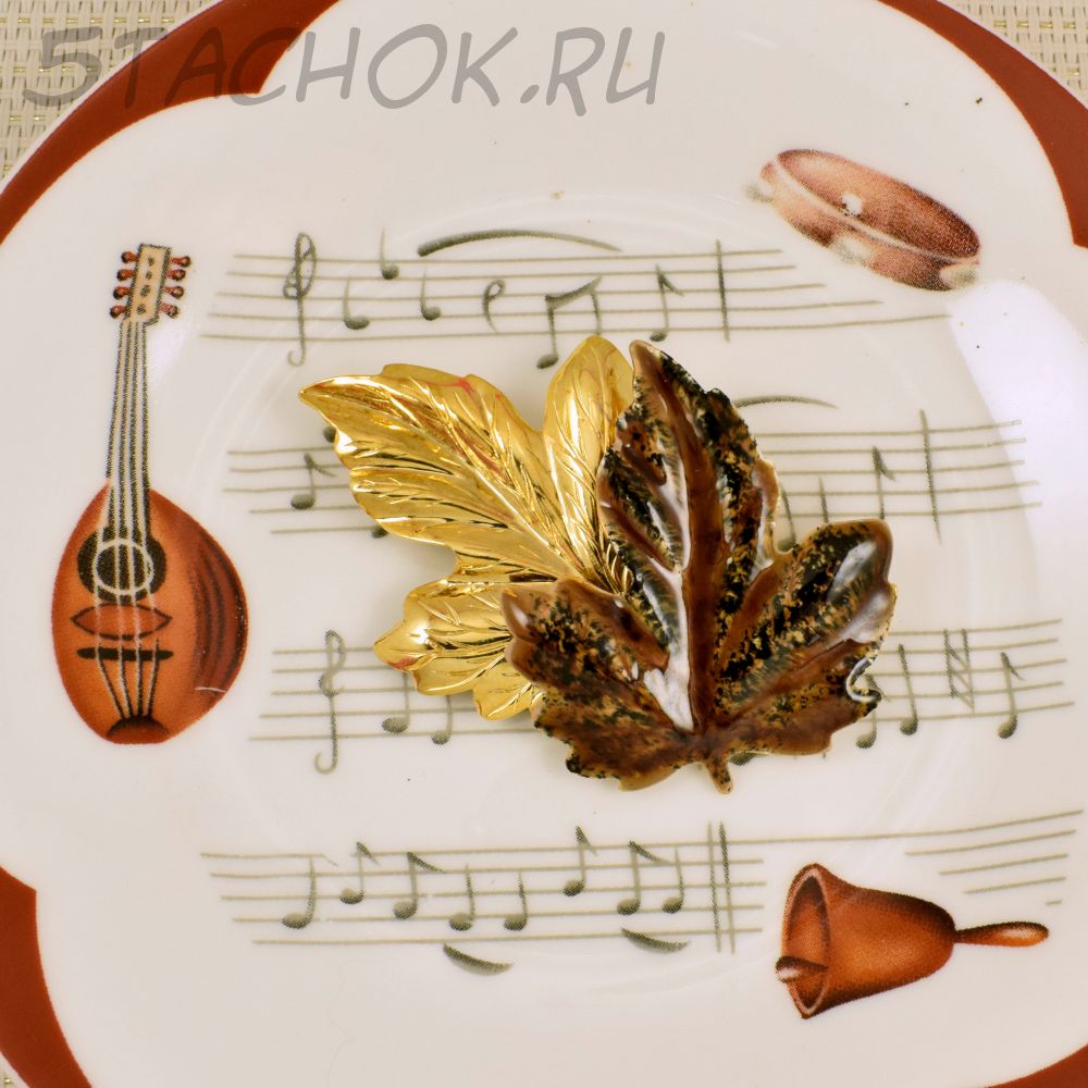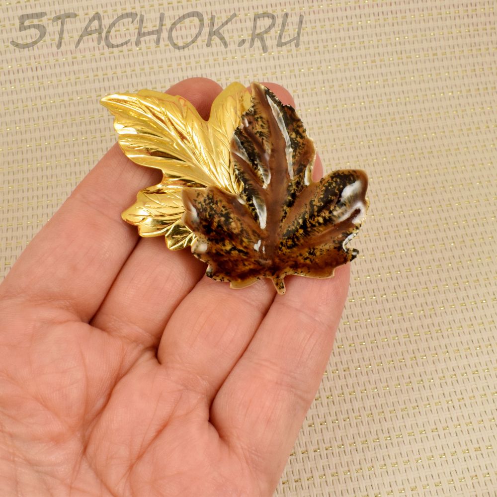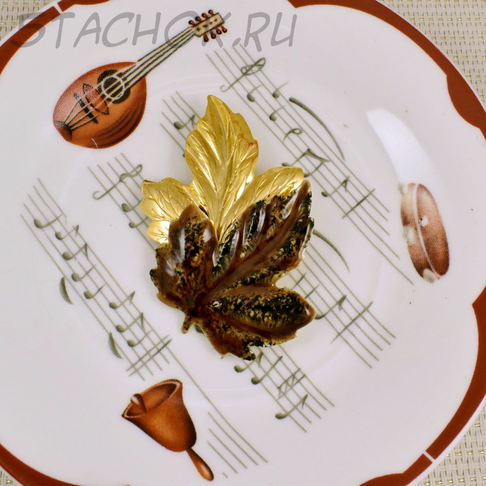 "Осенняя пора, очей очарование..." Выполнена брошь под блестящую золотую чеканку с использованием перламутровой эмали темного цвета. У листиков прорисованы жилки и фактура листочков.