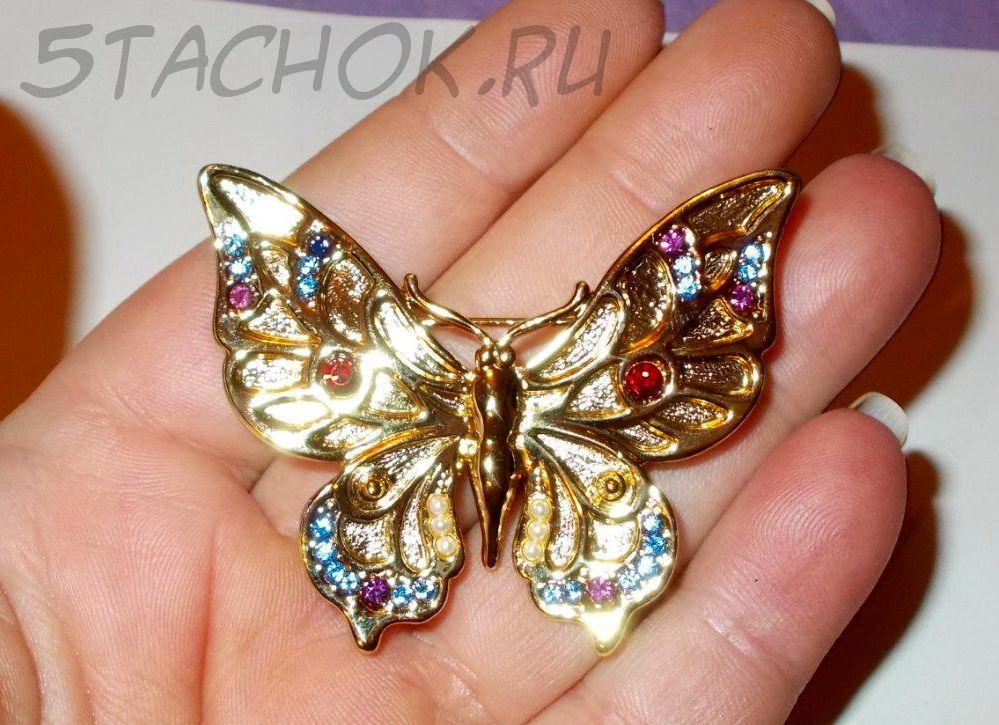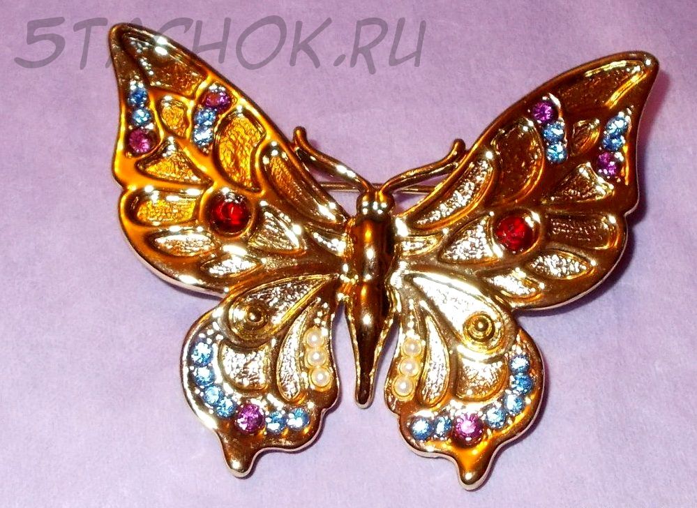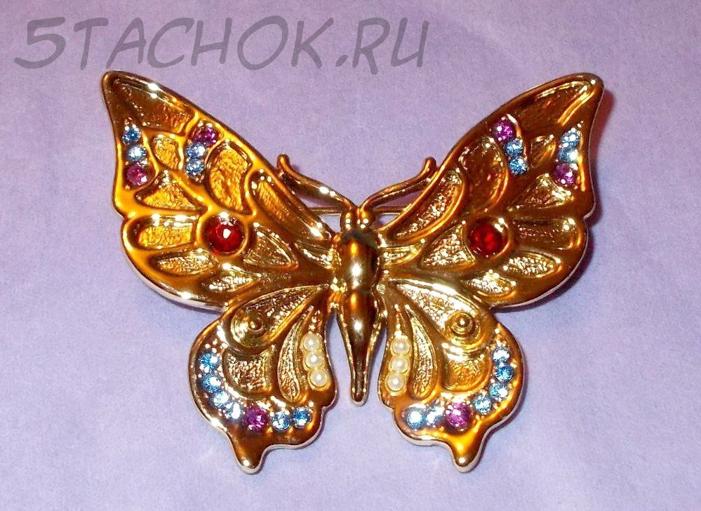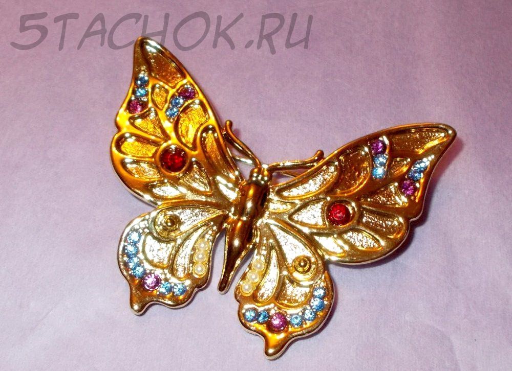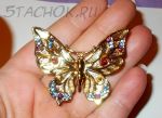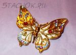 Брошь "Прекрасная бабочка" под золото/стразы