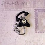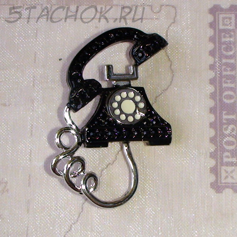 Брошь "Раритетный телефон" под серебро/эмаль/стразы