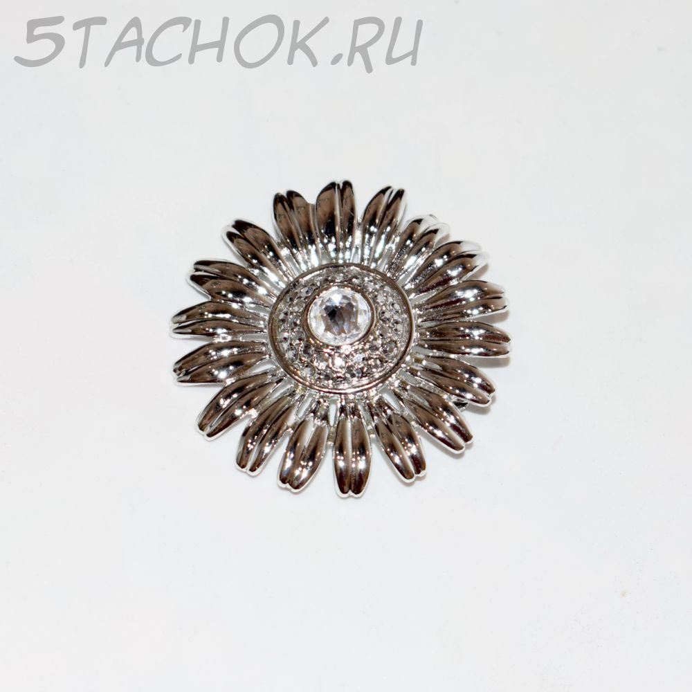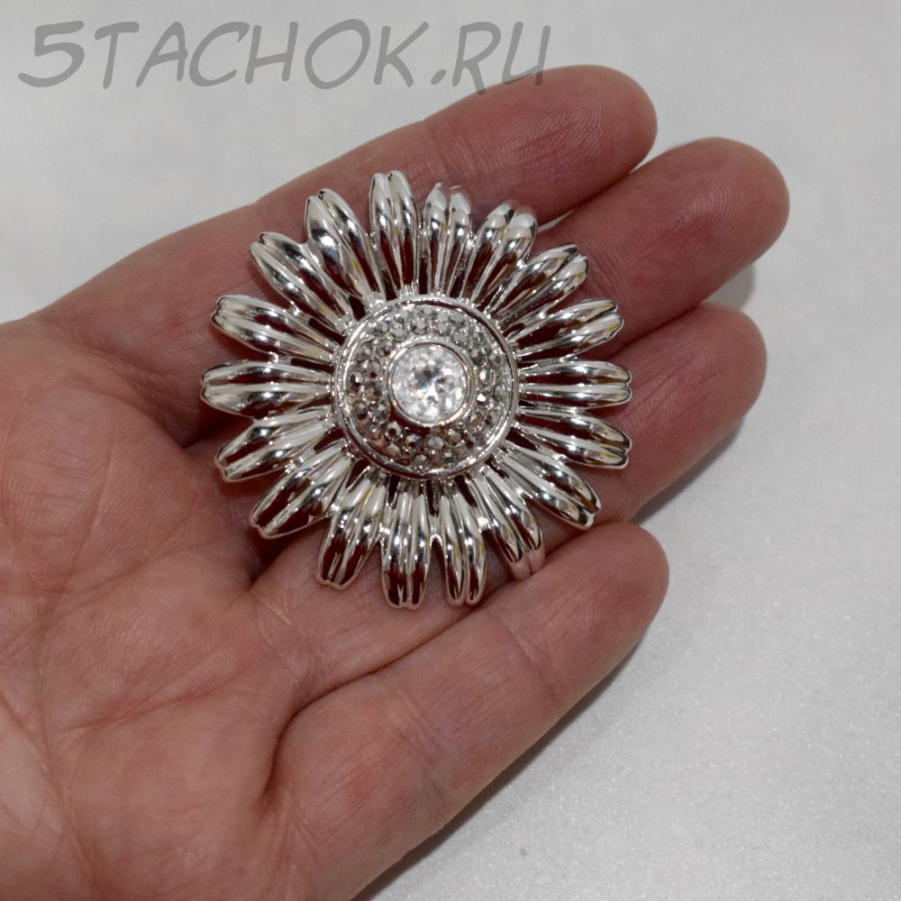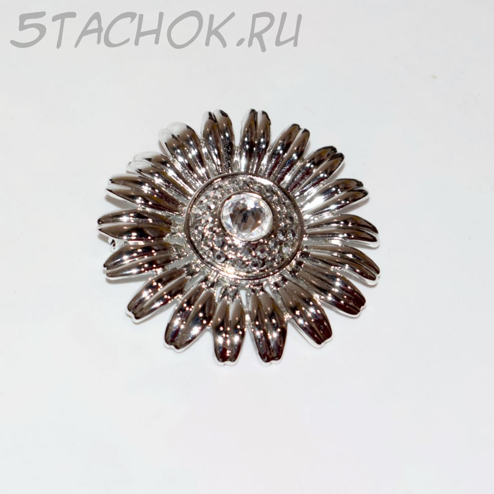 Брошь "Ромашка" под серебро/стразы
