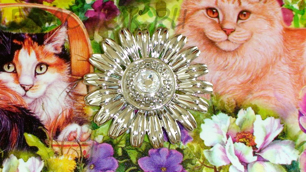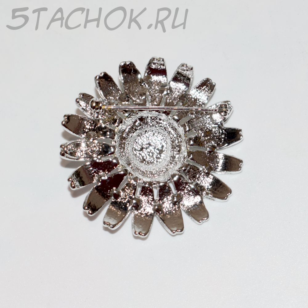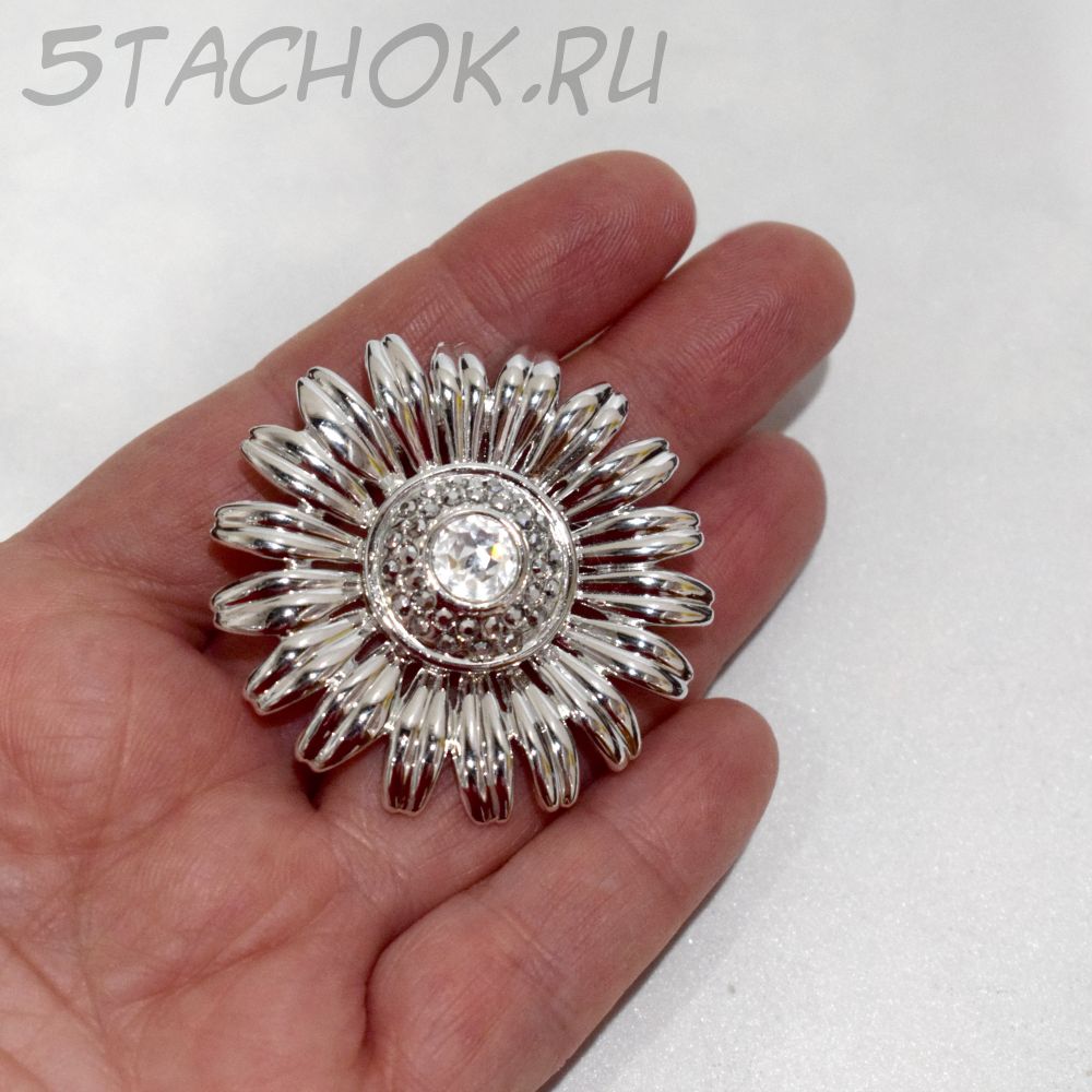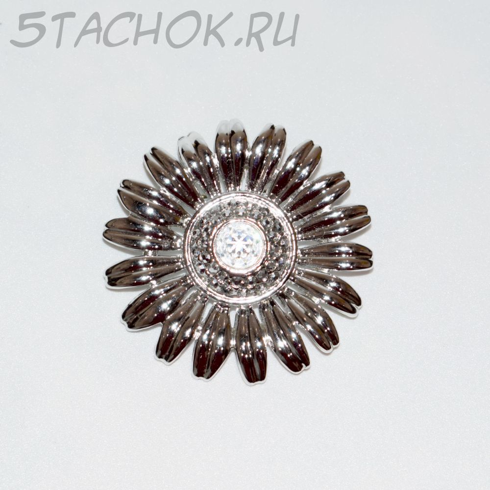 Брошь "Ромашка" под серебро/стразы