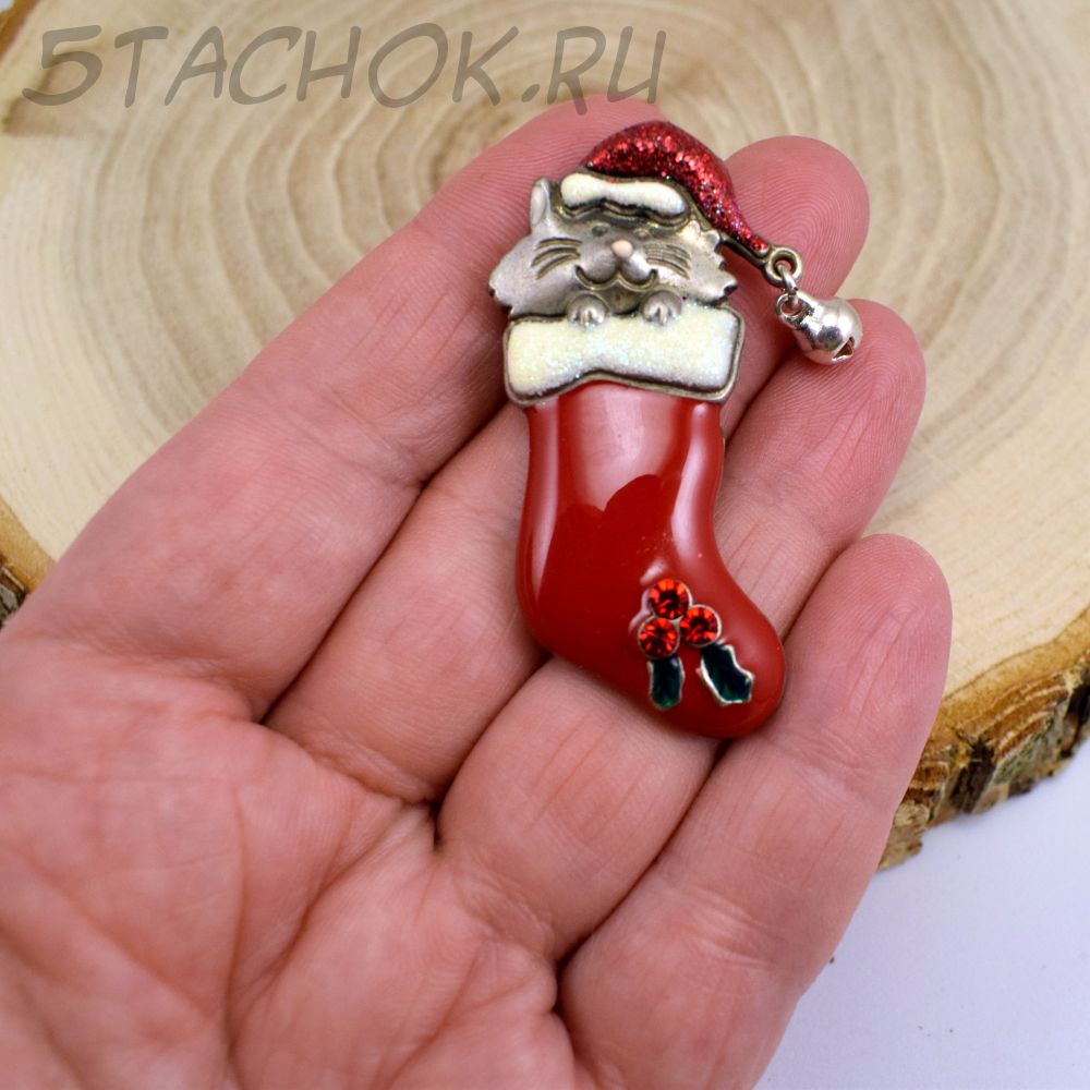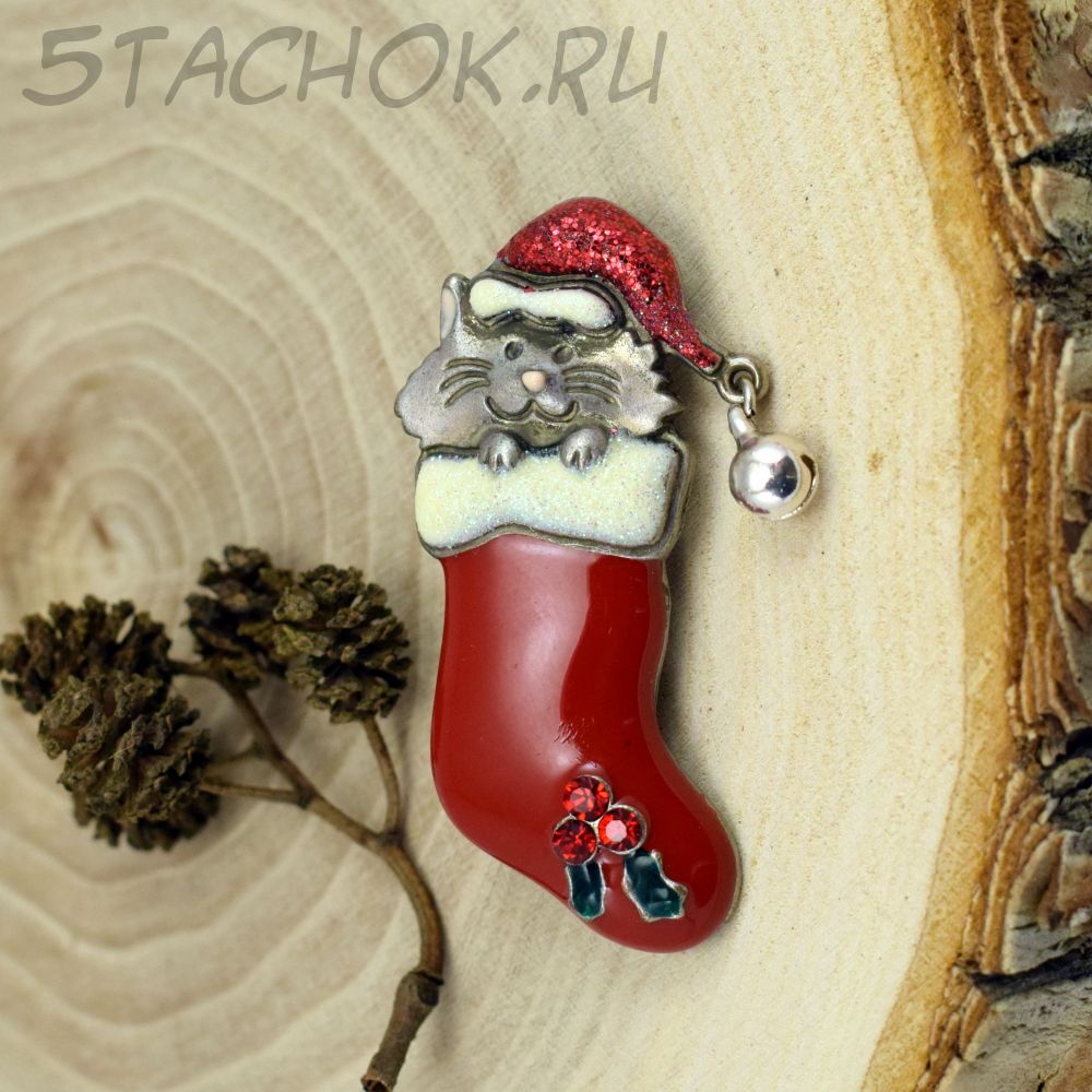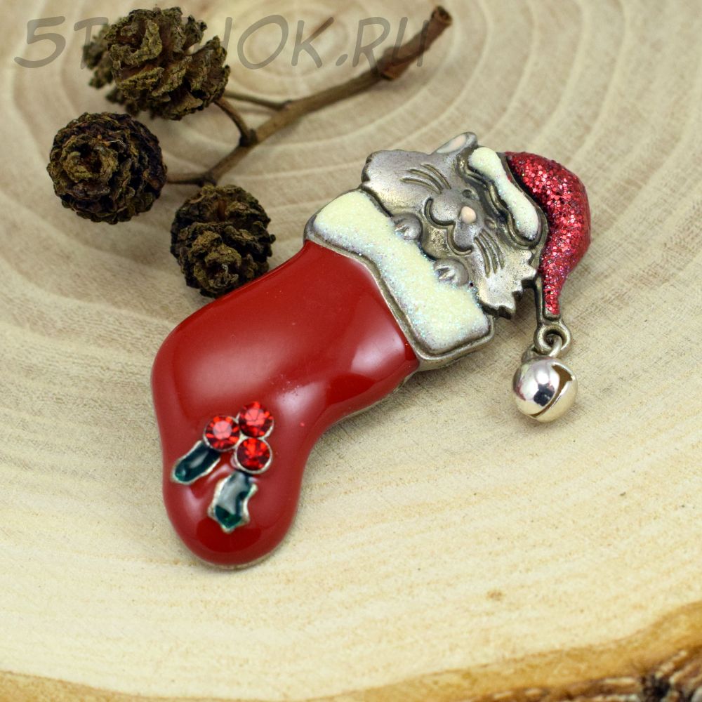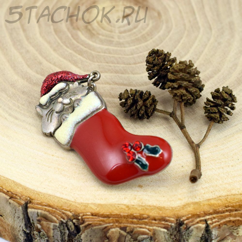 Брошь "Рождественский котик в чулке" (KC США)