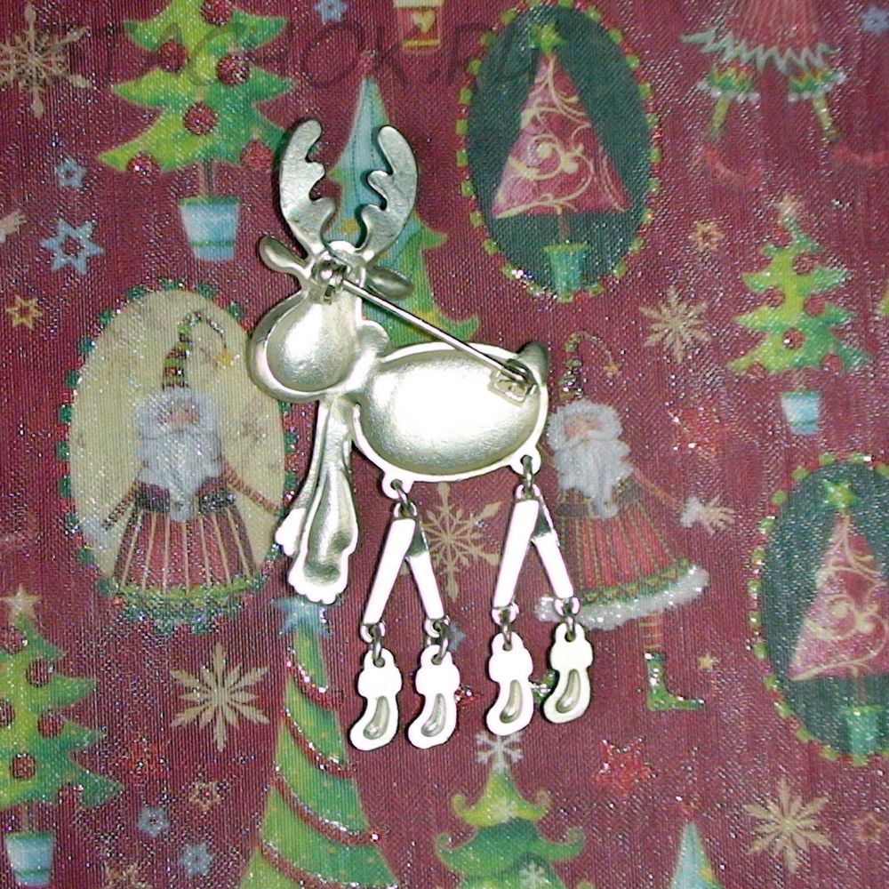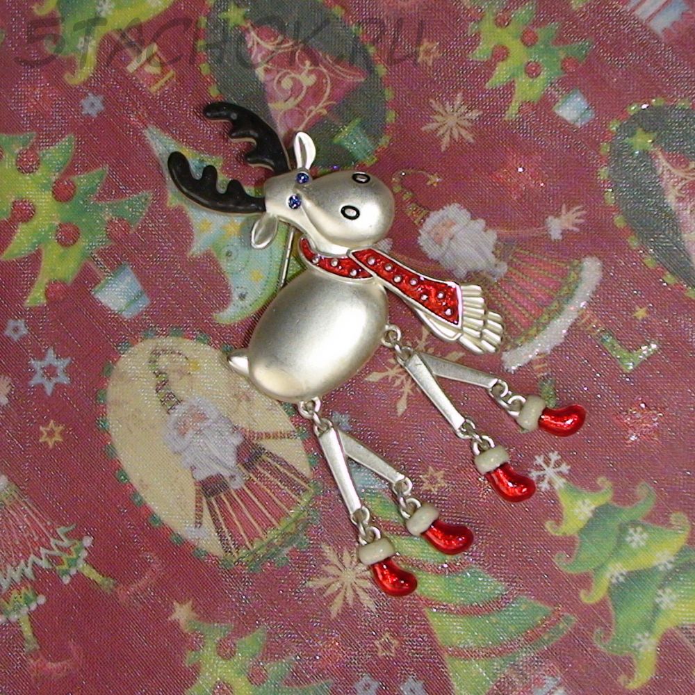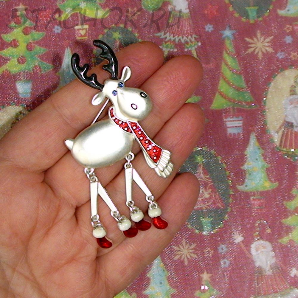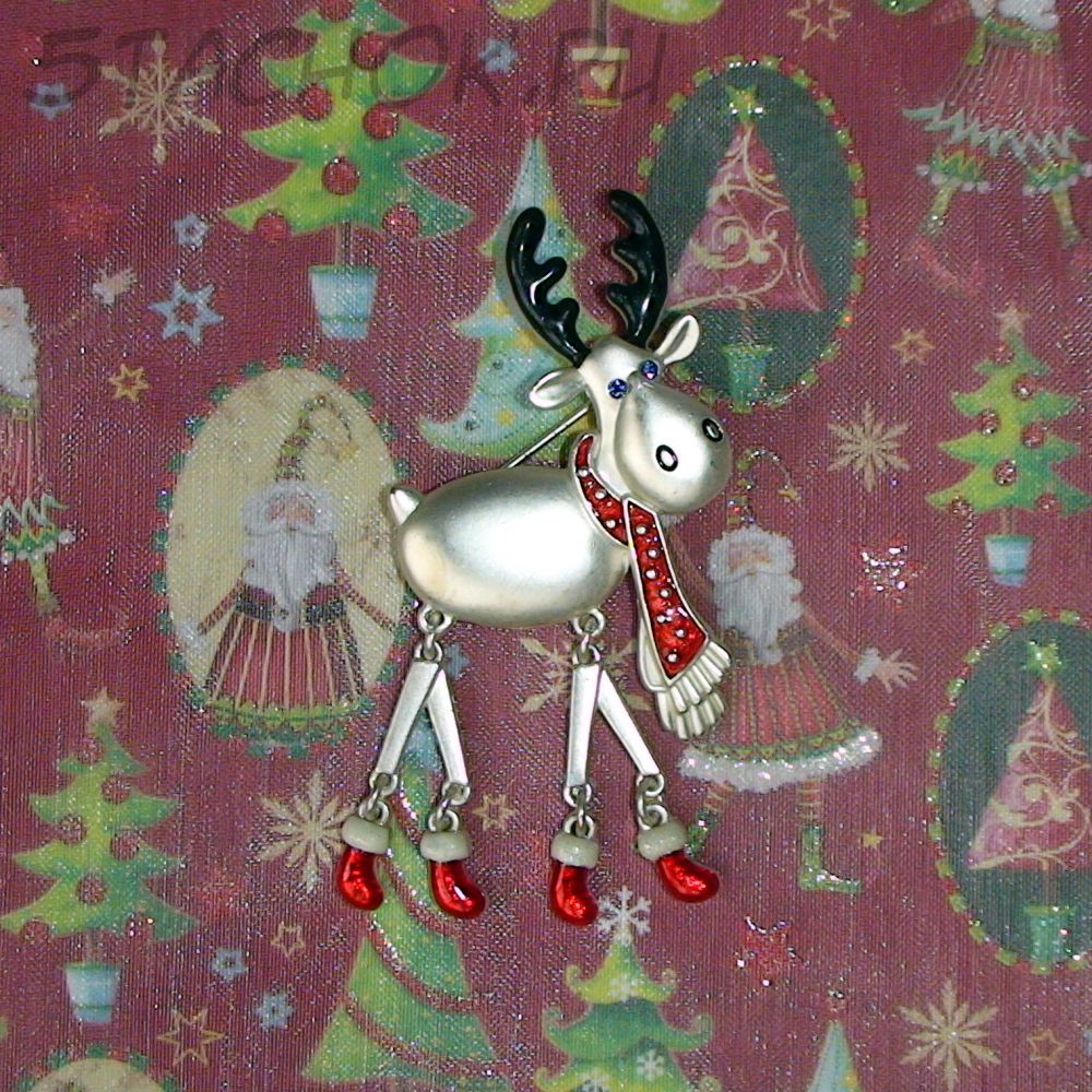 Брошь "Рождественский лосик" под серебро, эмаль, стразы