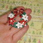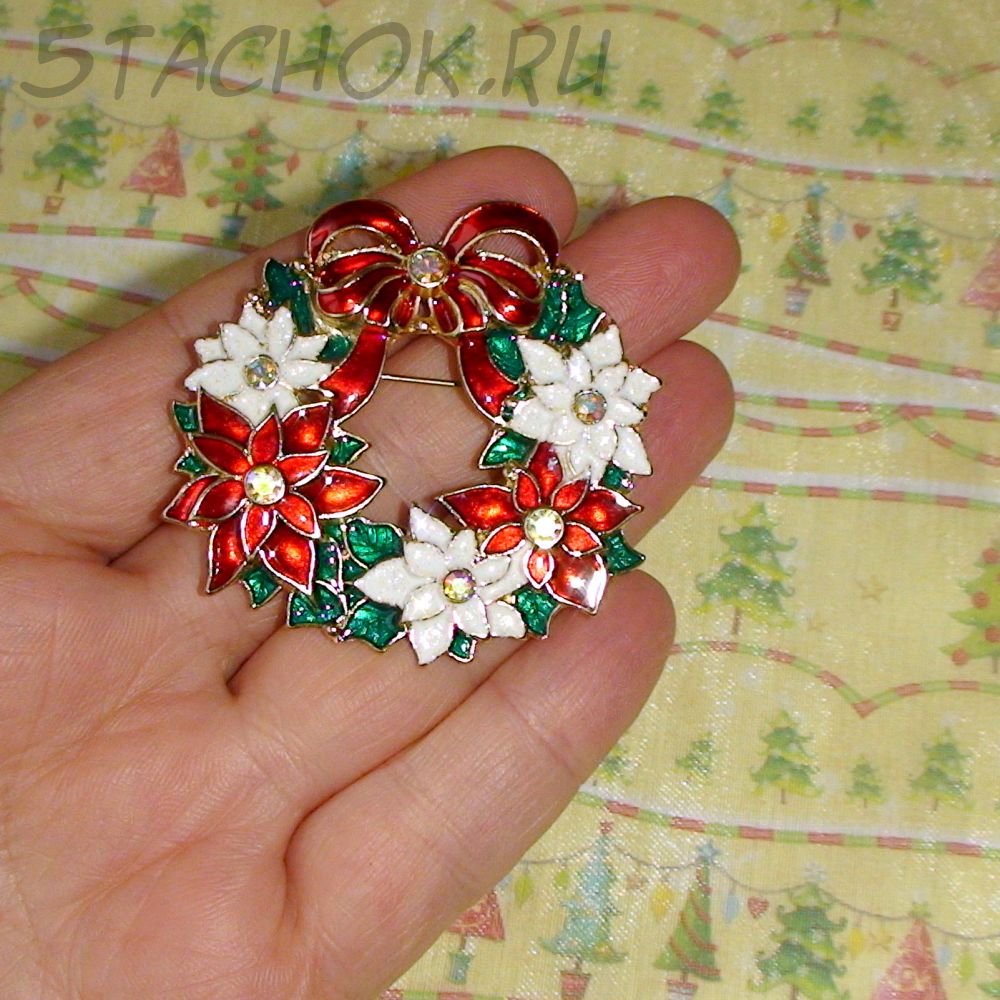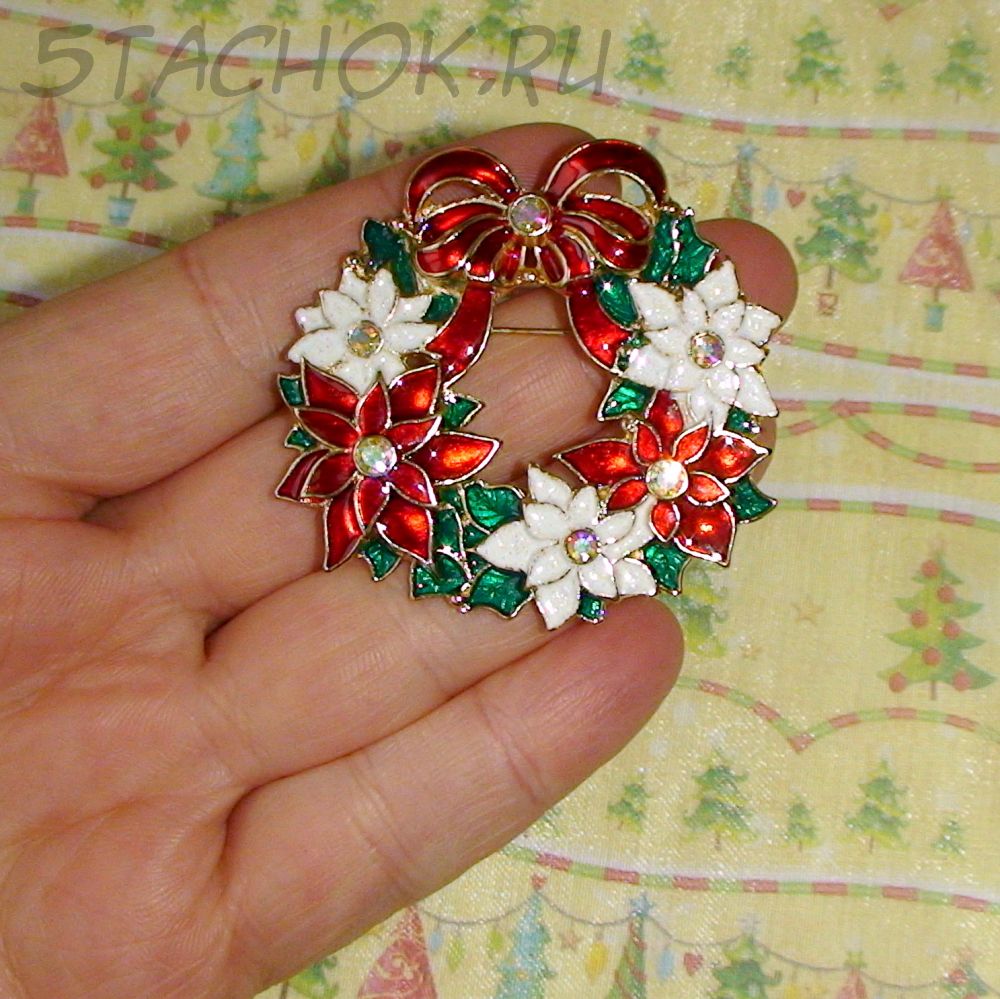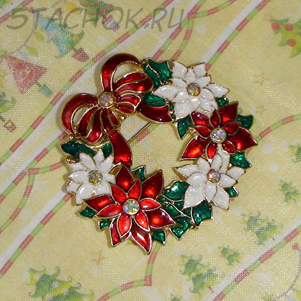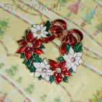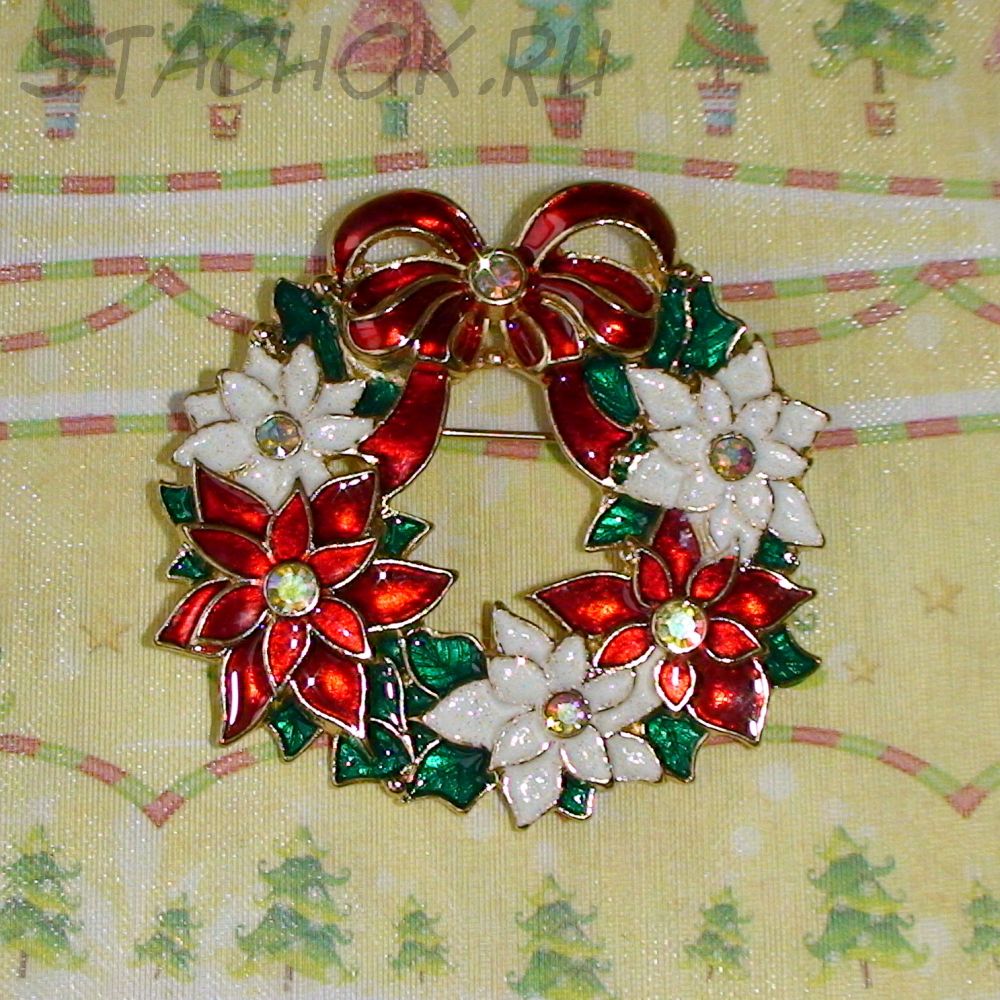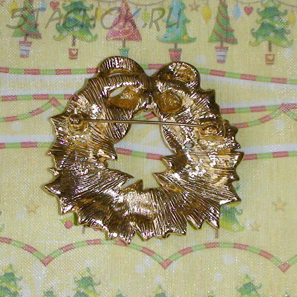 Брошь "Рождественский венок" под золото,эмаль,стразы