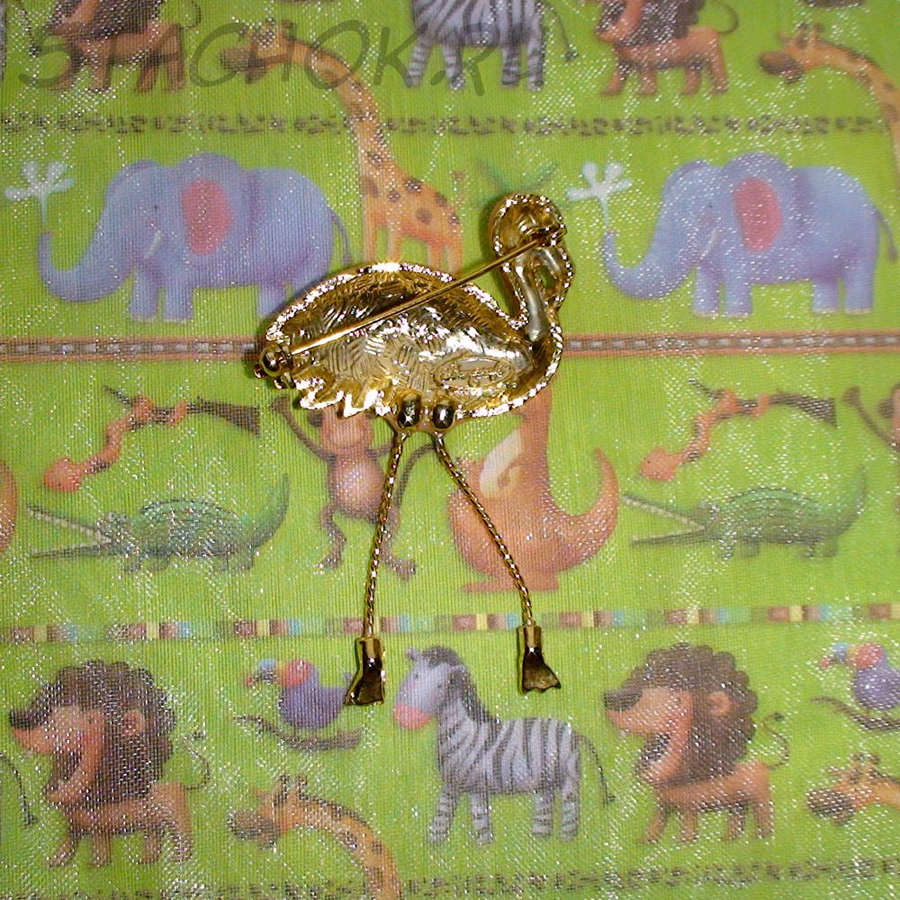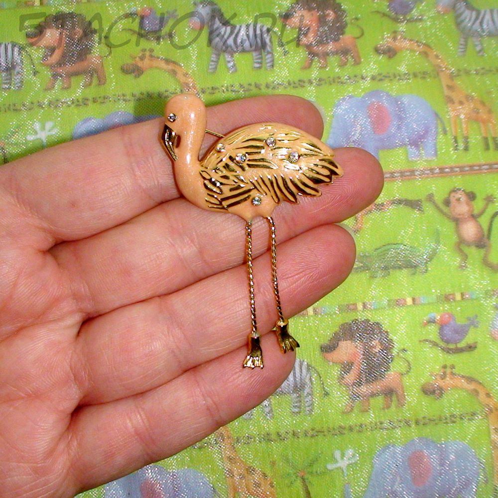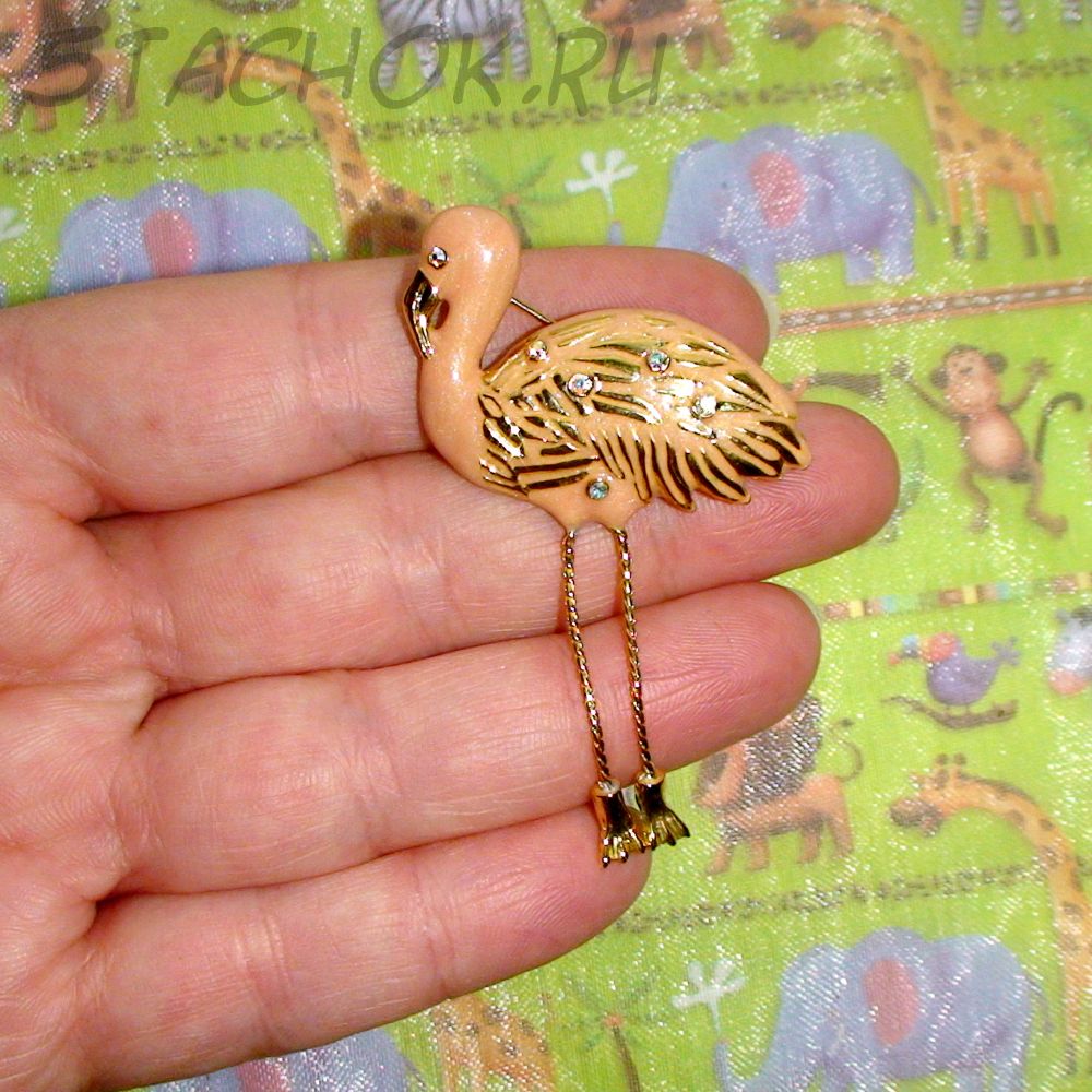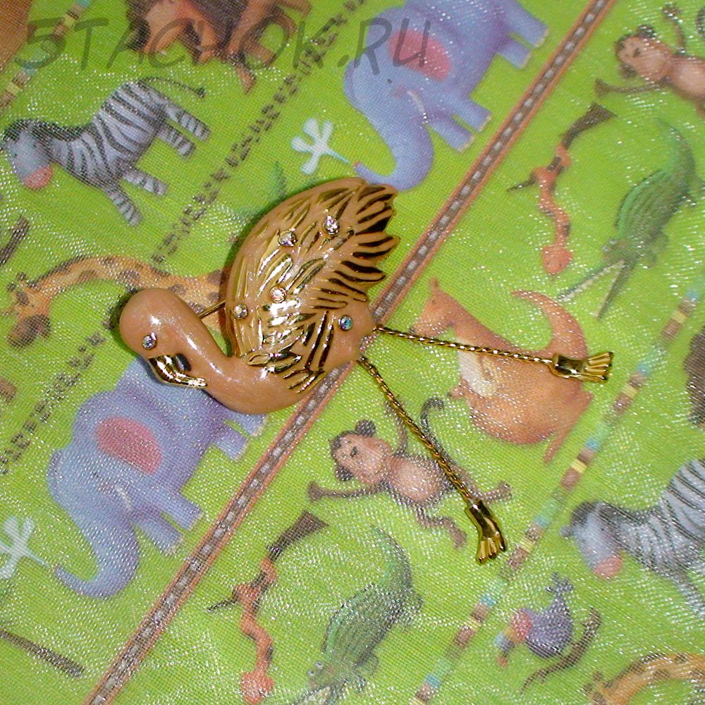 Брошь "Розовый фламинго" под золото/стразы/эмаль