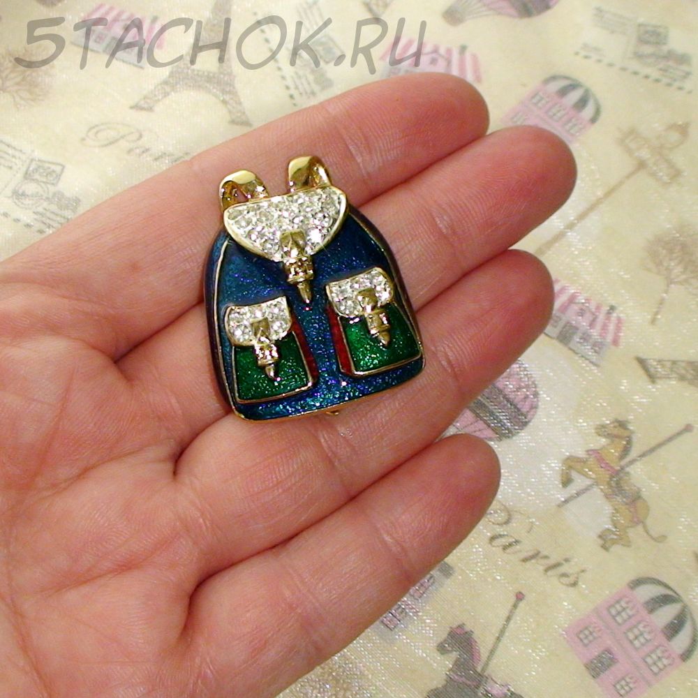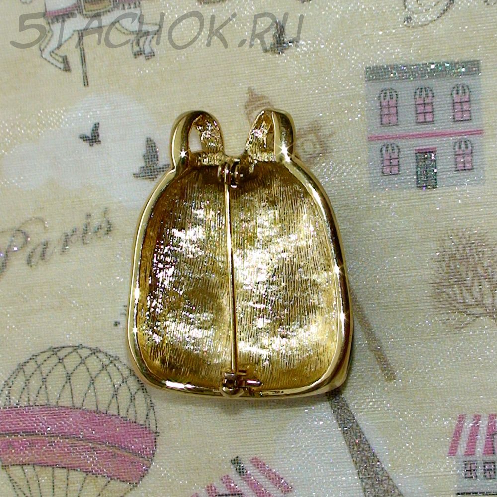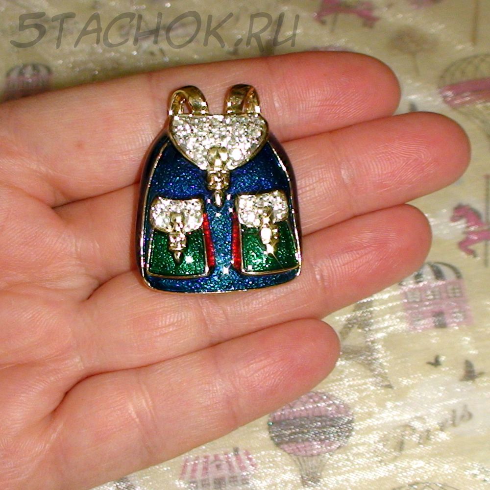 Брошь "РюкзачОК" под золото/эмаль/стразы (США)