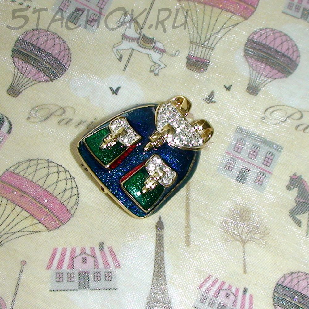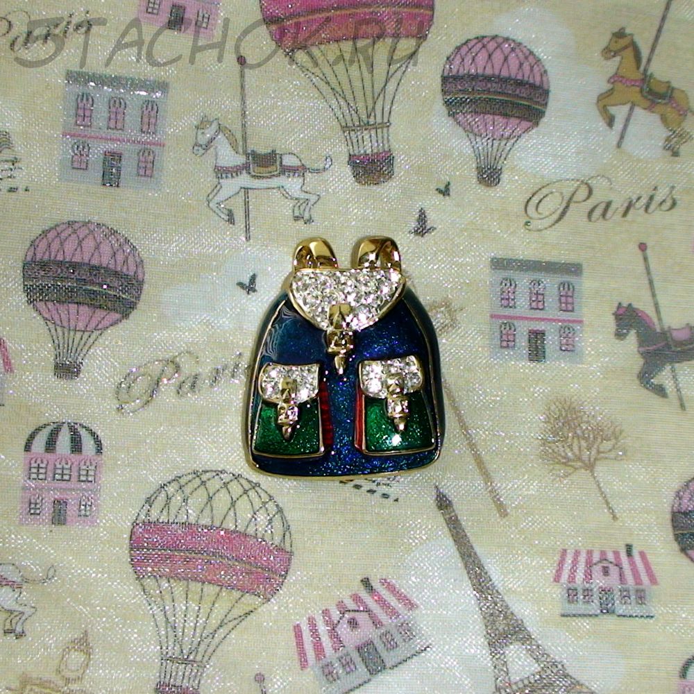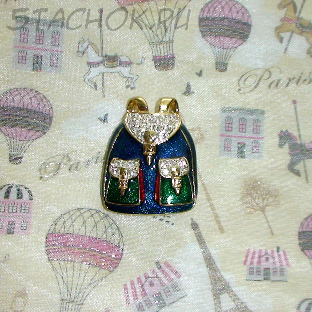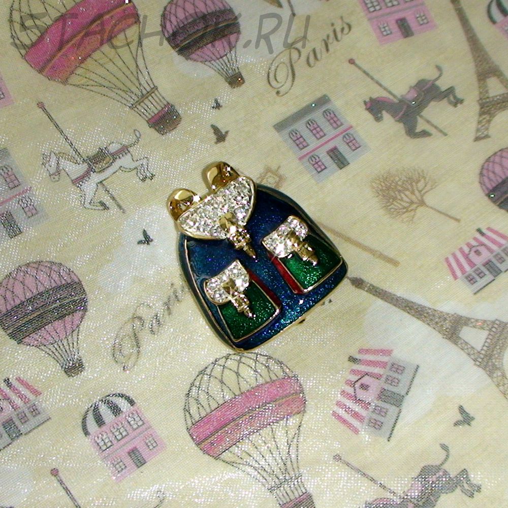 Брошь "РюкзачОК" под золото/эмаль/стразы (США)