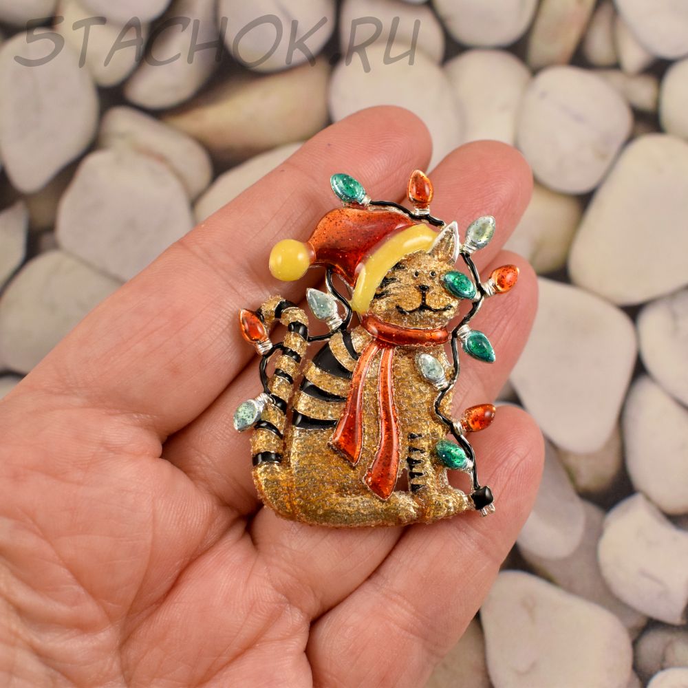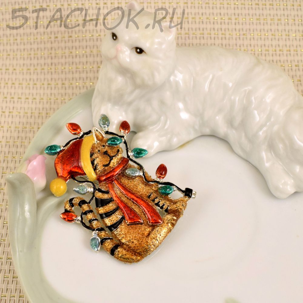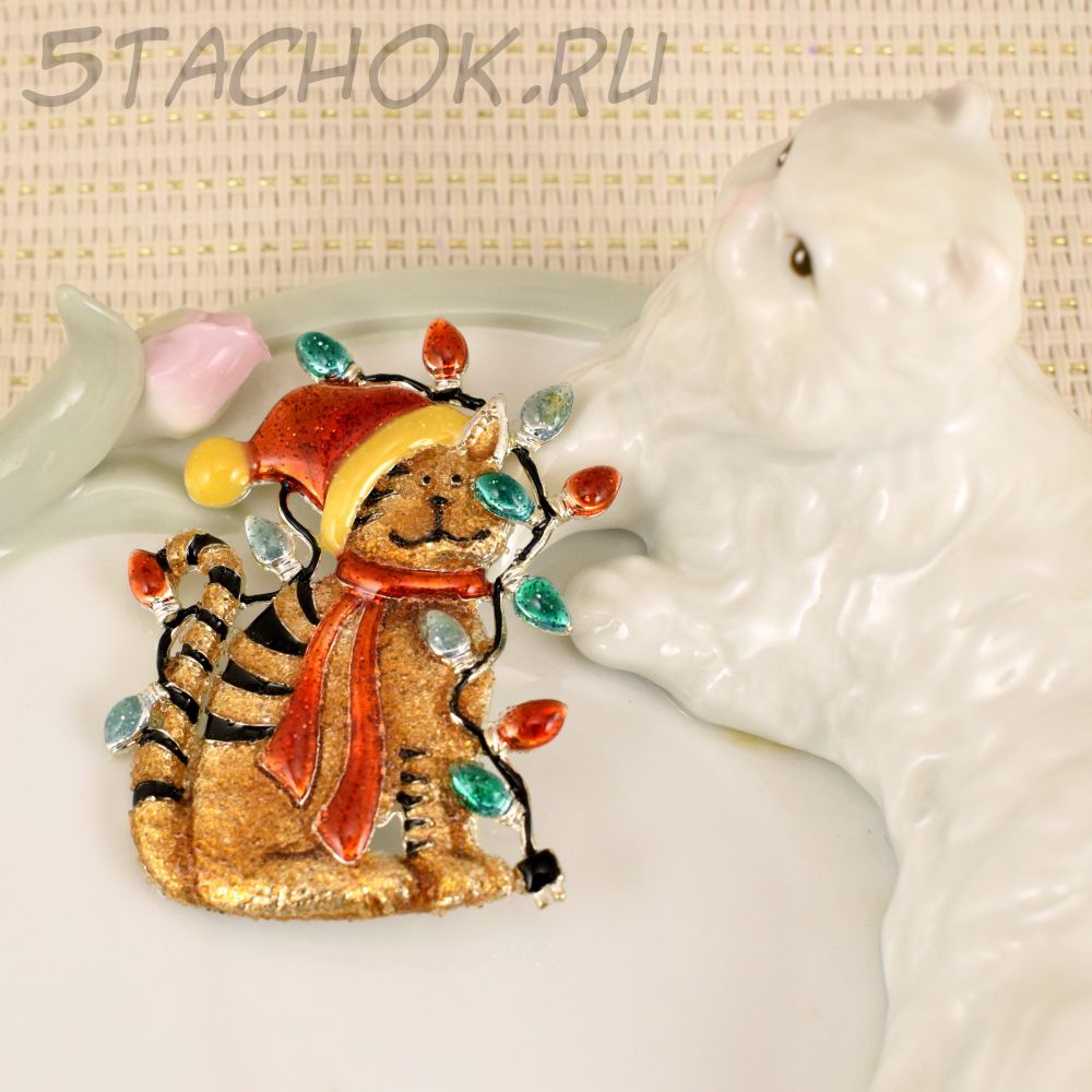 Брошь "Рыжий кот с гирляндой" (Danecraft США)