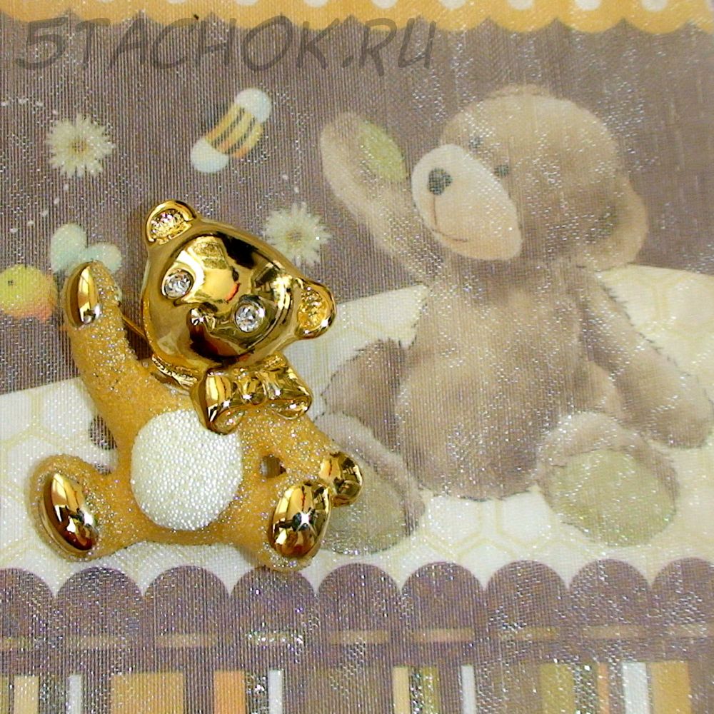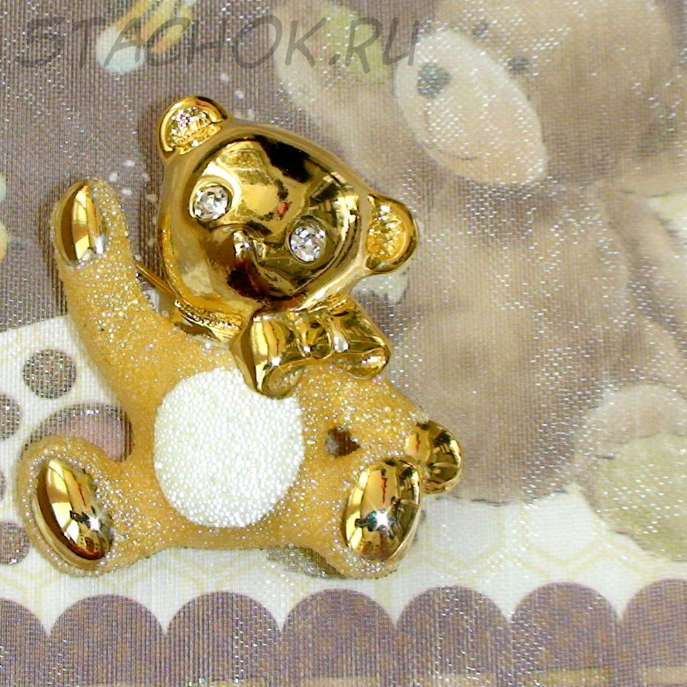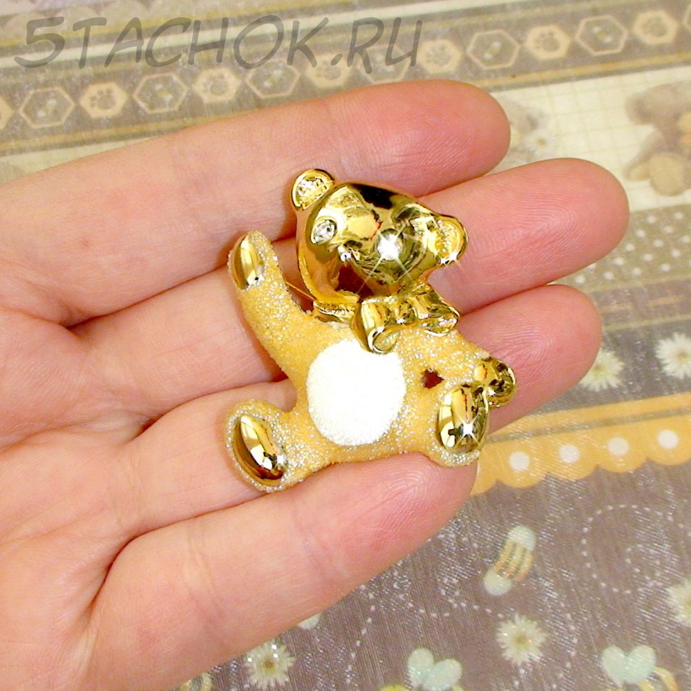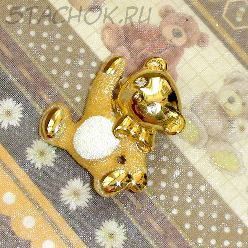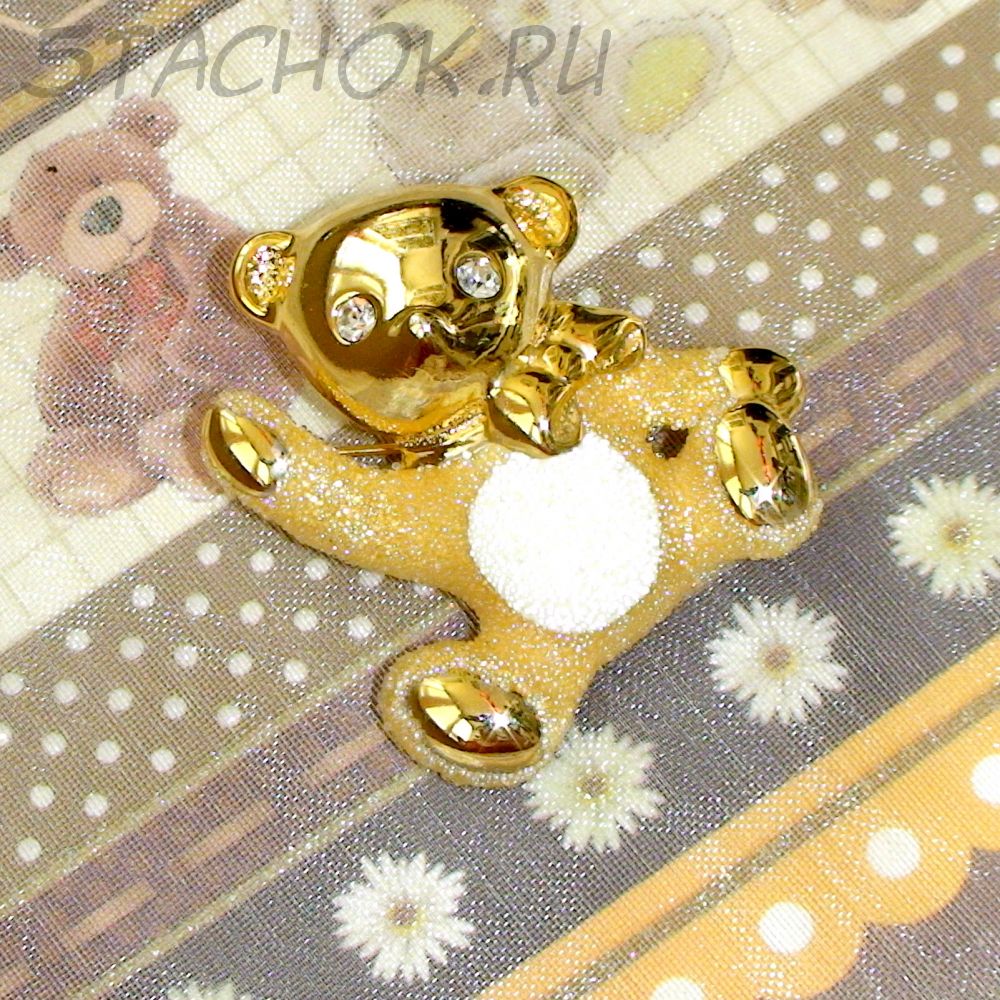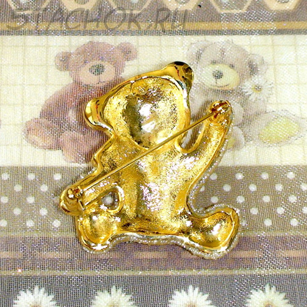 Брошь "Сахарный мишка" под золото, ювелирная крошка, стразы