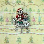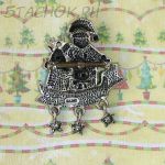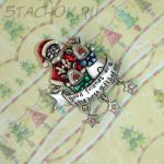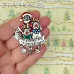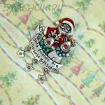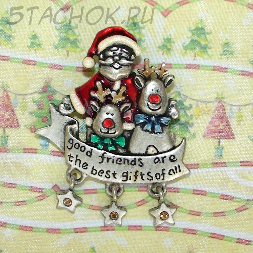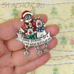 Брошь "Санта и олени" под олово, эмаль, стразы