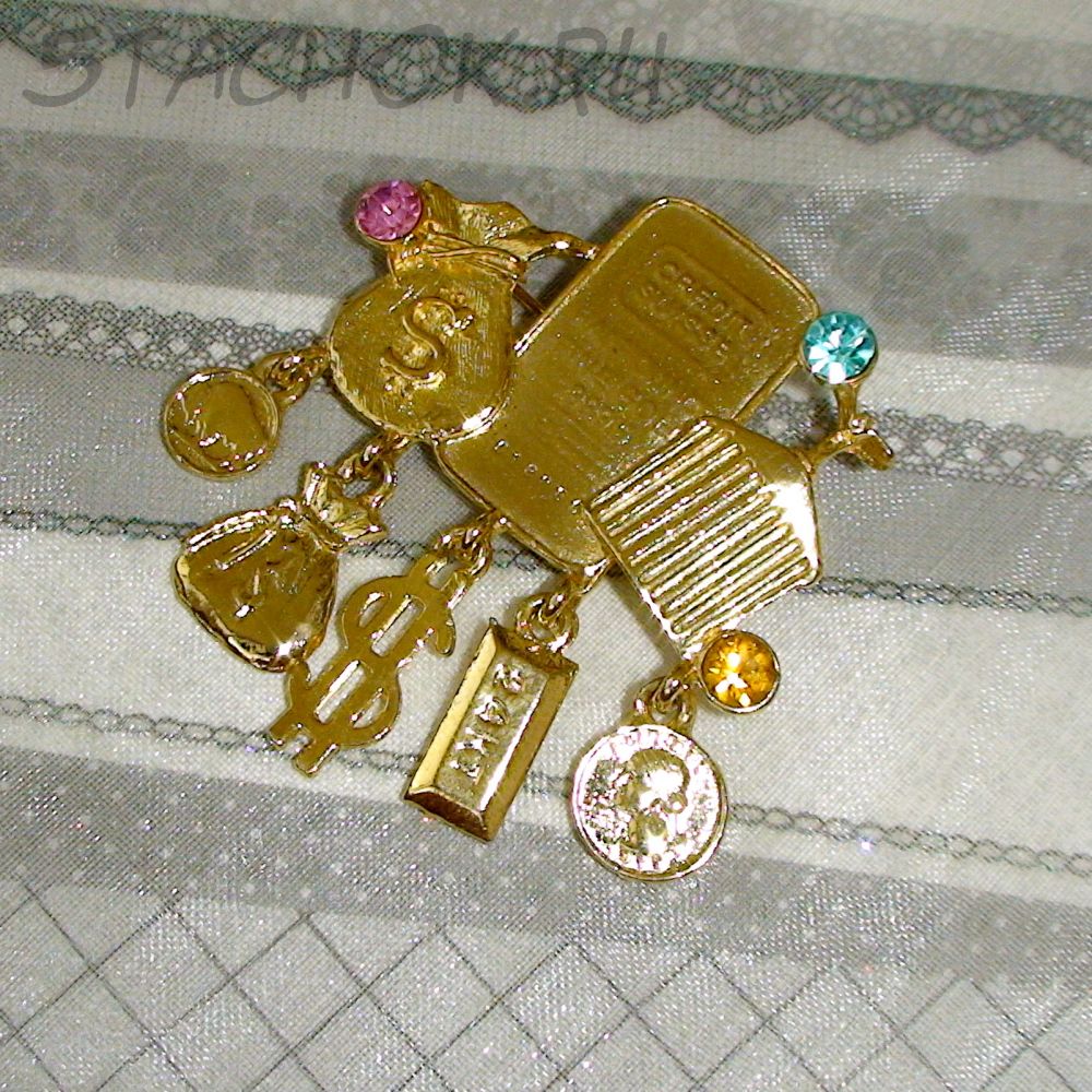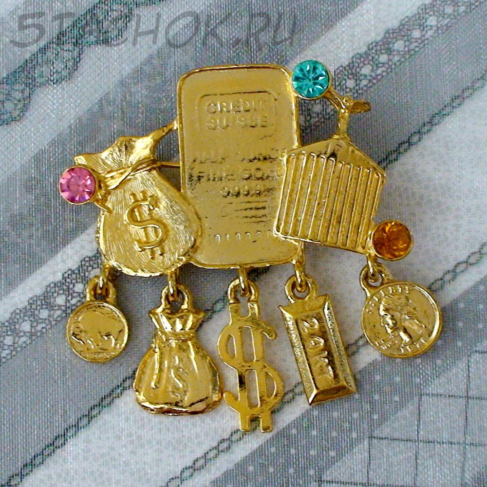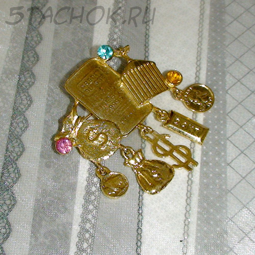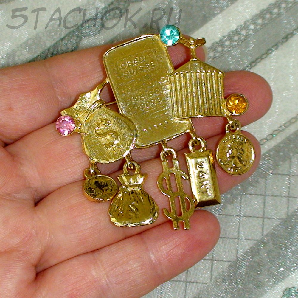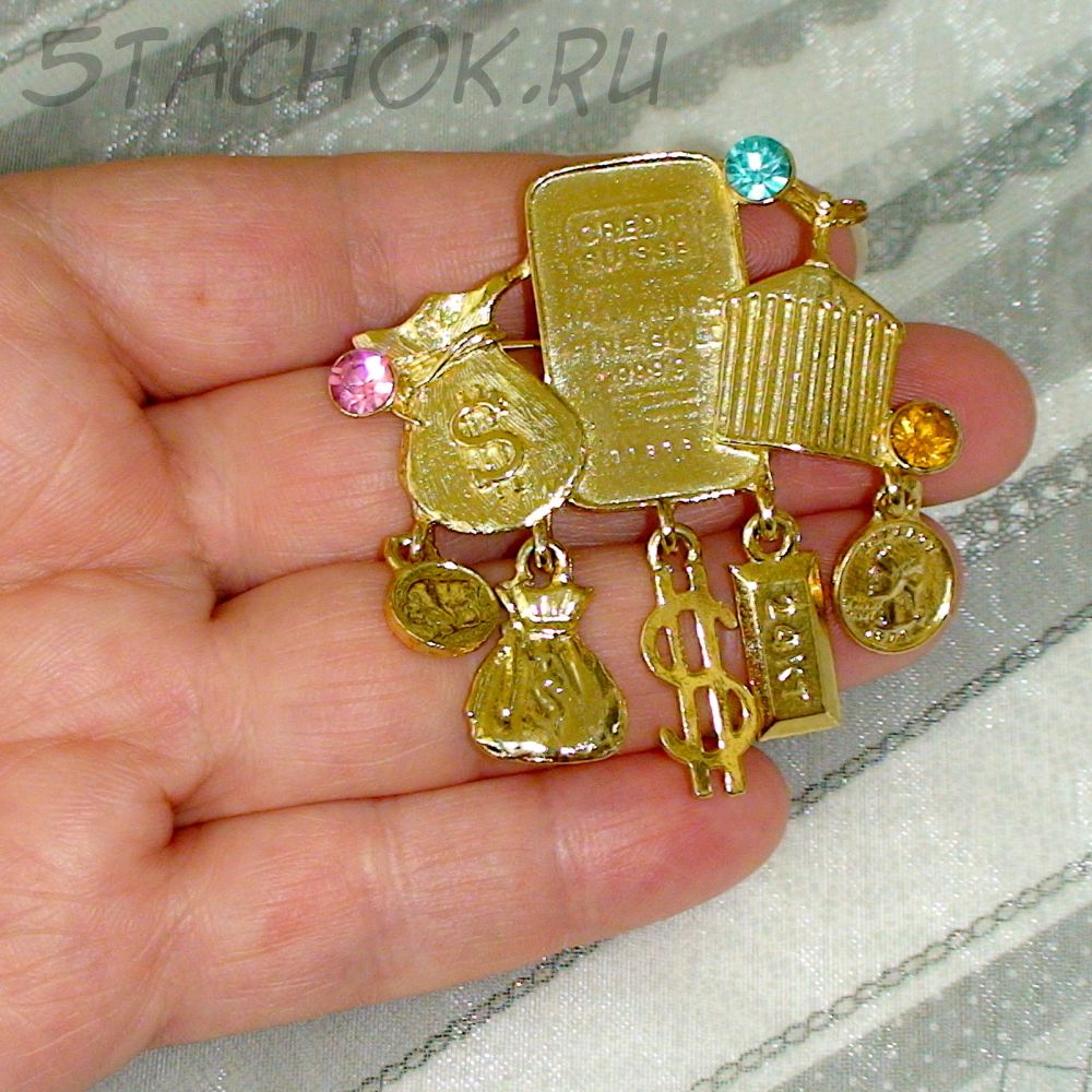 Брошь в отличном состоянии, ранее не использовалась. Кредитная карта, радиатор роллс ройза, доллары, слиток золота...